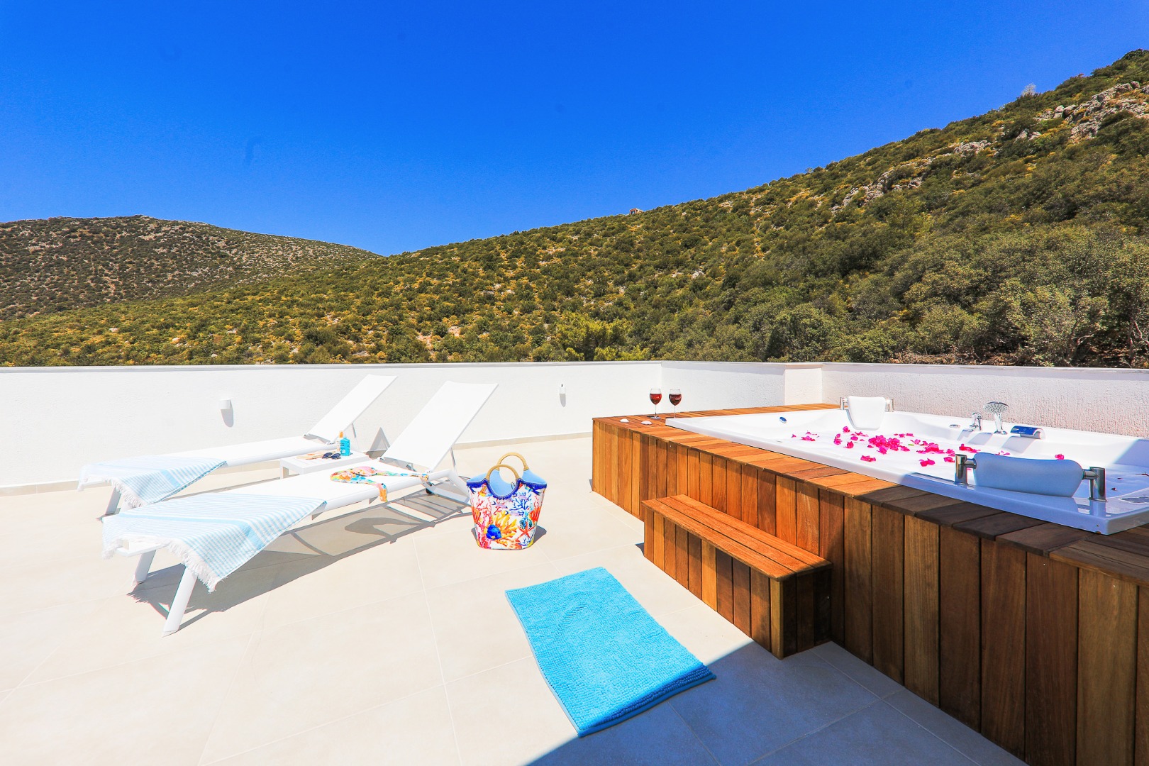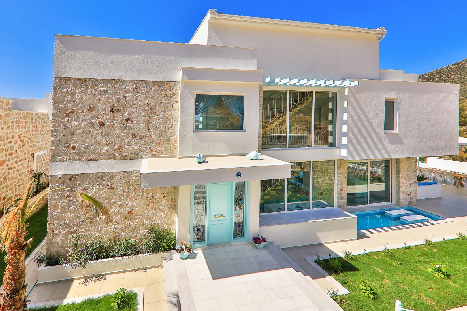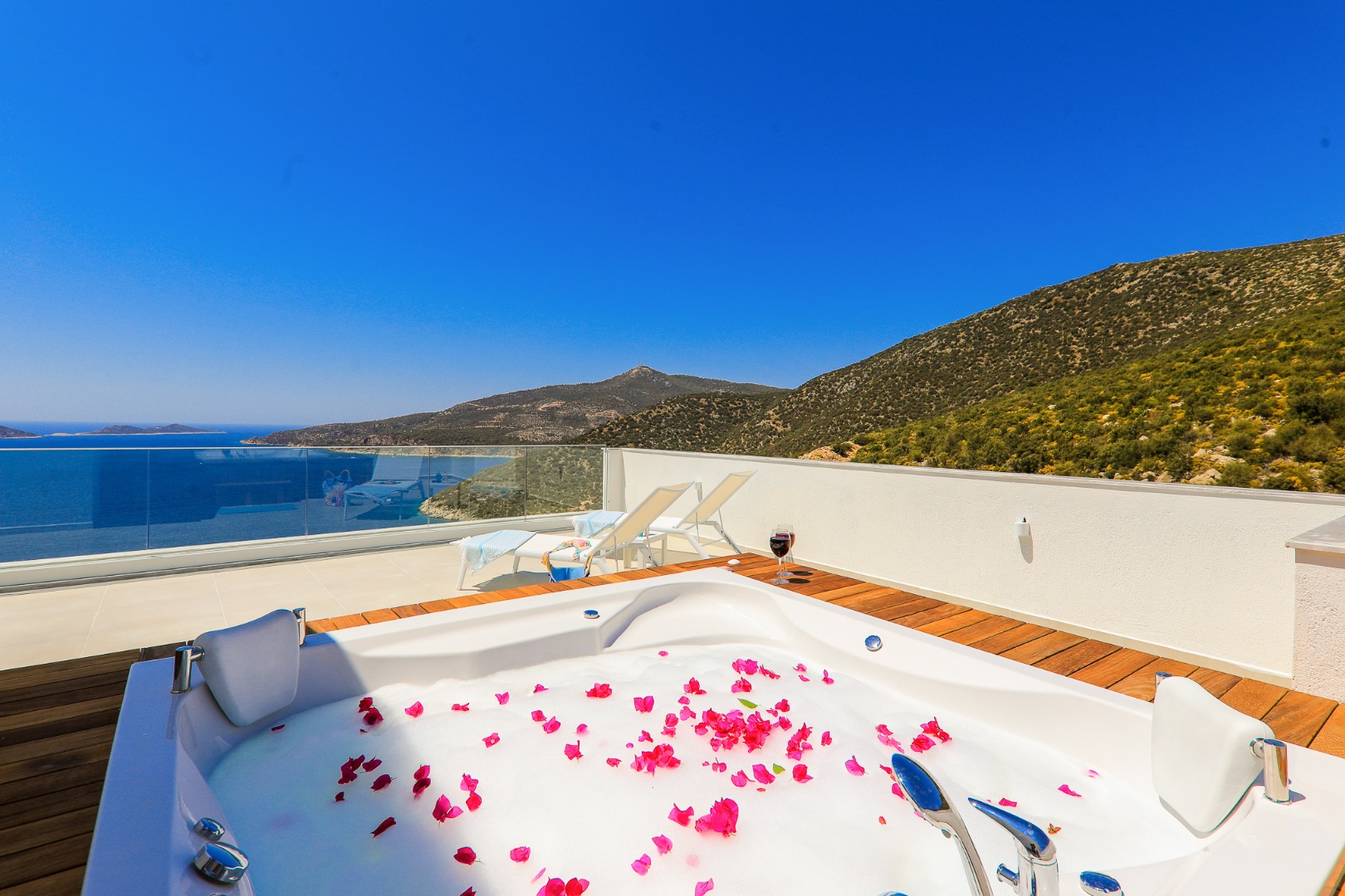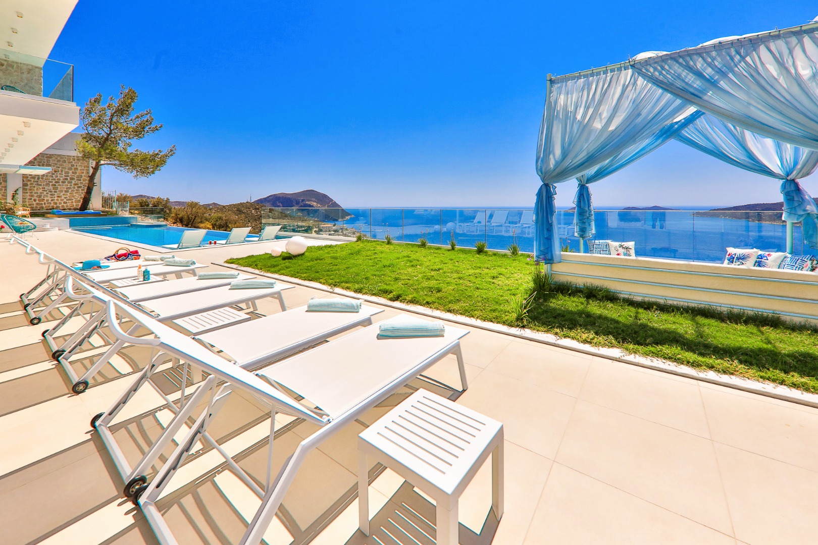 Bella Mare Villa offers a holiday home with a private pool and modern amenities, overlooking the magnificent views of Kalkan. With a capacity of 10 people, it is ideal for large families and groups of friends. The villa stands out with its proximity to the sea and high-quality standards. Spacious terraces, a jacuzzi, and elegant decoration provide everything you need throughout your stay. Surrounded by the natural beauty and historical sites of Kalkan, Kaş, and Fethiye, Bella Mare promises a peaceful and unforgettable holiday.