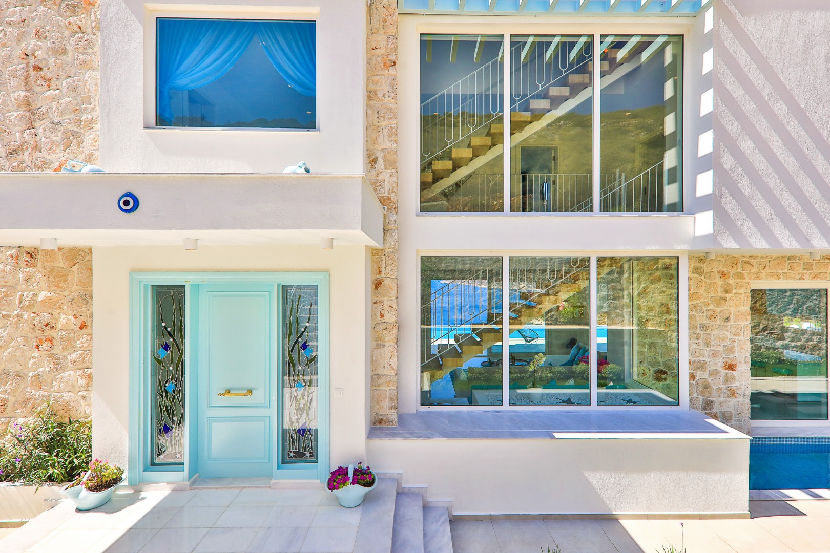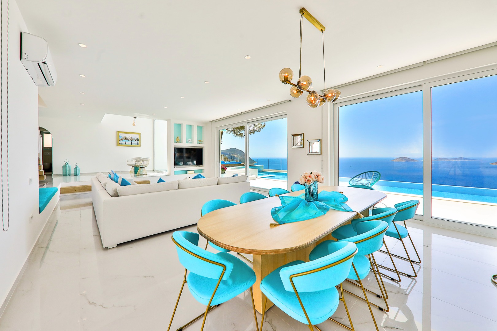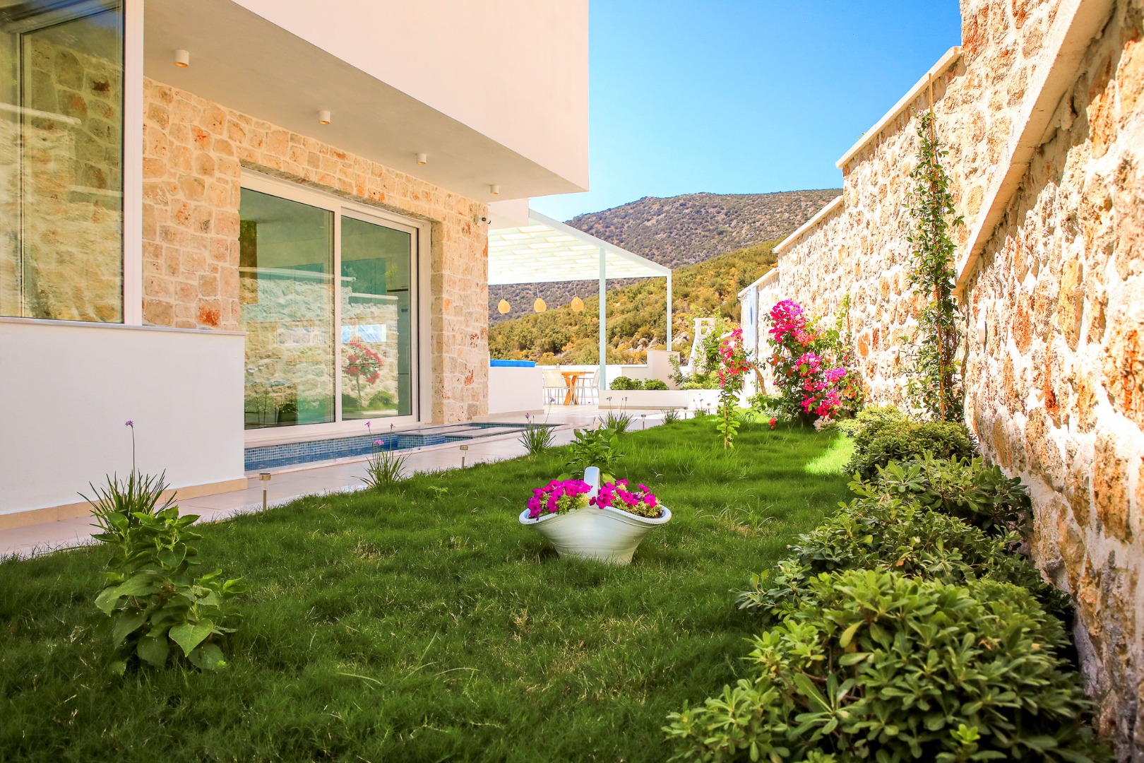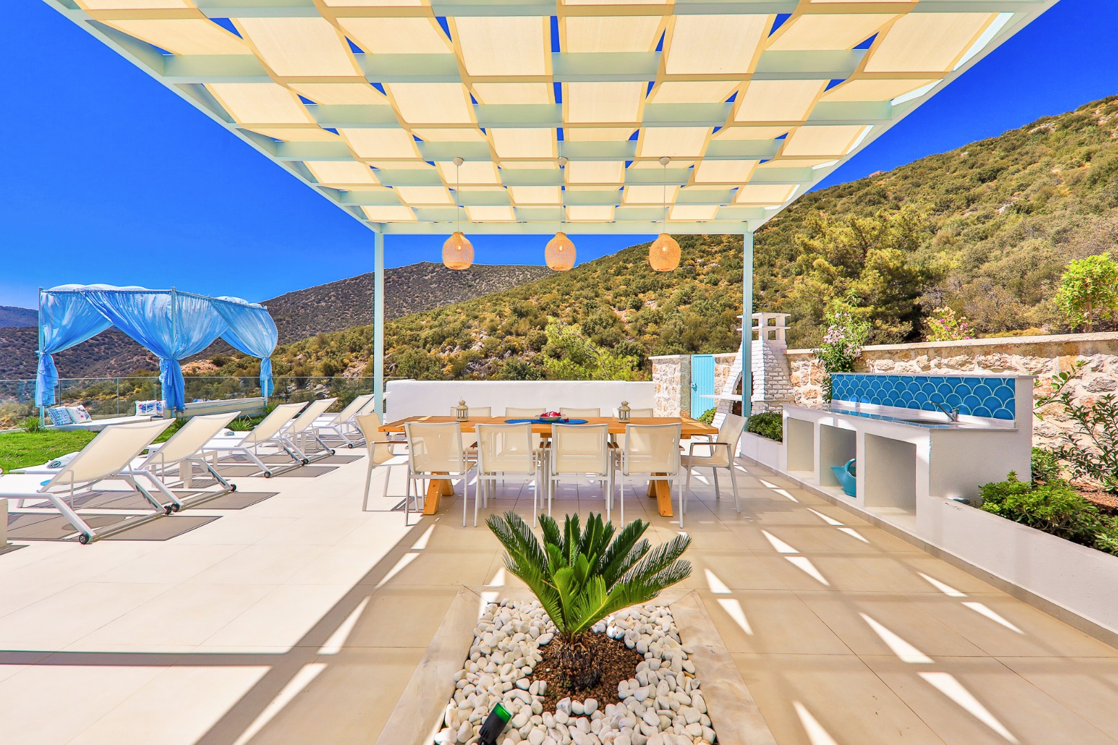 Bella Mare Villa offers a holiday home with a private pool and modern amenities, overlooking the magnificent views of Kalkan. With a capacity of 10 people, it is ideal for large families and groups of friends. The villa stands out with its proximity to the sea and high-quality standards. Spacious terraces, a jacuzzi, and elegant decoration provide everything you need throughout your stay. Surrounded by the natural beauty and historical sites of Kalkan, Kaş, and Fethiye, Bella Mare promises a peaceful and unforgettable holiday.