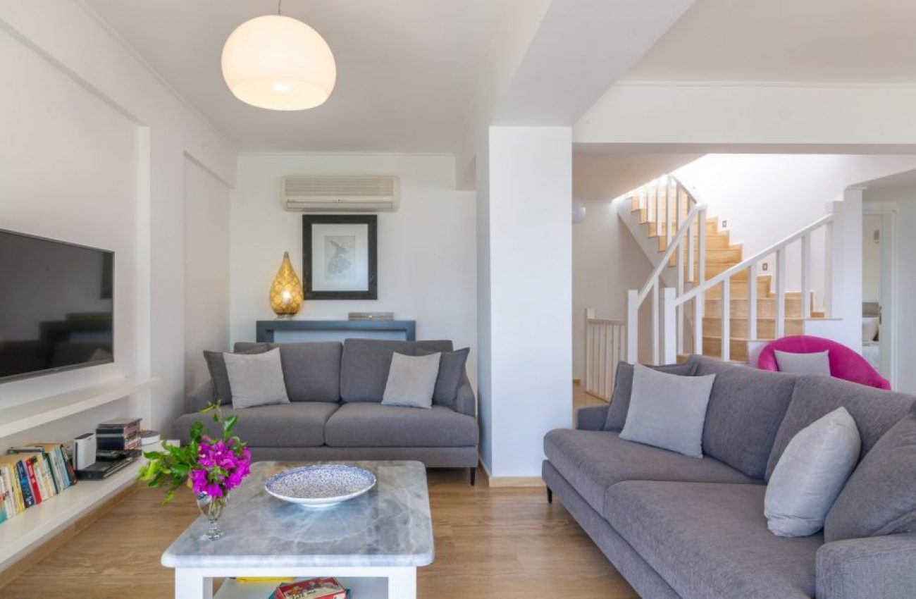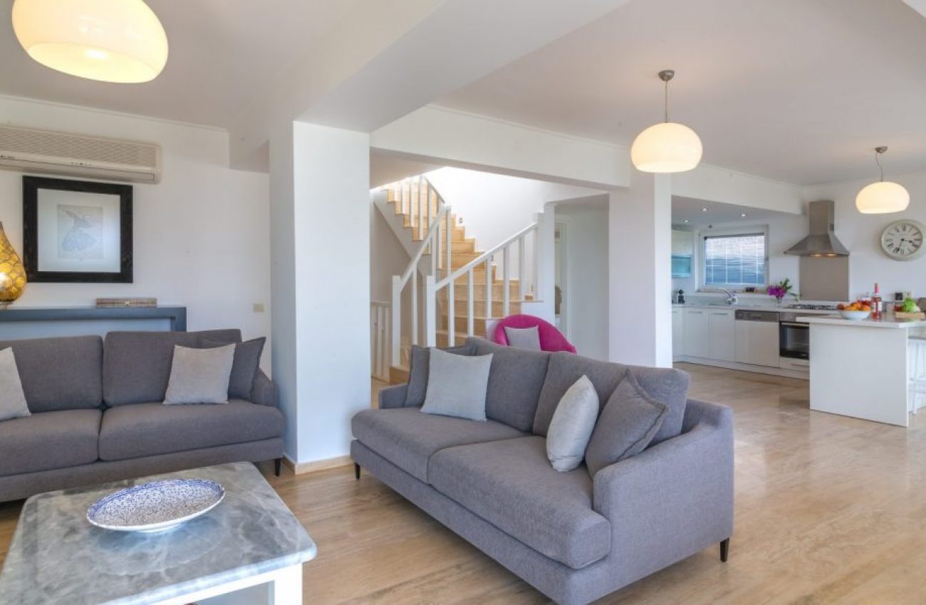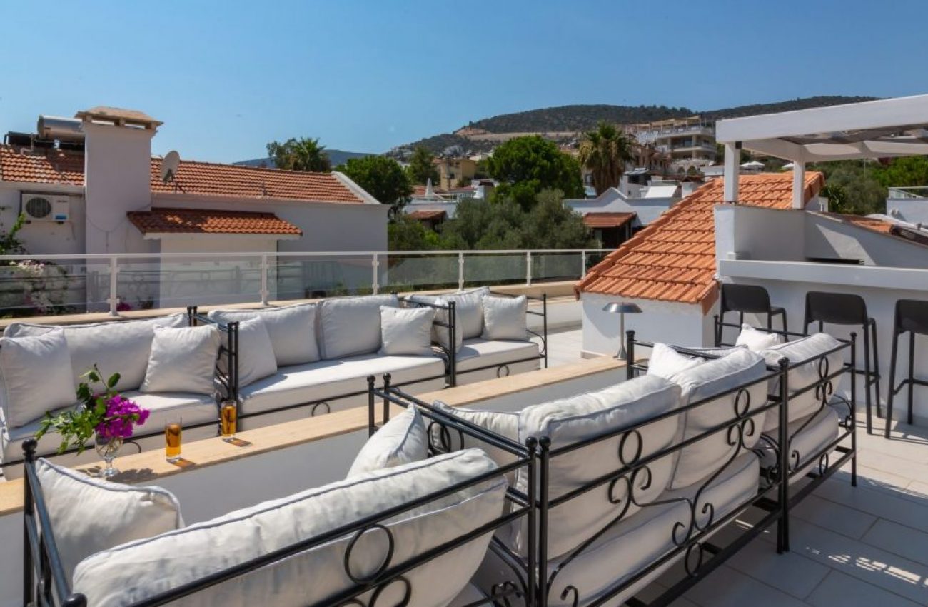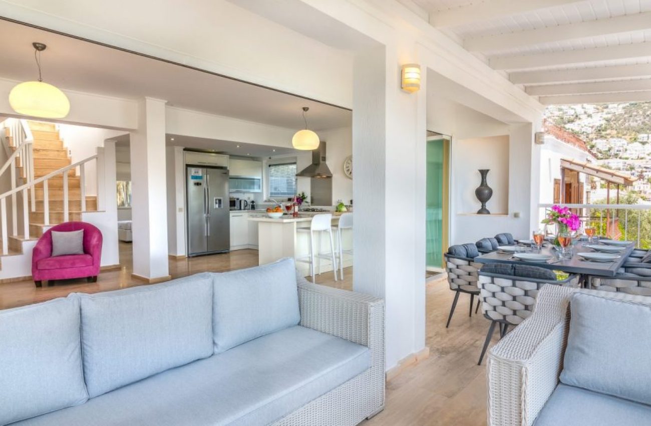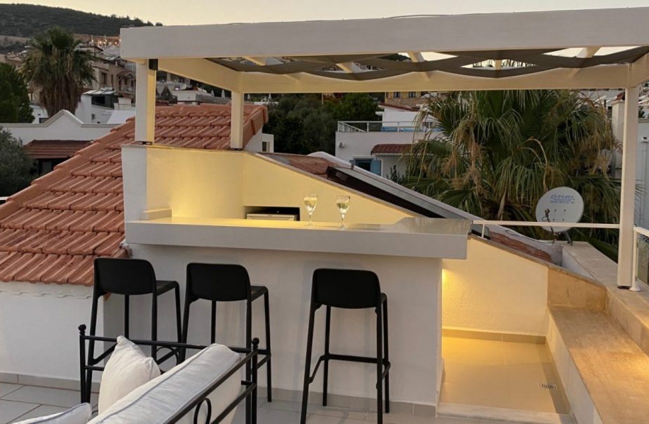 The property is perfectly located just 3 minutes walk from the town centre with its shops, restaurants and bars, and just a short walk from the town beach and harbour where you can pick up water taxis to the numerous beach clubs. Beyaz Ev has been fully refurbished and modernized throughout. It has its own private pool and stunning views of the bay and mountains.