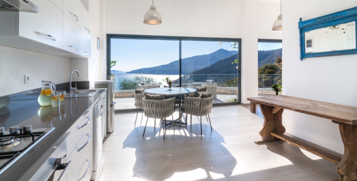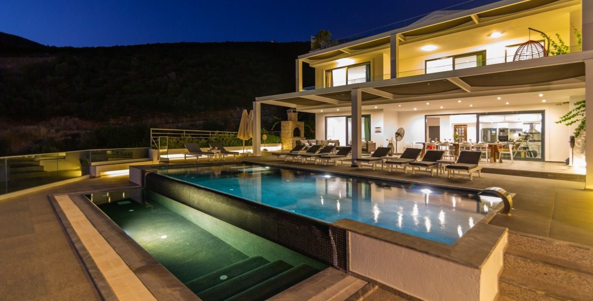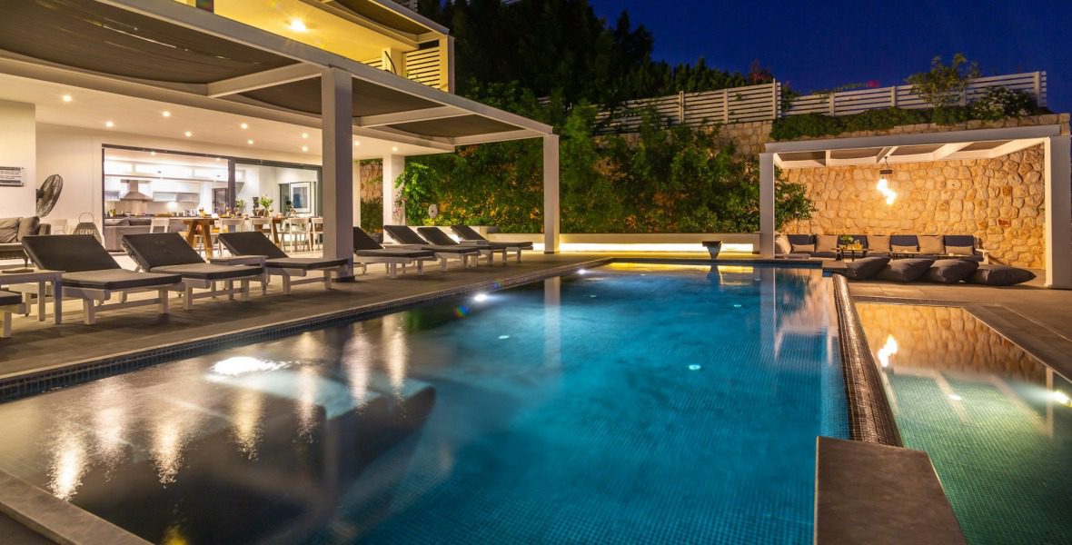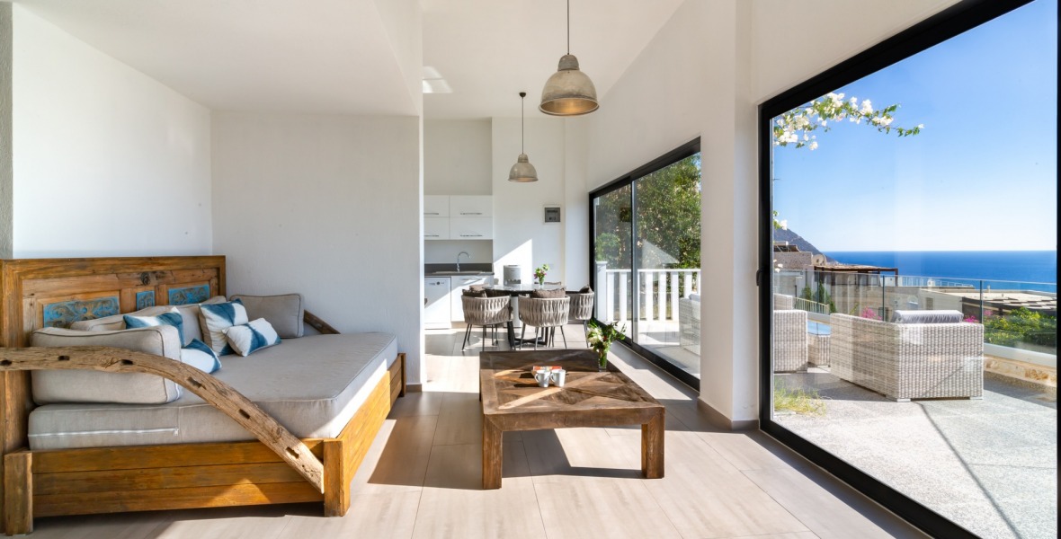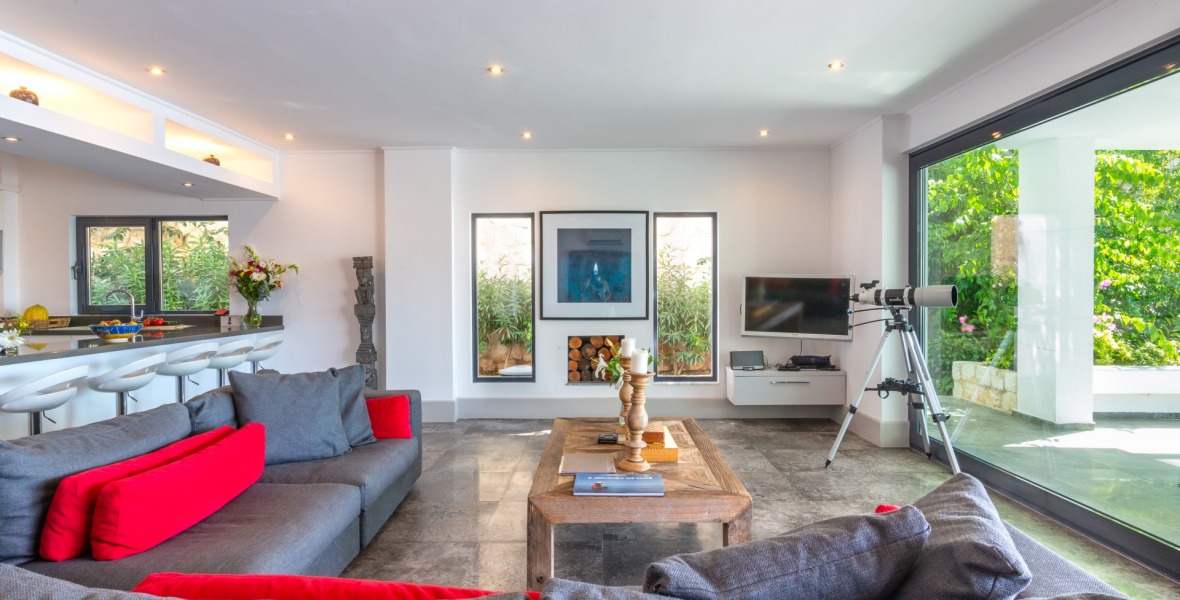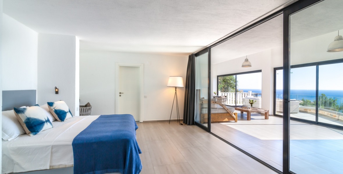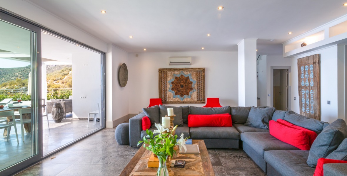 Villa Bono is a stunning contemporary style house positioned on the hillside overlooking Kalamar bay. This beautiful 5/6 bedroom, 5/6 bathroom house enjoys breath-taking views across the bay to the islands. The villa is approximately a 20 minute walk from the center of town and just a 5 minute downhill walk to the sea and the nearest beach club.