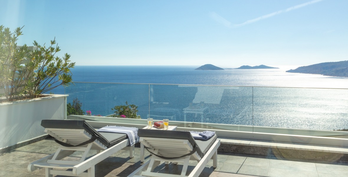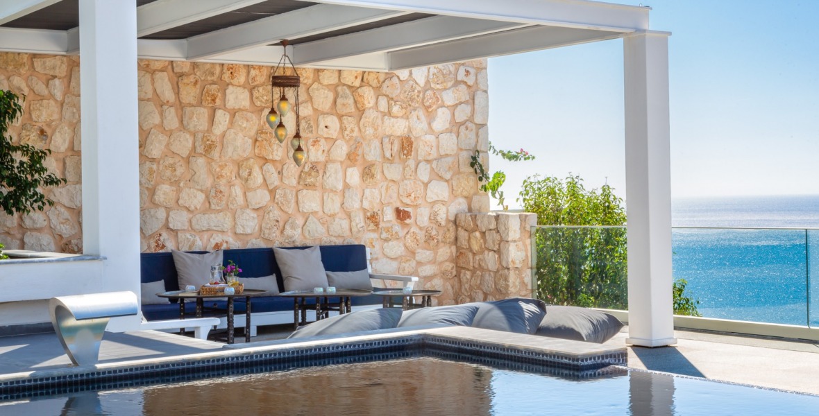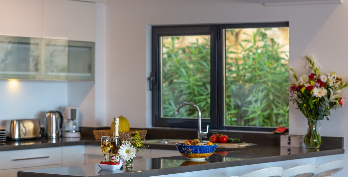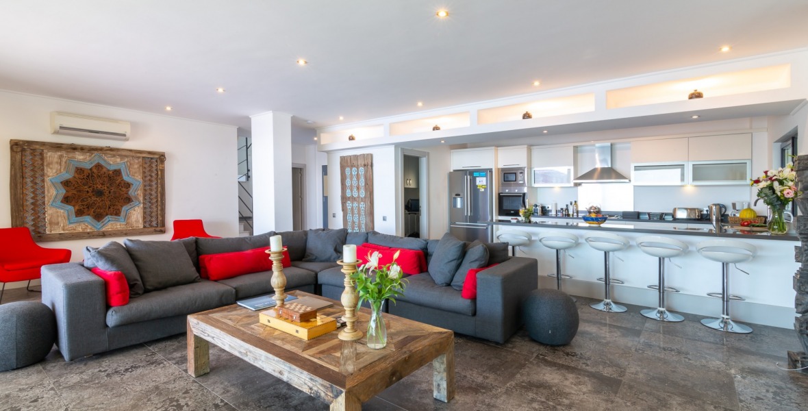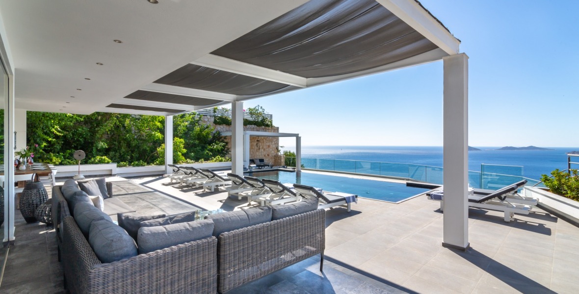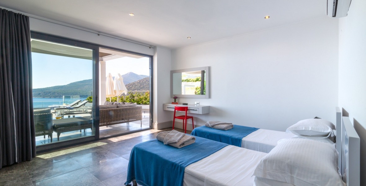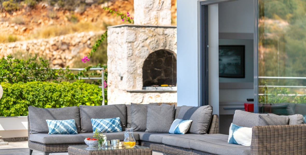 Villa Bono is a stunning contemporary style house positioned on the hillside overlooking Kalamar bay. This beautiful 5/6 bedroom, 5/6 bathroom house enjoys breath-taking views across the bay to the islands. The villa is approximately a 20 minute walk from the center of town and just a 5 minute downhill walk to the sea and the nearest beach club.