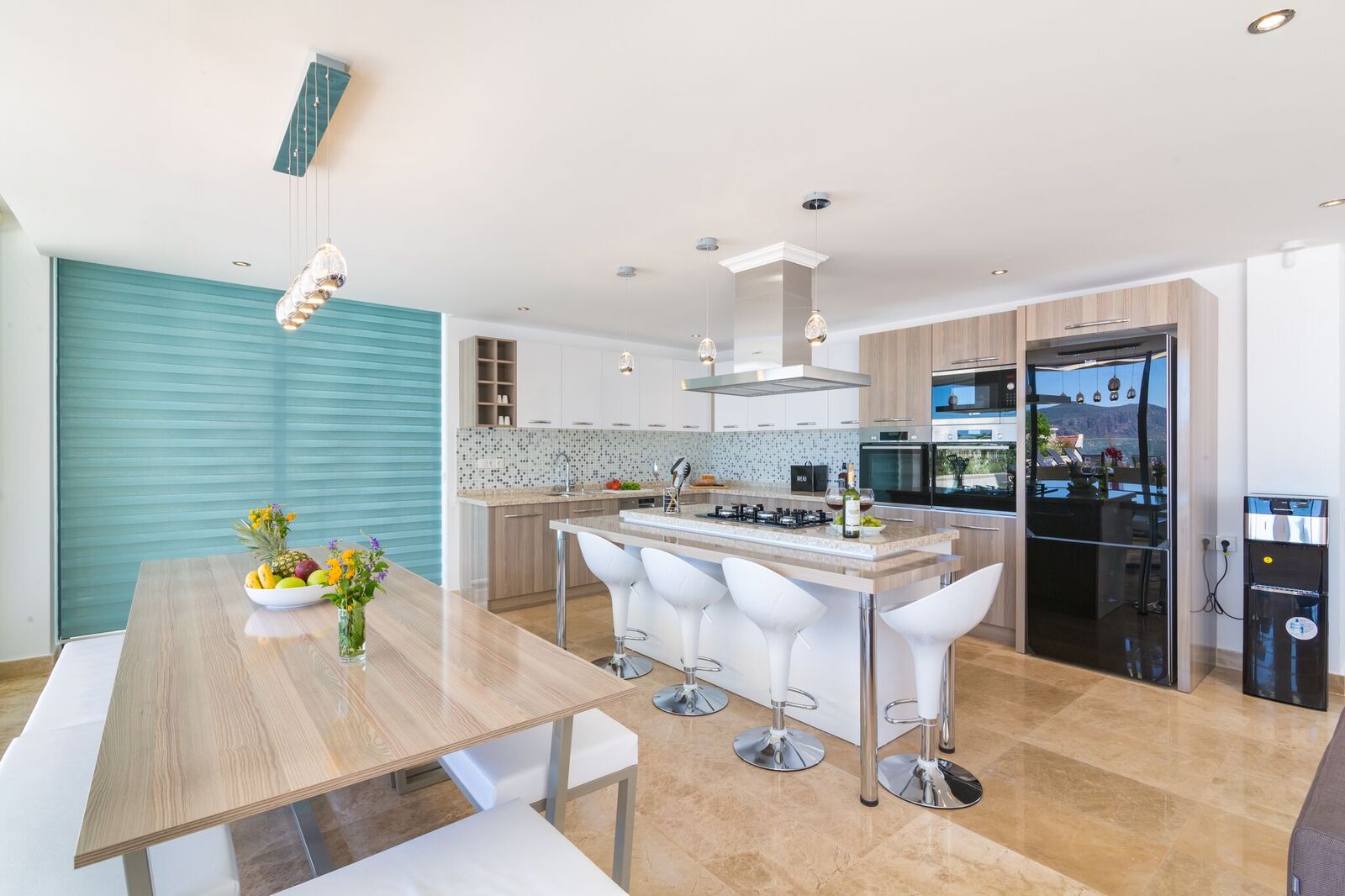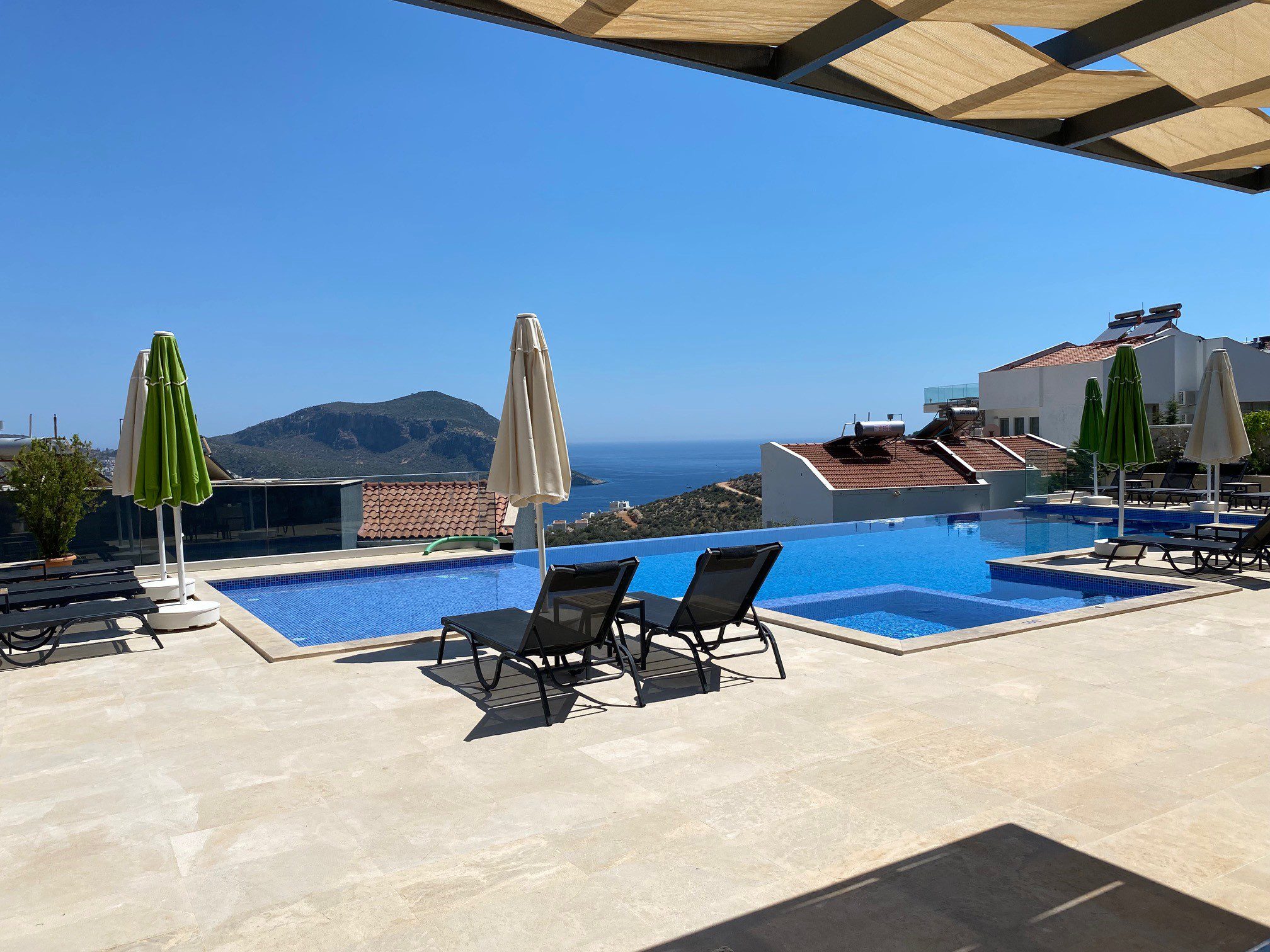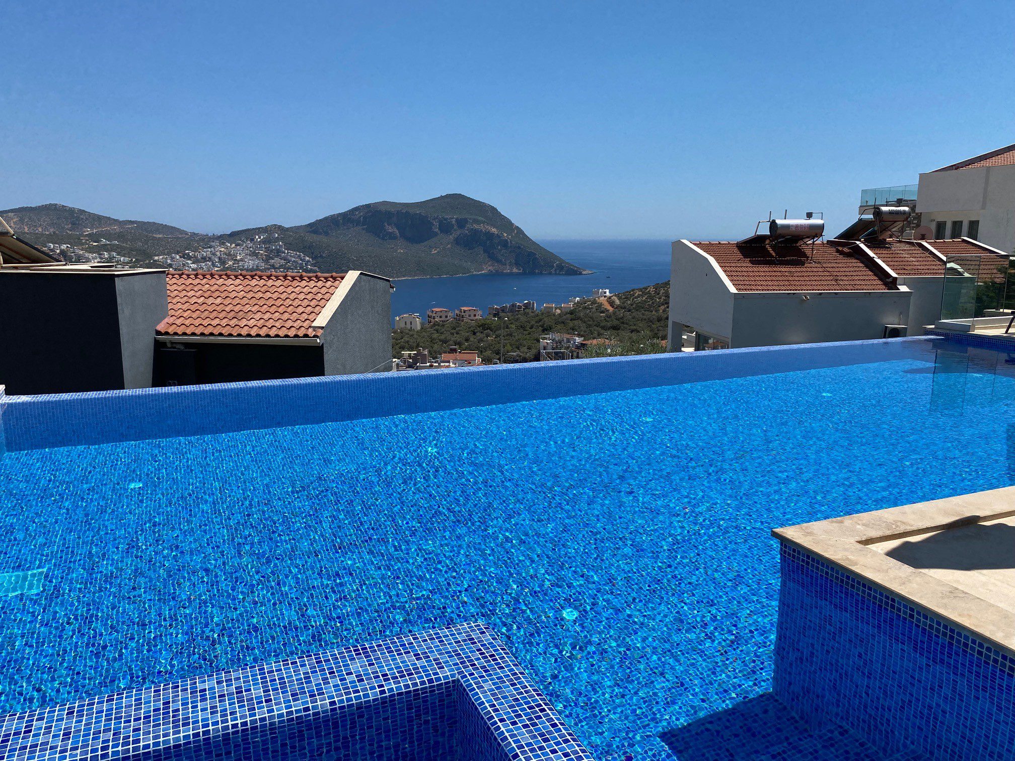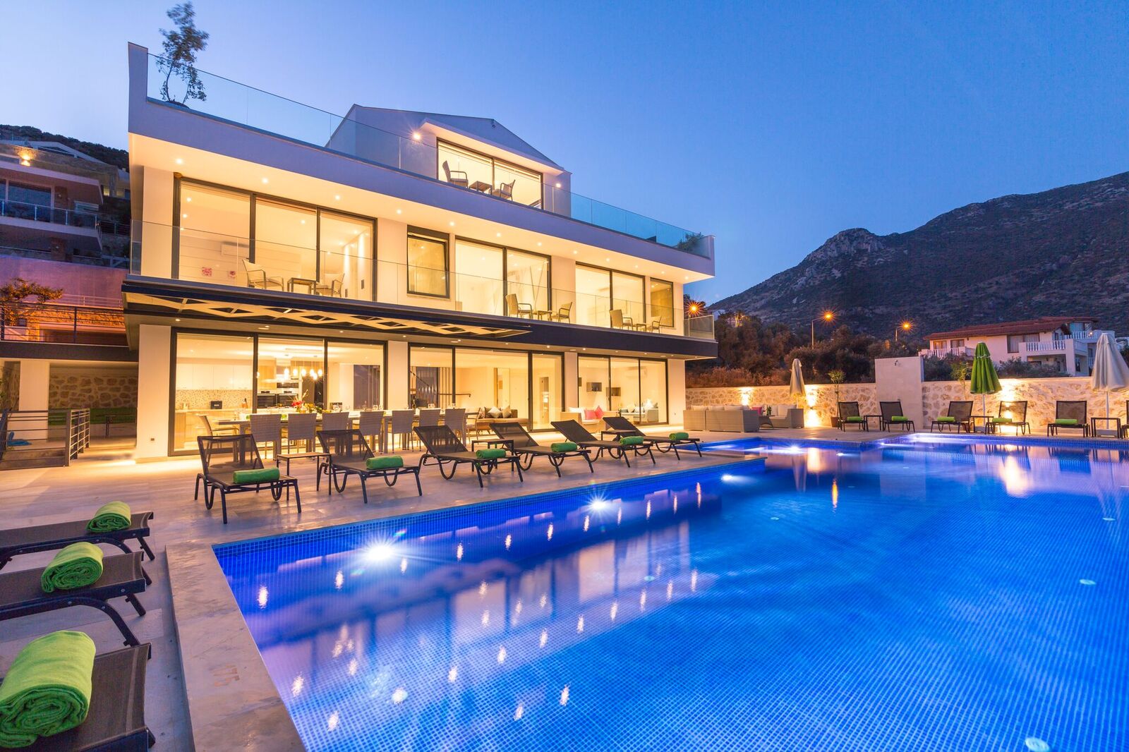 The villa enjoys a stunning vantage point on the brow of the hillside in Ortalaan and is just a 15 minute stroll from Kalkan harbour. This exceptional property accommodates up to 16 guests in 7 bedrooms and offers impressive views of Kalkan and Kalkan Bay.