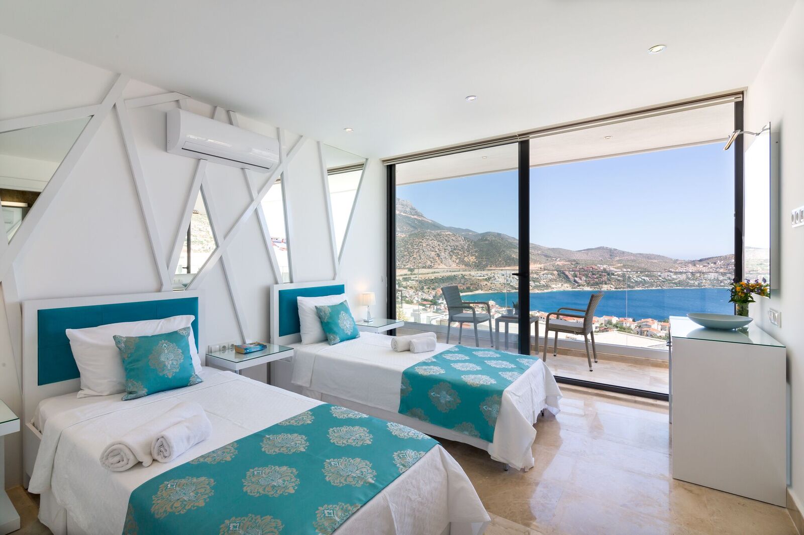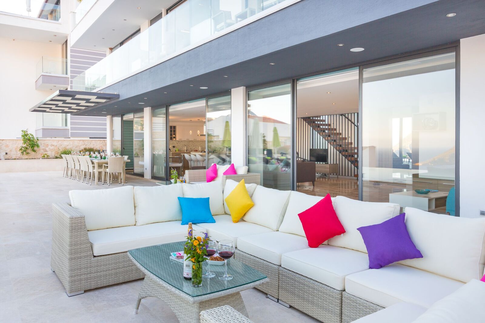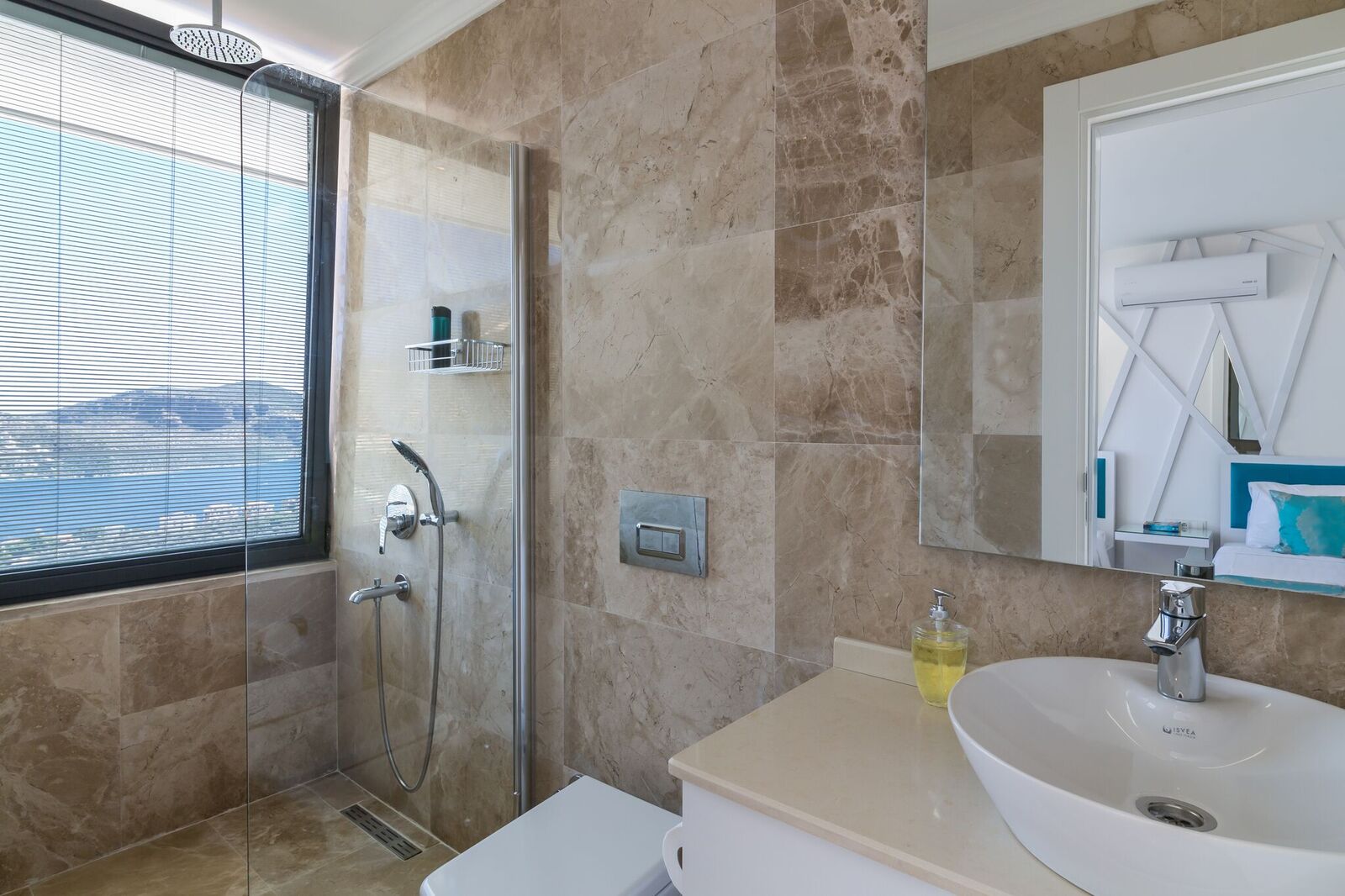 The villa enjoys a stunning vantage point on the brow of the hillside in Ortalaan and is just a 15 minute stroll from Kalkan harbour. This exceptional property accommodates up to 16 guests in 7 bedrooms and offers impressive views of Kalkan and Kalkan Bay.