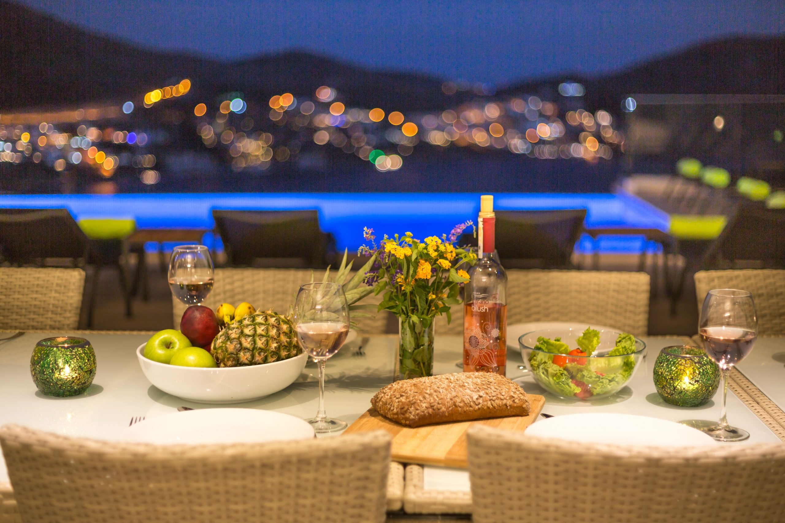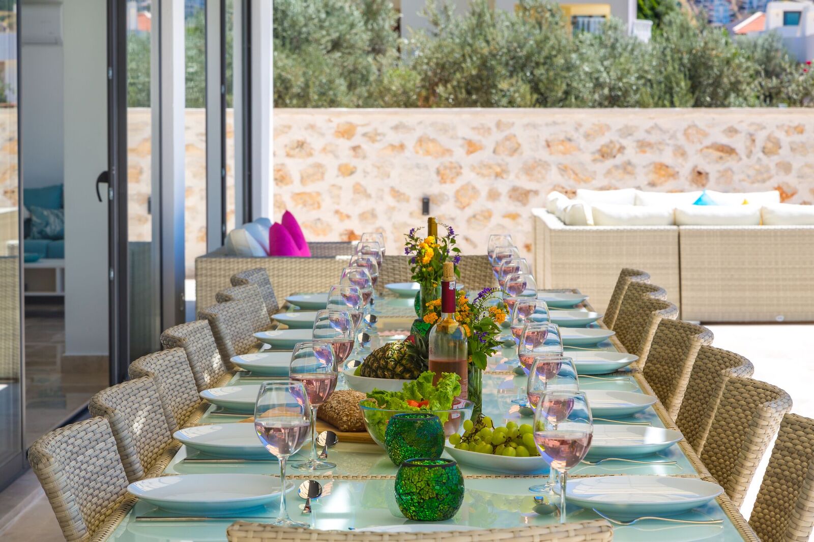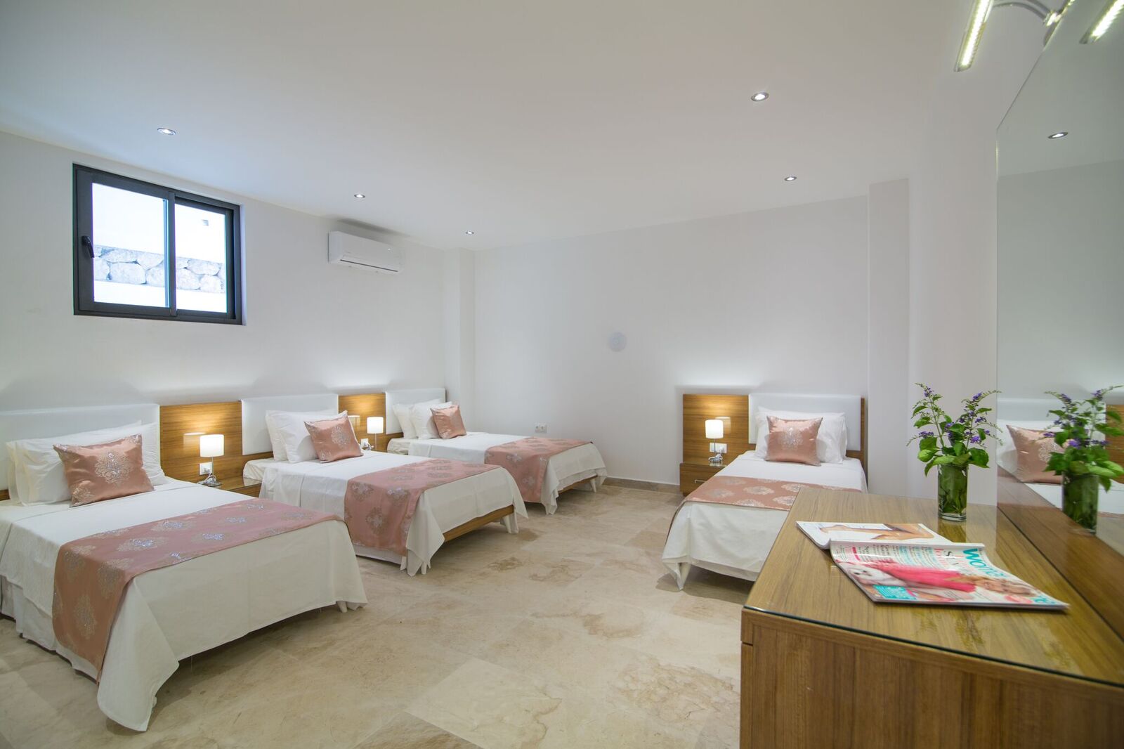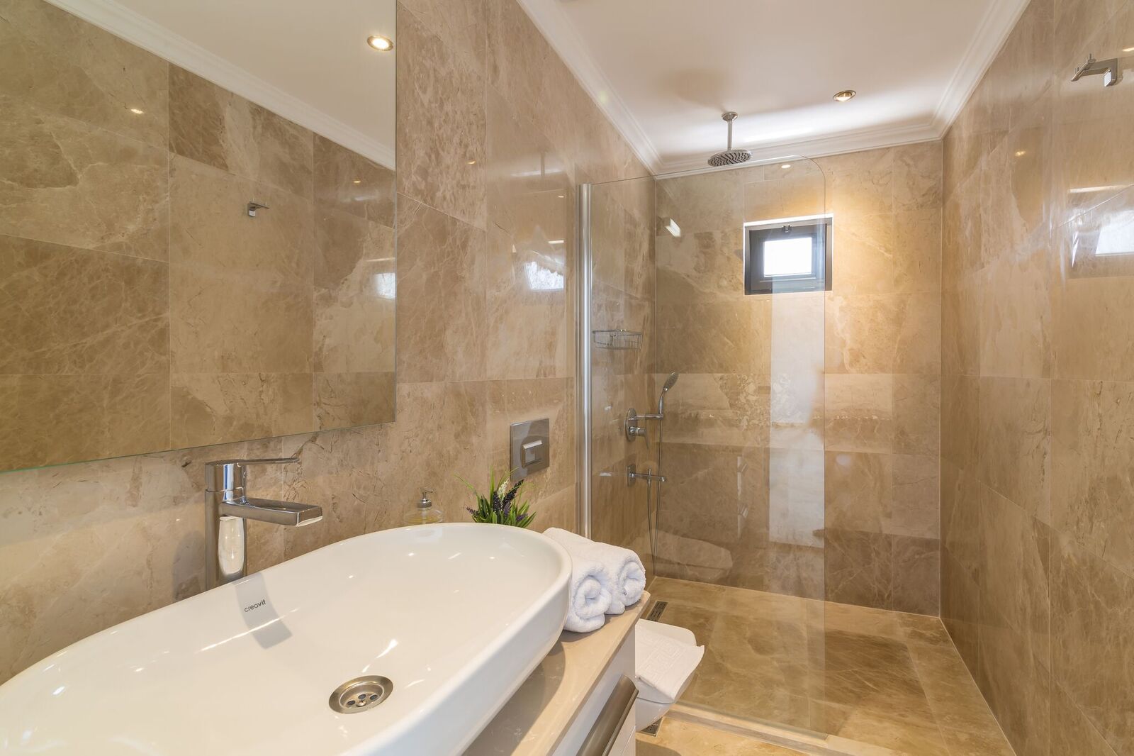 The villa enjoys a stunning vantage point on the brow of the hillside in Ortalaan and is just a 15 minute stroll from Kalkan harbour. This exceptional property accommodates up to 16 guests in 7 bedrooms and offers impressive views of Kalkan and Kalkan Bay.