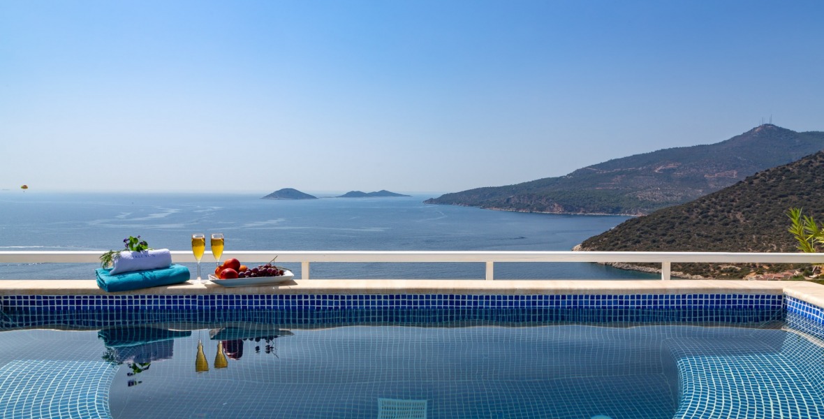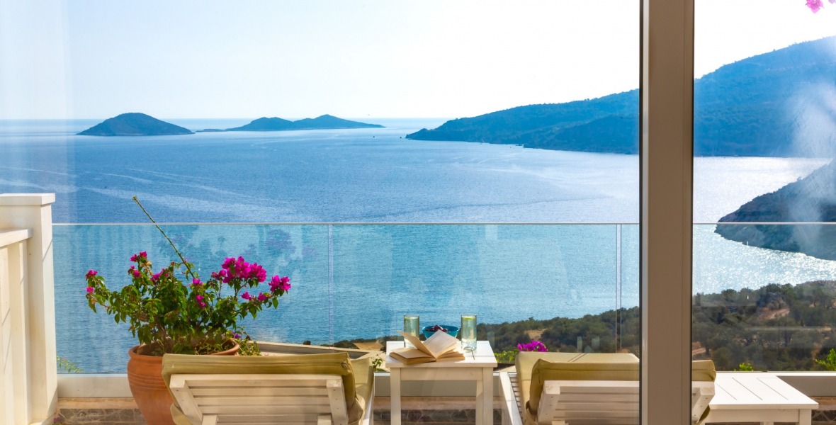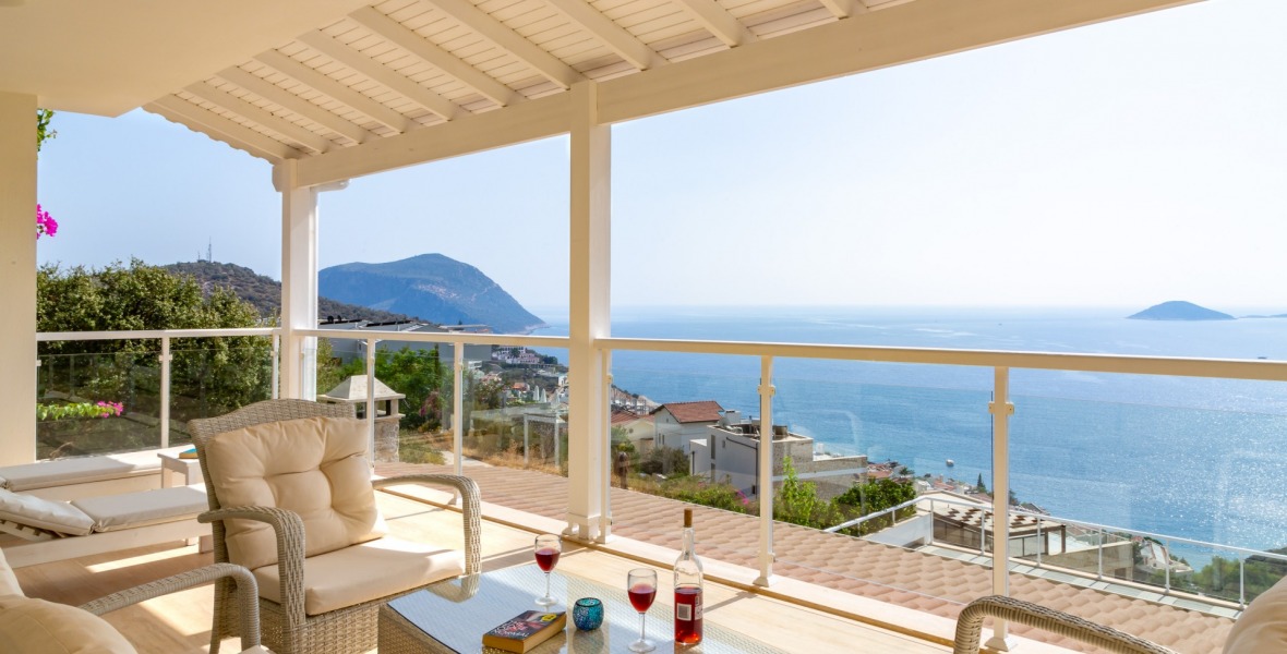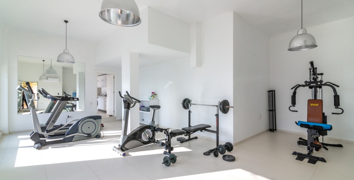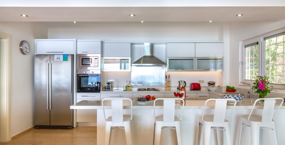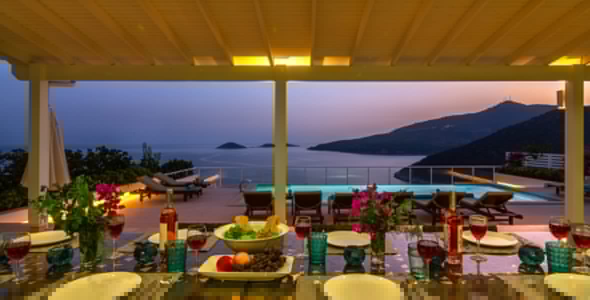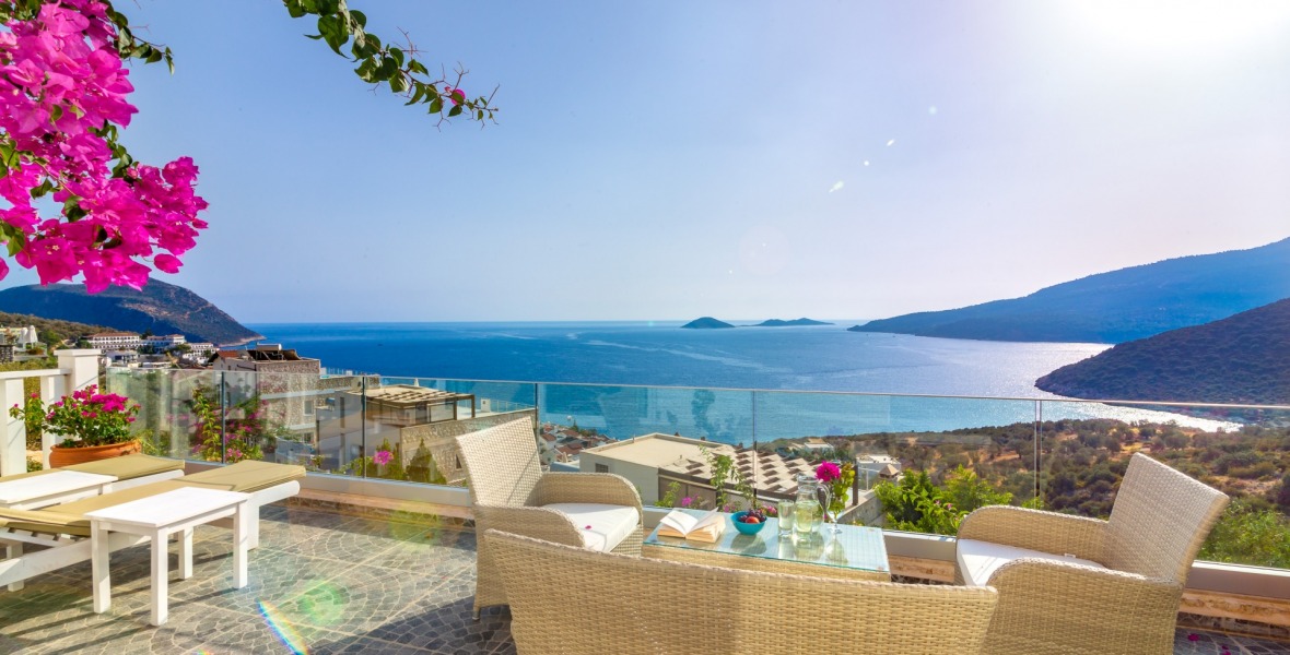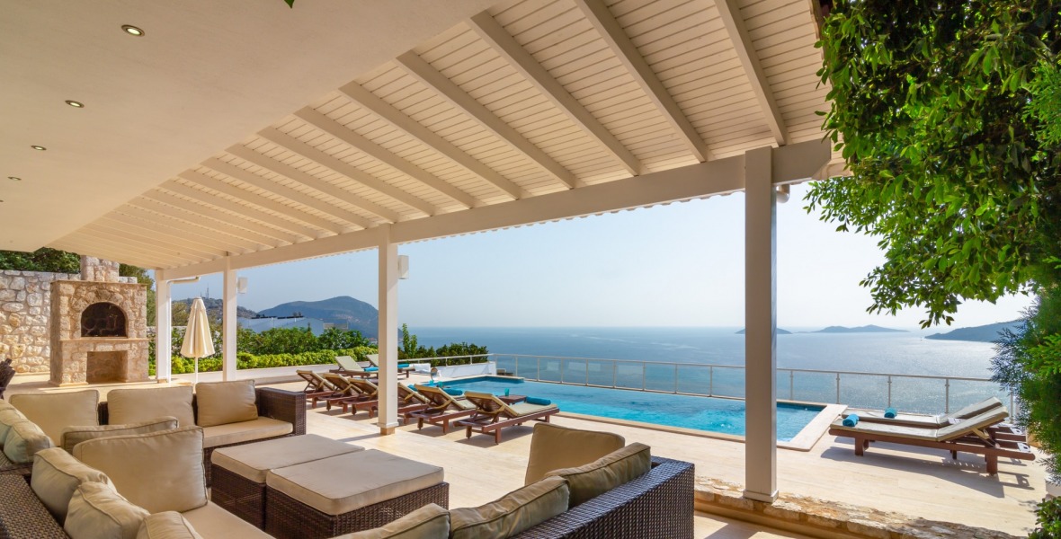 It is a beautiful house positioned on the hillside overlooking Kalamar Bay. This stunning 5/6 bedroom, 5/6 bathroom house enjoys breath taking uninterrupted views across the bay to the islands. The villa is situated approximately a 20 minute walk from the centre of town and just a 5 minute down hill stroll to the sea and the nearest beach club with it’s beautiful clear sea for swimming, it’s restaurant, bar and water sports facilities.