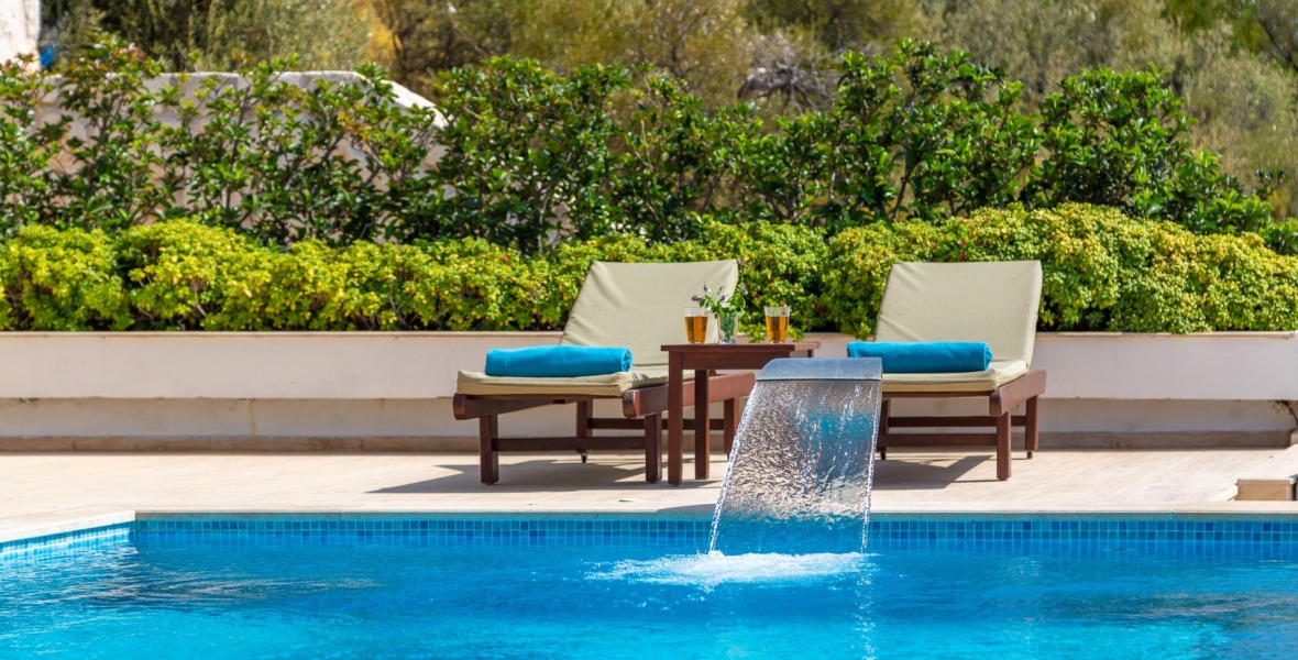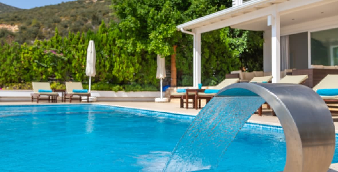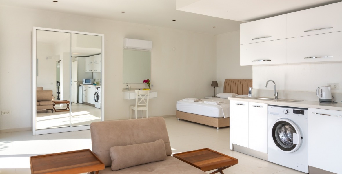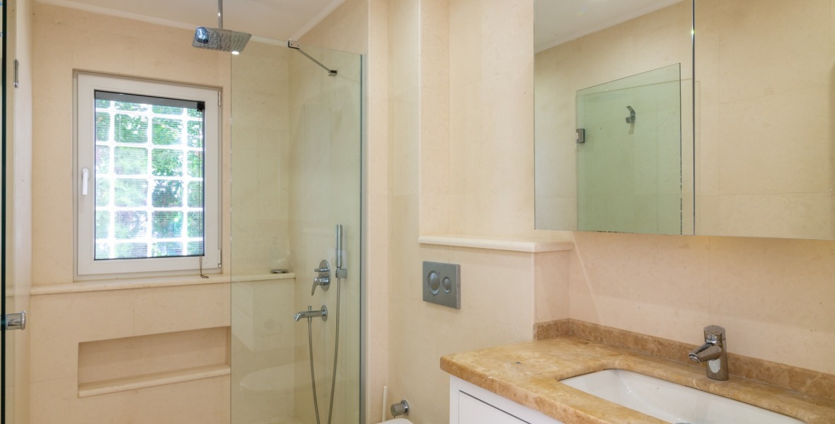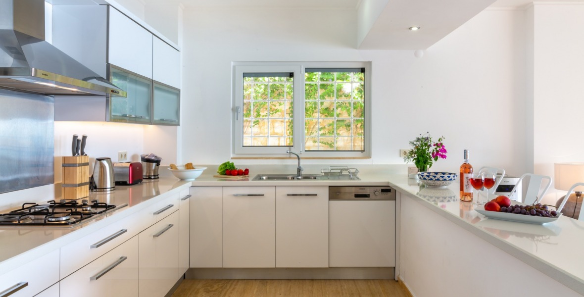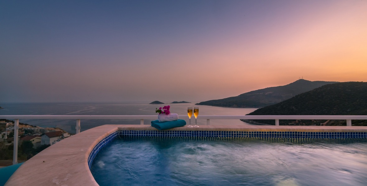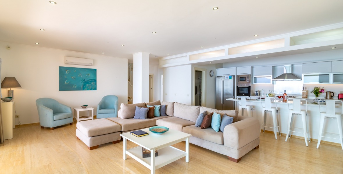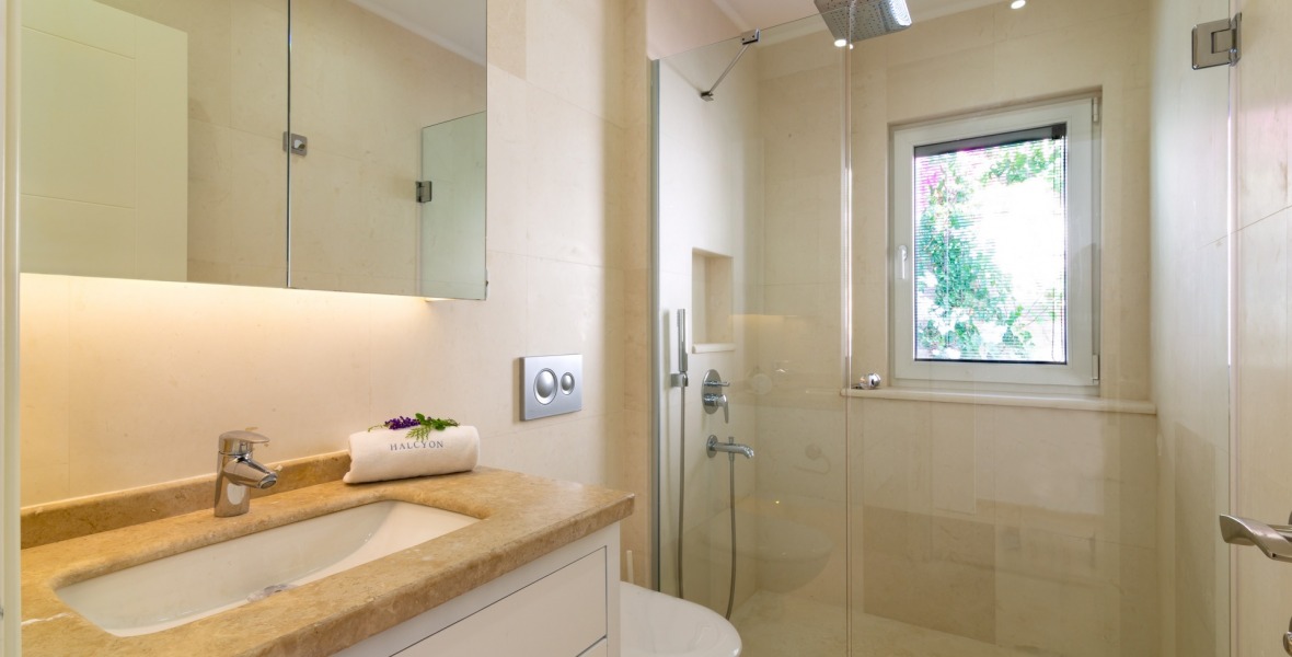 It is a beautiful house positioned on the hillside overlooking Kalamar Bay. This stunning 5/6 bedroom, 5/6 bathroom house enjoys breath taking uninterrupted views across the bay to the islands. The villa is situated approximately a 20 minute walk from the centre of town and just a 5 minute down hill stroll to the sea and the nearest beach club with it’s beautiful clear sea for swimming, it’s restaurant, bar and water sports facilities.