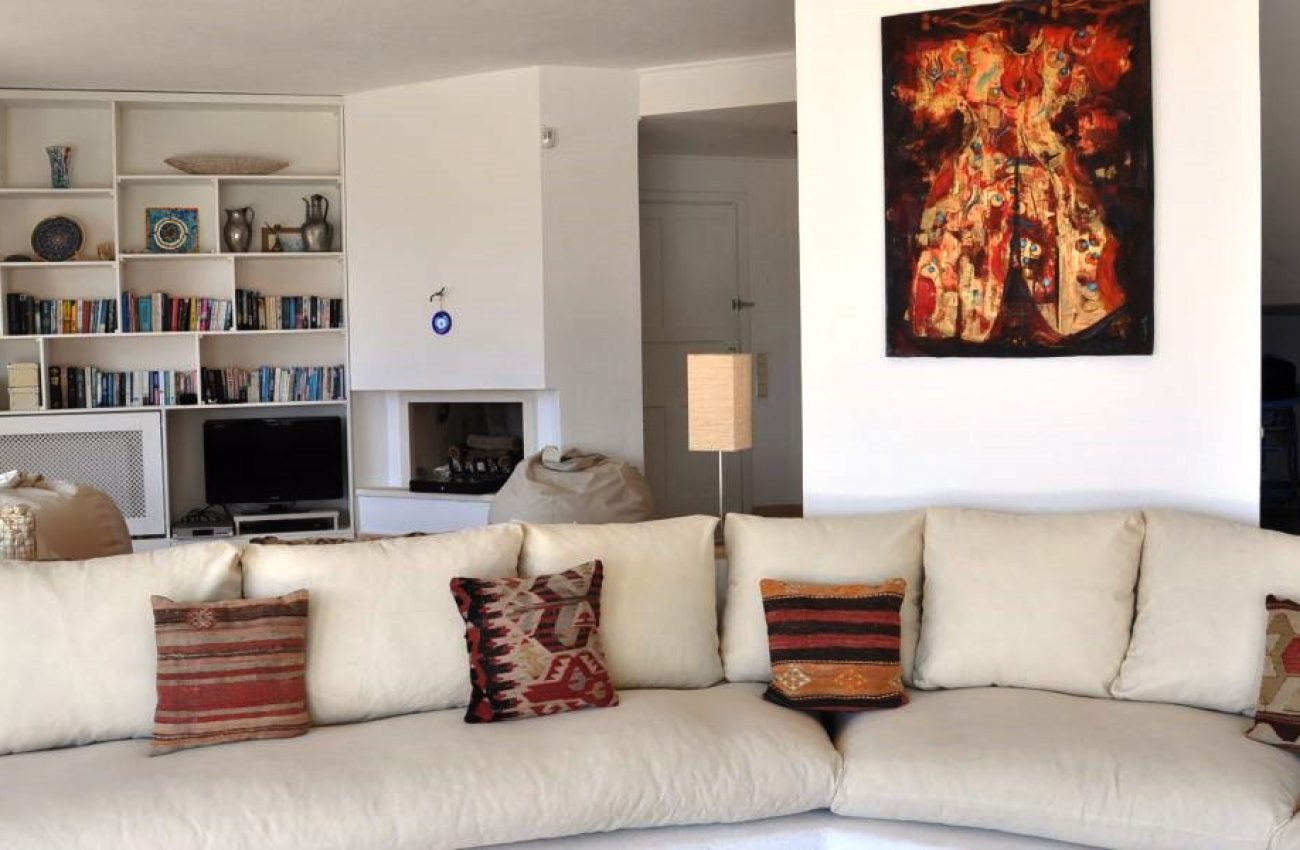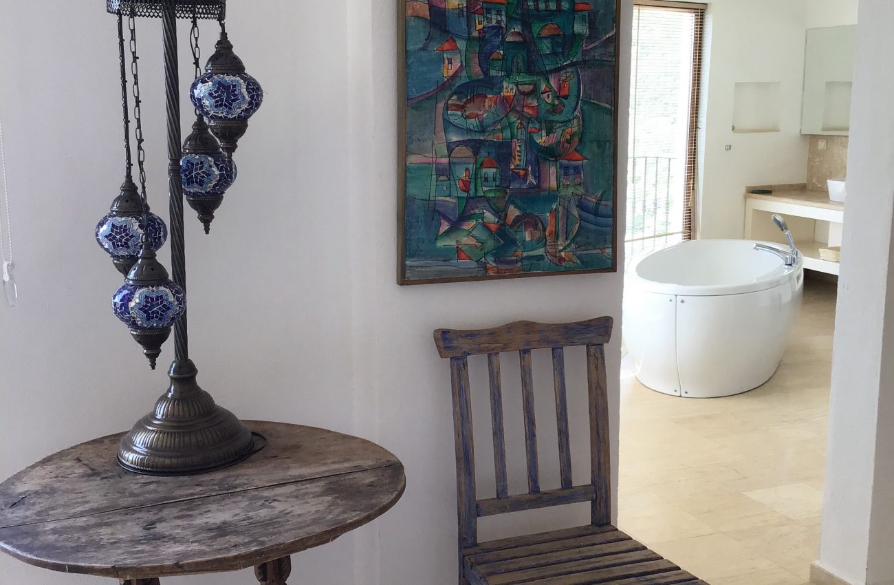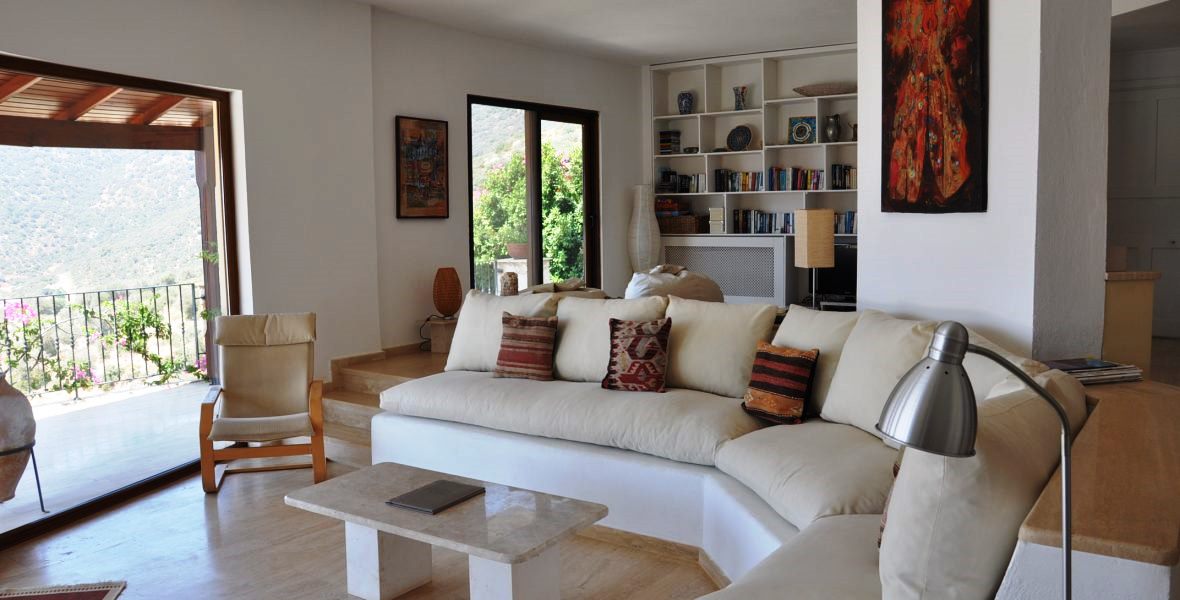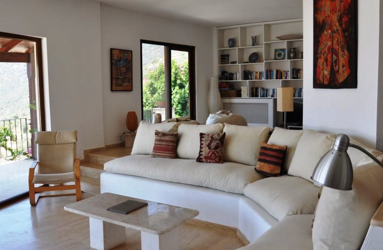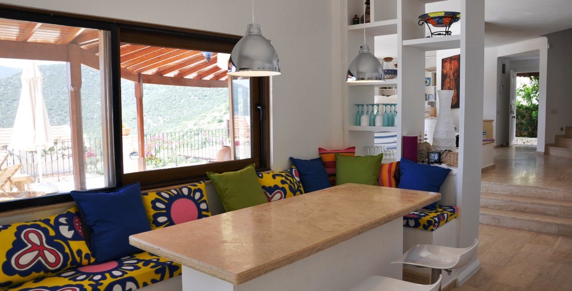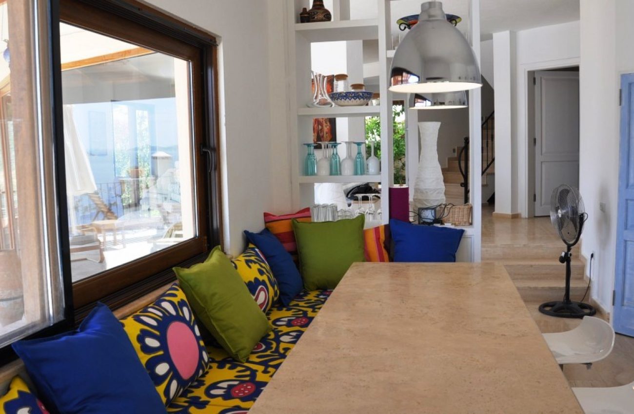 High House has a very spacious, open-plan living area with an infinity pool overlooking Kalamar Bay. The villa has a lovely, homely atmosphere. With simple, tasteful furniture, art, and beautiful, well-established gardens the villa feels instantly welcoming. High ceilings keep the rooms airy and there are lots of lovely, relaxing places outside – where guests can enjoy the sun or shade.