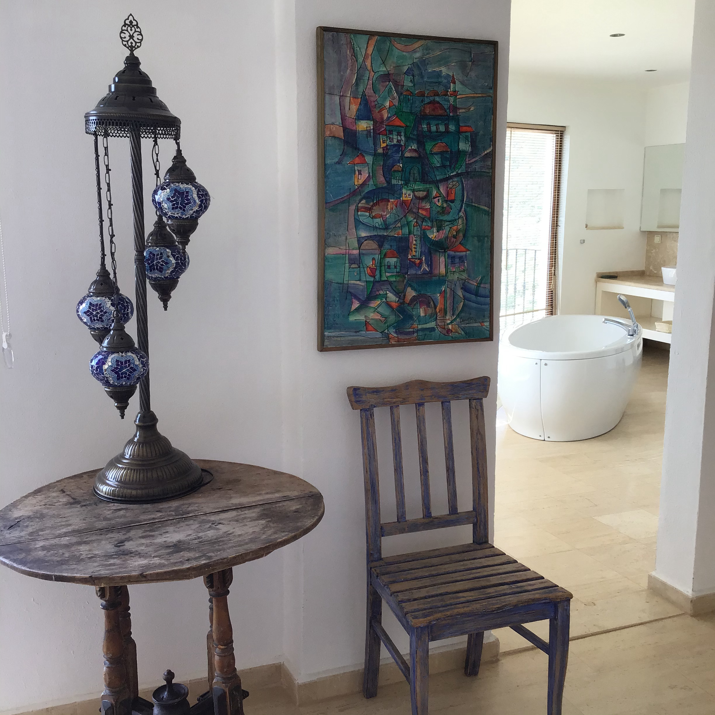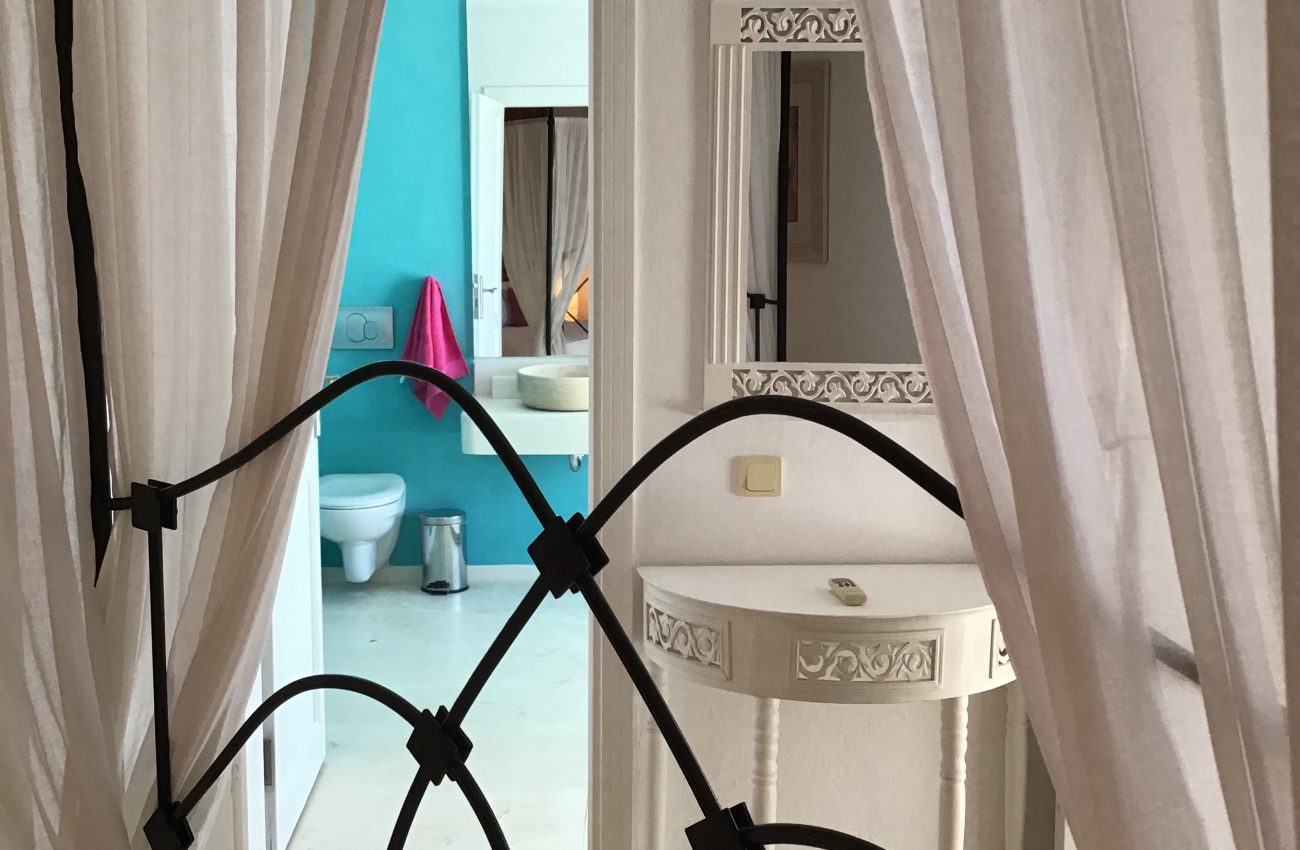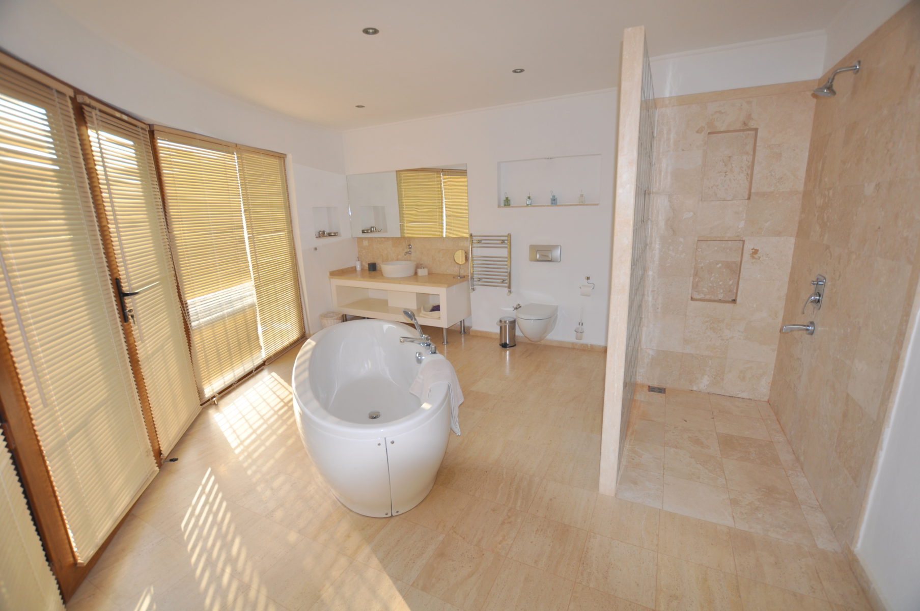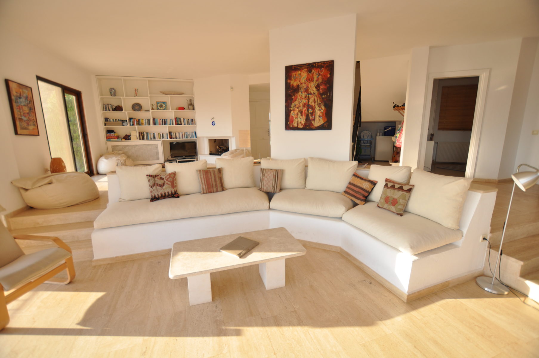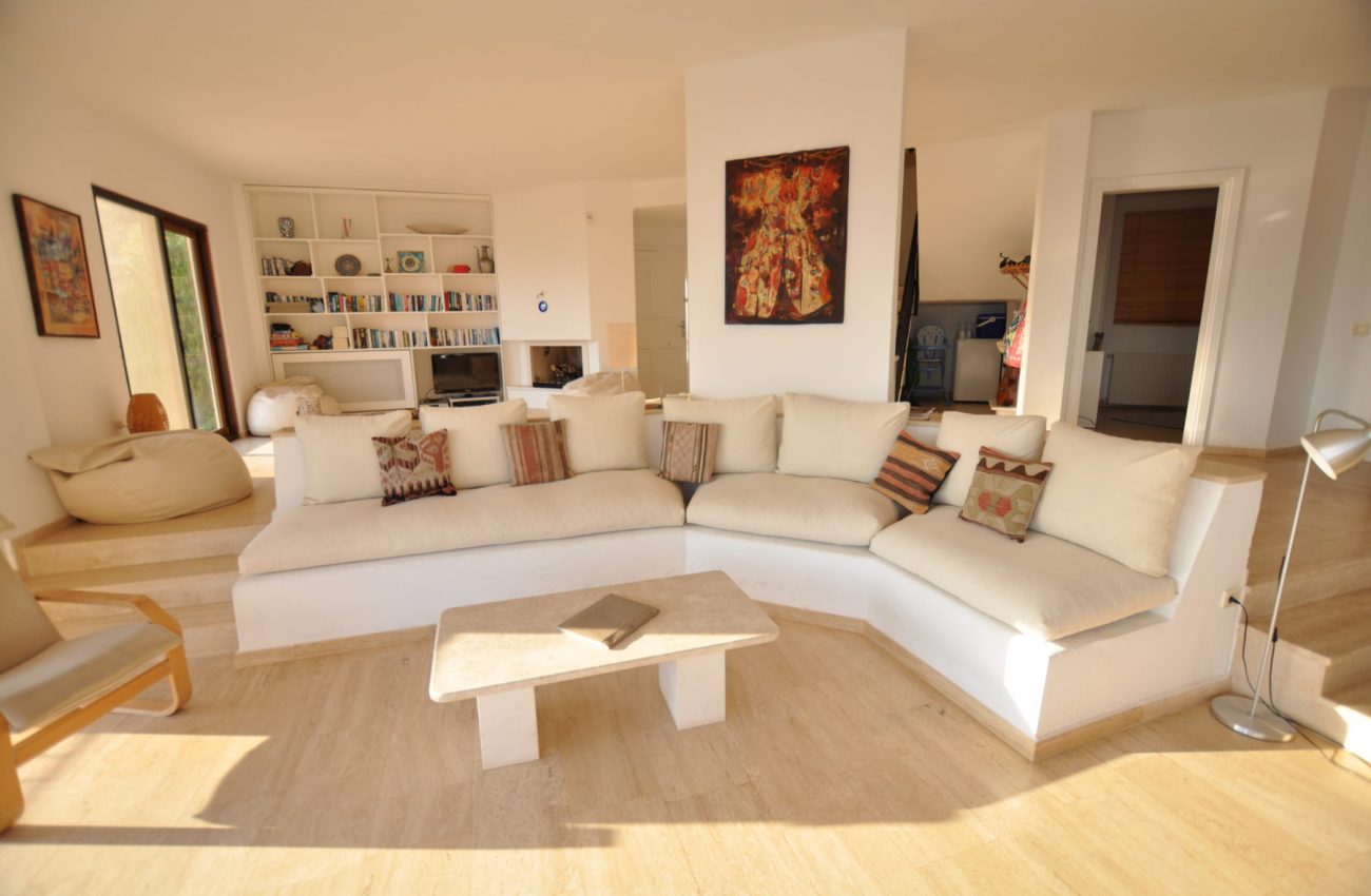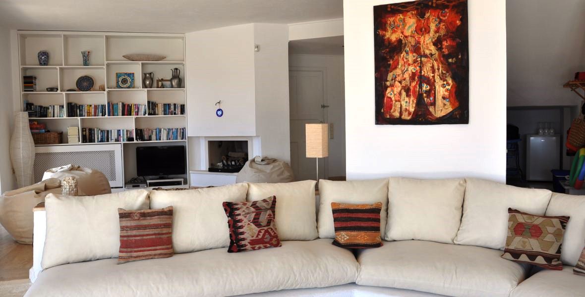 High House has a very spacious, open-plan living area with an infinity pool overlooking Kalamar Bay. The villa has a lovely, homely atmosphere. With simple, tasteful furniture, art, and beautiful, well-established gardens the villa feels instantly welcoming. High ceilings keep the rooms airy and there are lots of lovely, relaxing places outside – where guests can enjoy the sun or shade.
