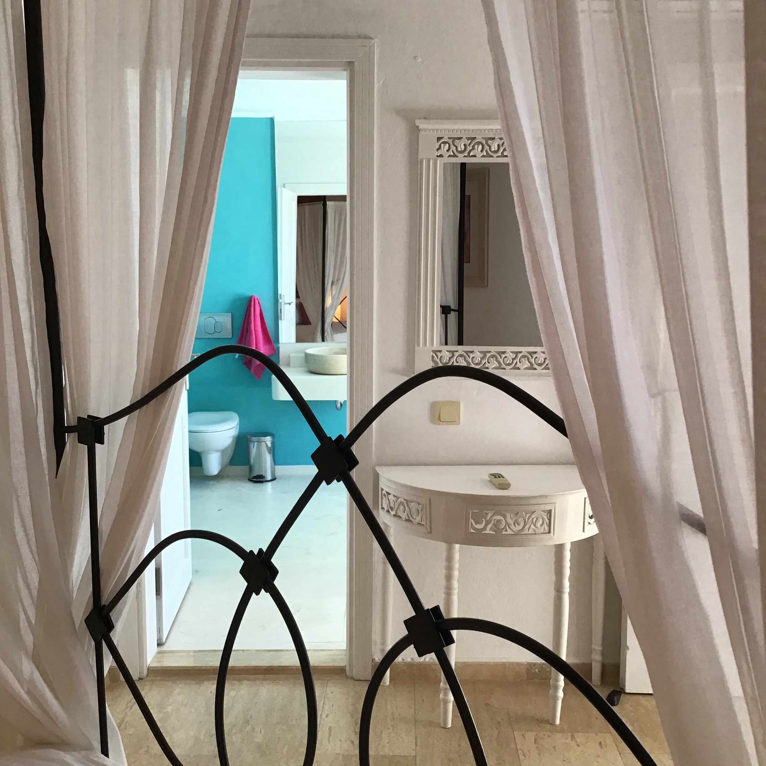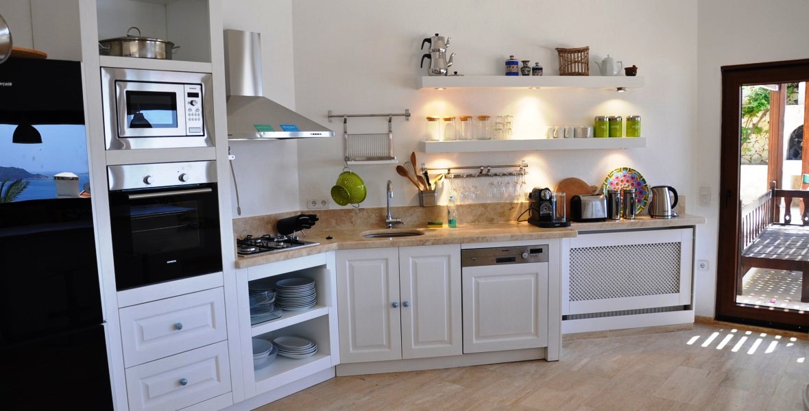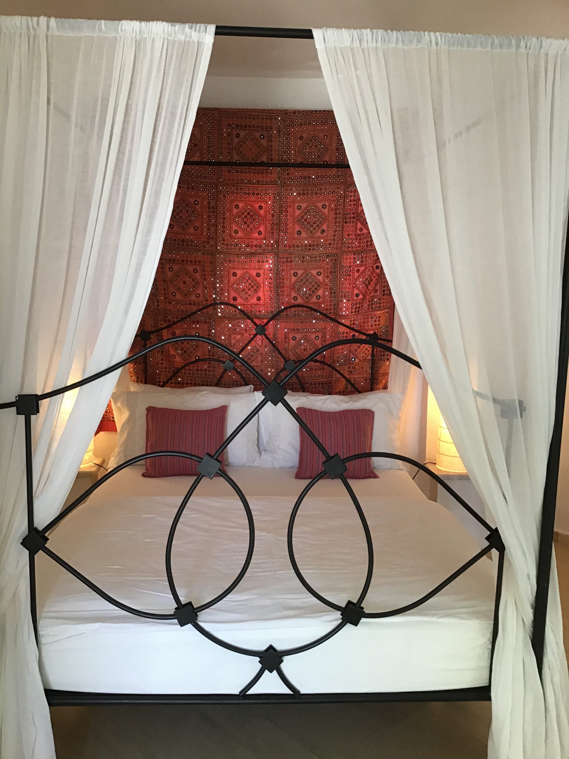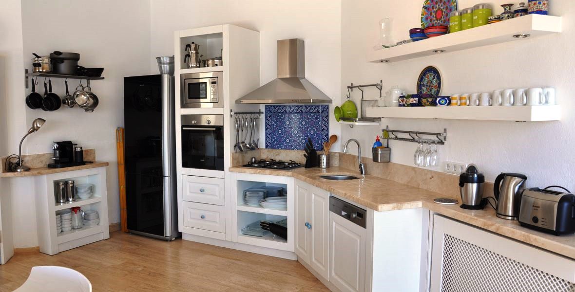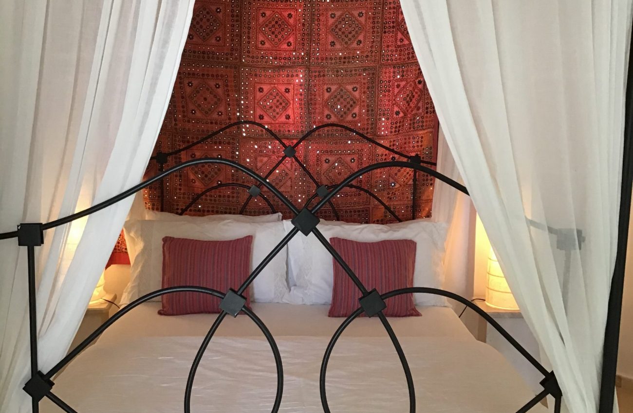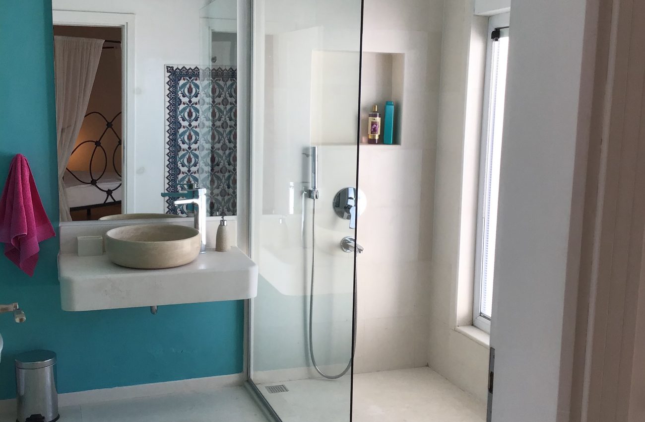 High House has a very spacious, open-plan living area with an infinity pool overlooking Kalamar Bay. The villa has a lovely, homely atmosphere. With simple, tasteful furniture, art, and beautiful, well-established gardens the villa feels instantly welcoming. High ceilings keep the rooms airy and there are lots of lovely, relaxing places outside – where guests can enjoy the sun or shade.