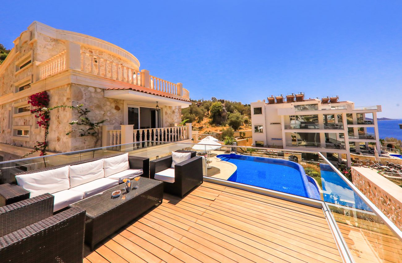This villa is a 6 bedroom villa overlooking Kalamar Bay and the islands. The villa is situated just a 5 minute stroll to the nearest beach club with its restaurant and water sports facilities and approximately a 20-30 minute walk into the centre of Kalkan.