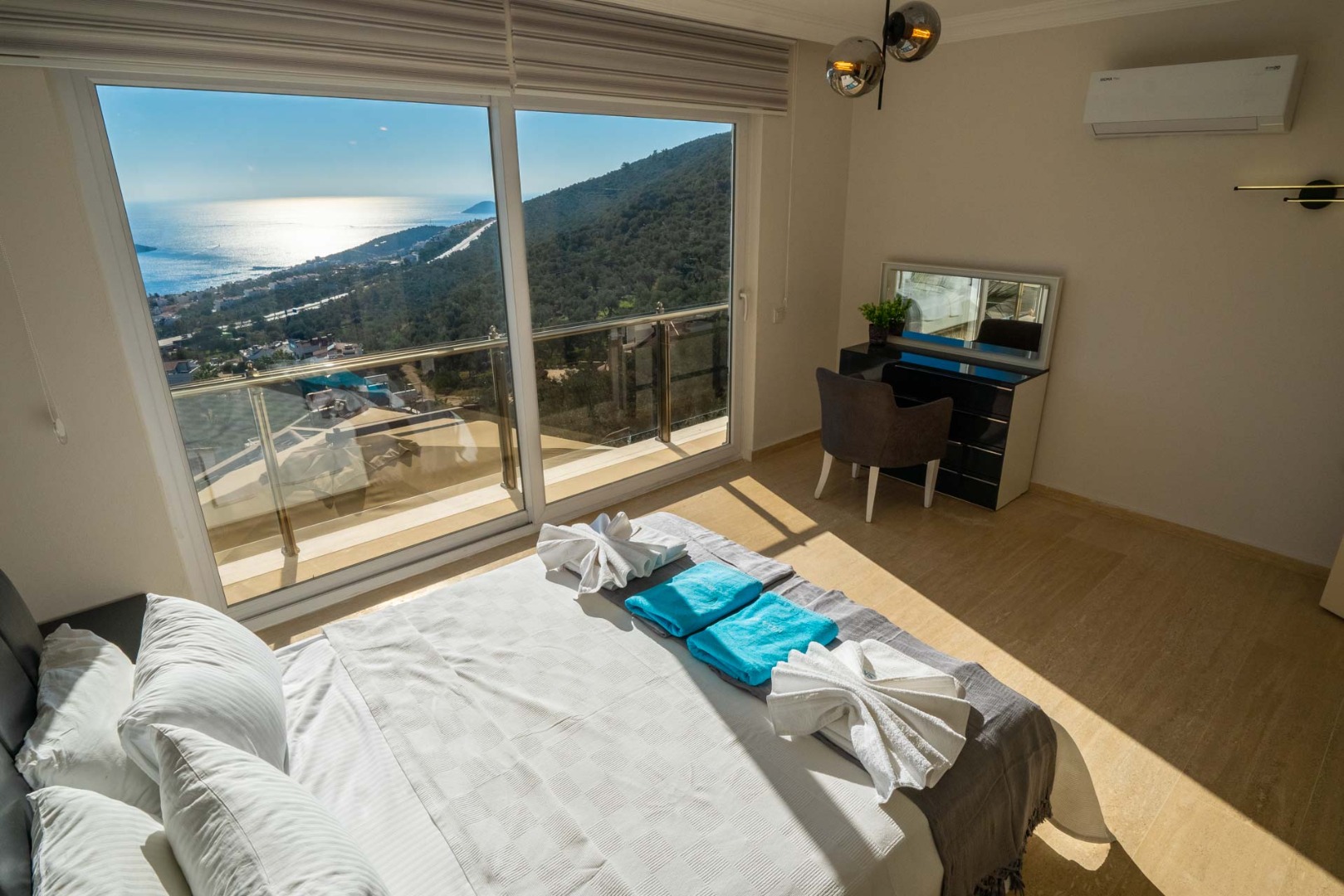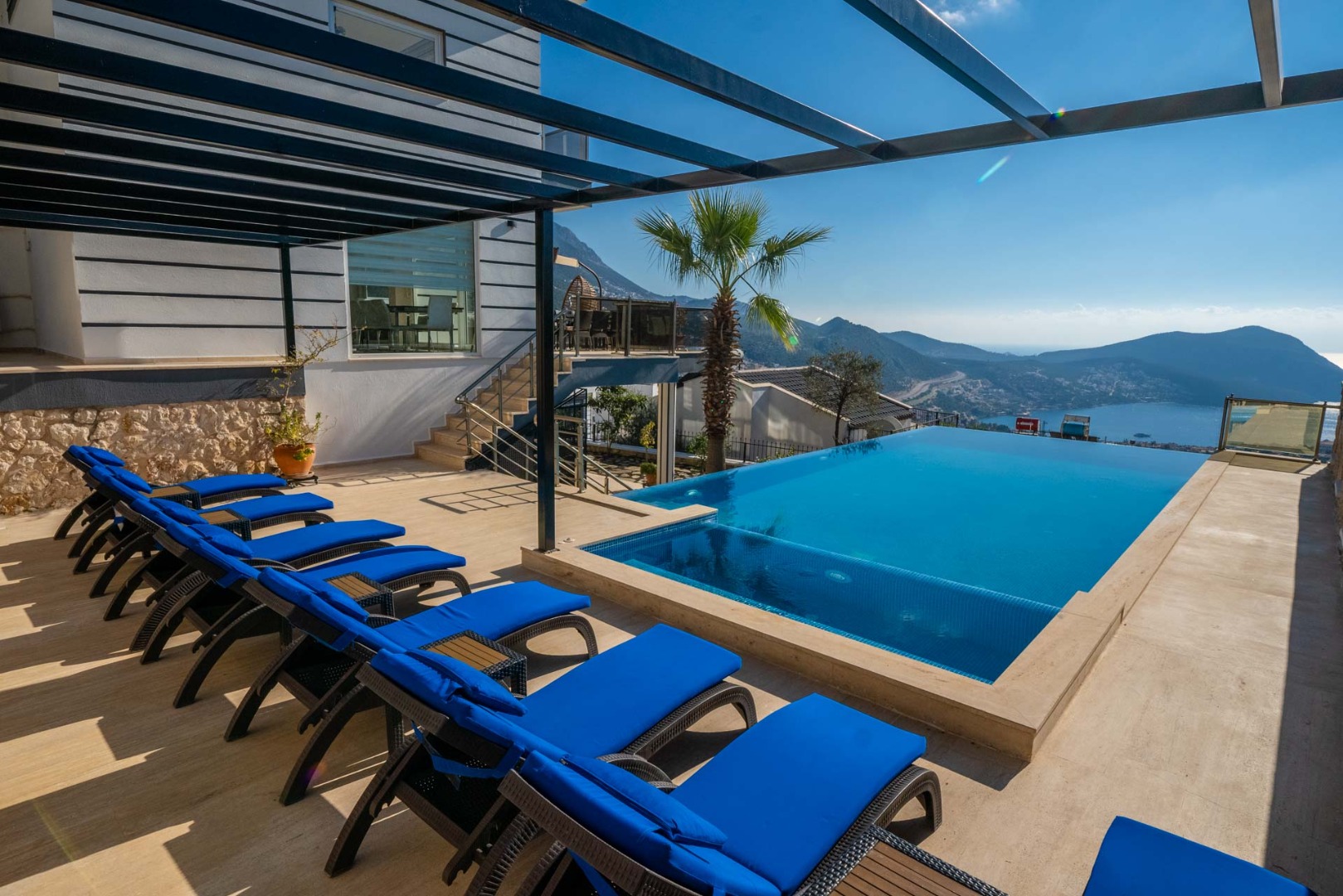“Villa in the Sky is a spacious 5-bedroom villa located just above Kalkan town center, offering uninterrupted sea views. Every room overlooks the breathtaking Kalkan Bay, while the infinity pool and modern design promise comfort, luxury, and an unforgettable holiday experience.”