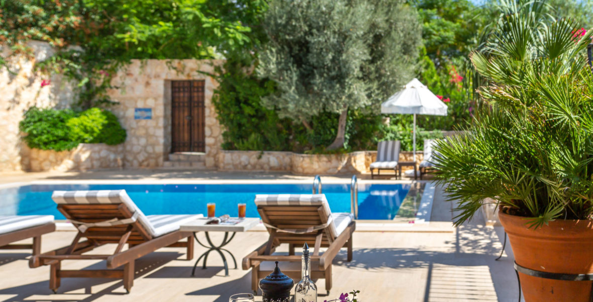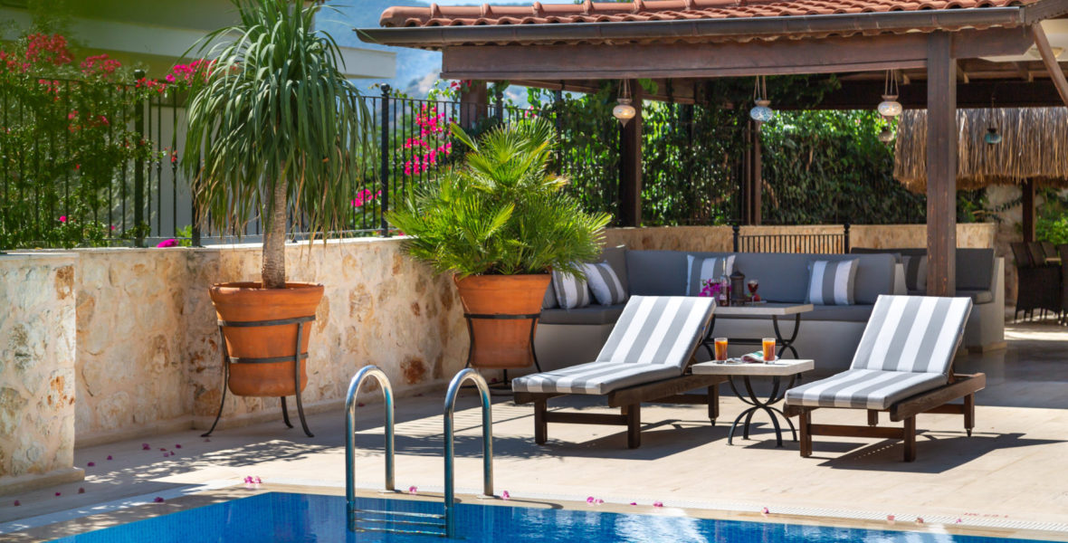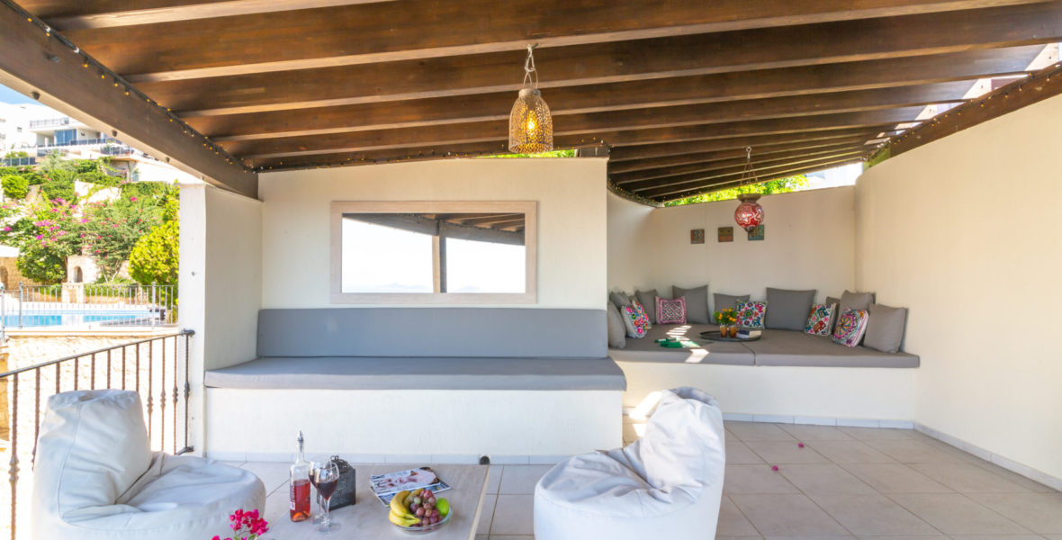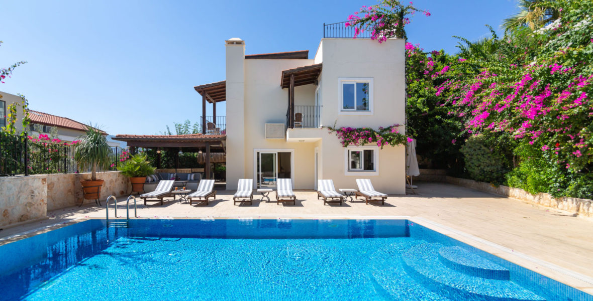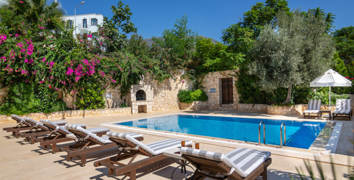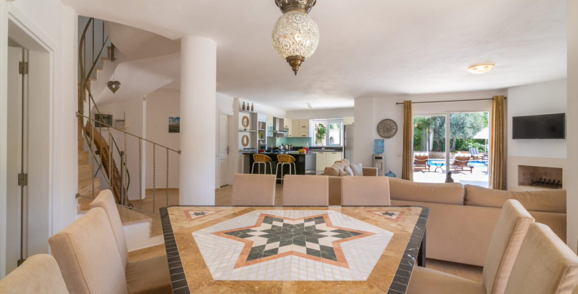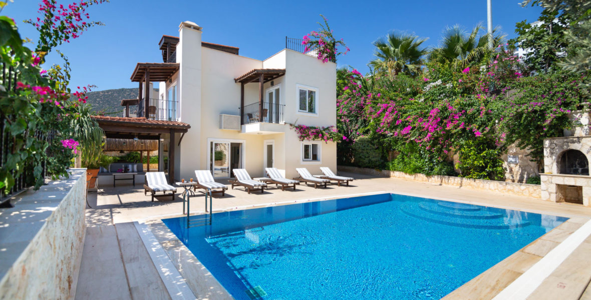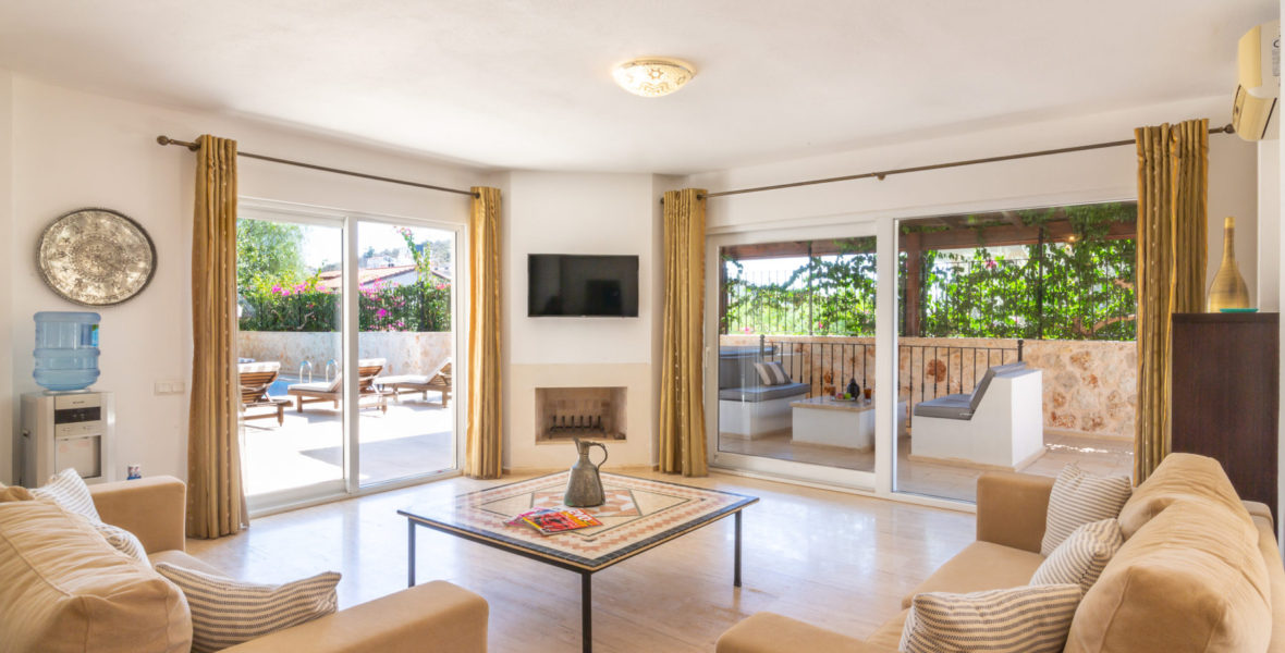 The villa is a beautifully presented 4 bedroom house in the Kalamar Bay area of Kalkan. The Villa is situated approximately a 15 minute walk from the centre of town and just a 5 minute down hill stroll to the sea and the nearest beach club with it’s water sports facilities.