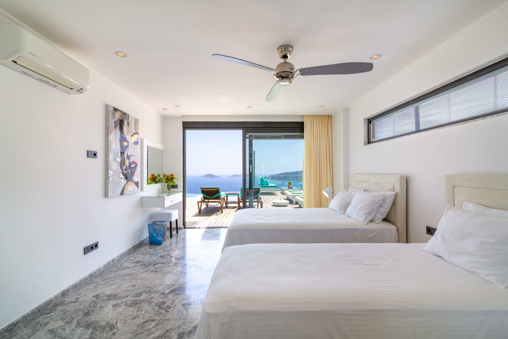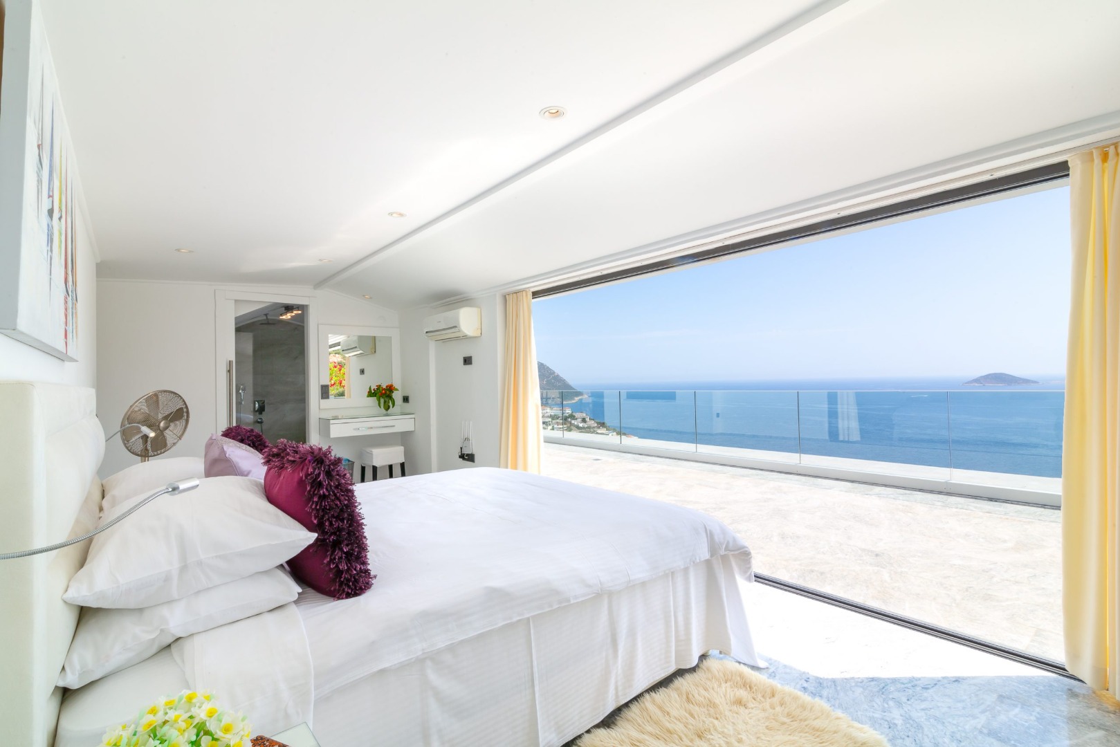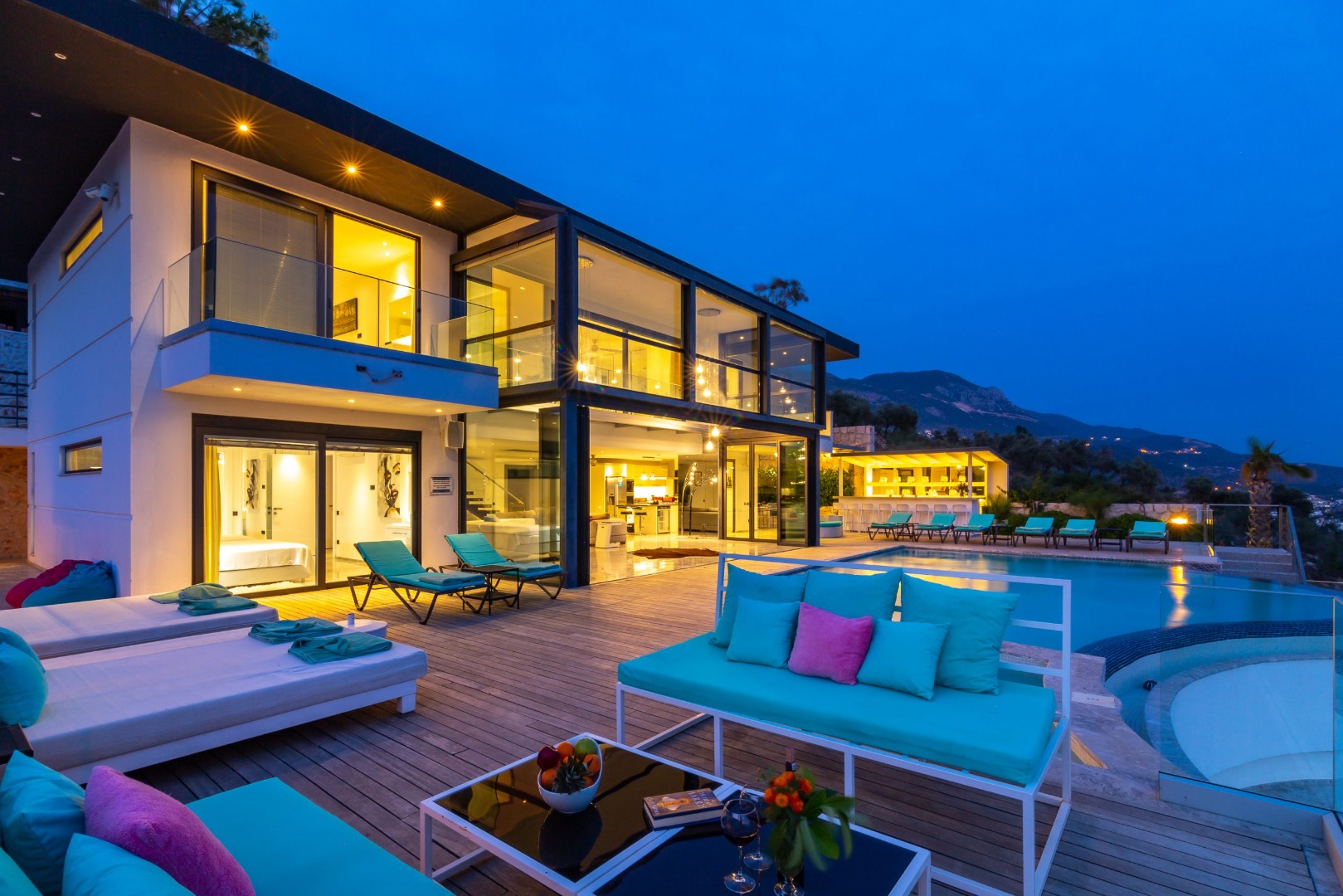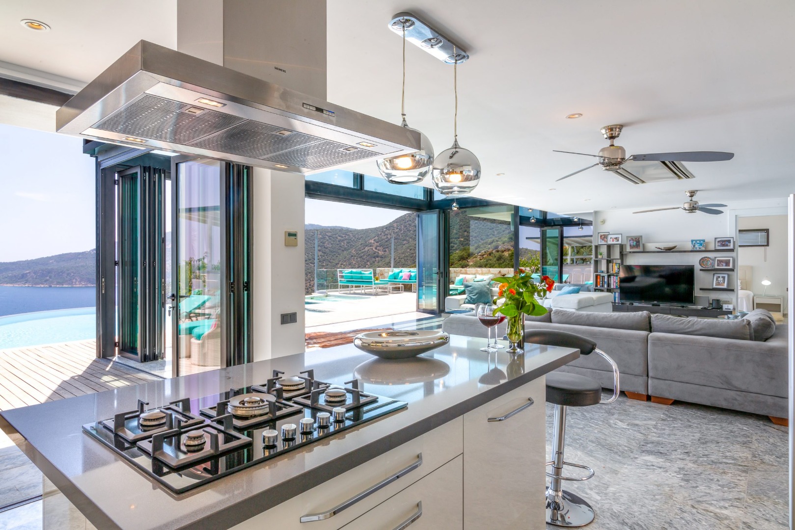 A breathtakingly beautiful contemporary style house positioned on the hillside overlooking Kalamar bay. This fabulous 5 bedroom, 5 bathroom house enjoys breath-taking views across the bay to the islands. The villa is approximately a 20 minute walk from the centre of town and just a 10 minute downhill walk to the sea and the nearest beach club.