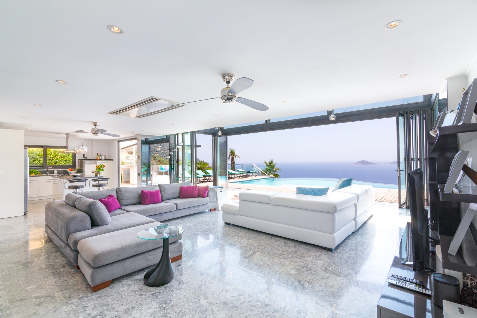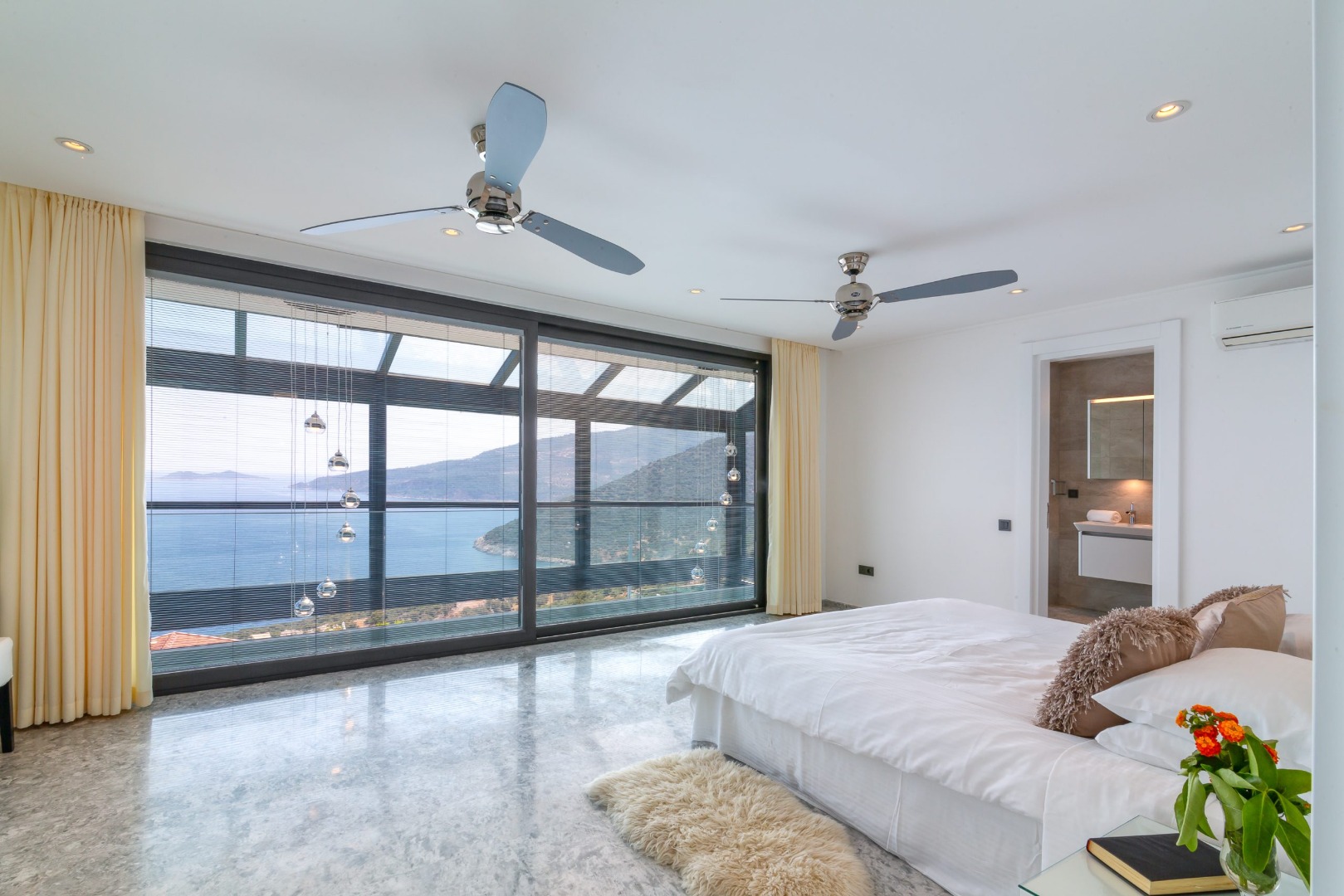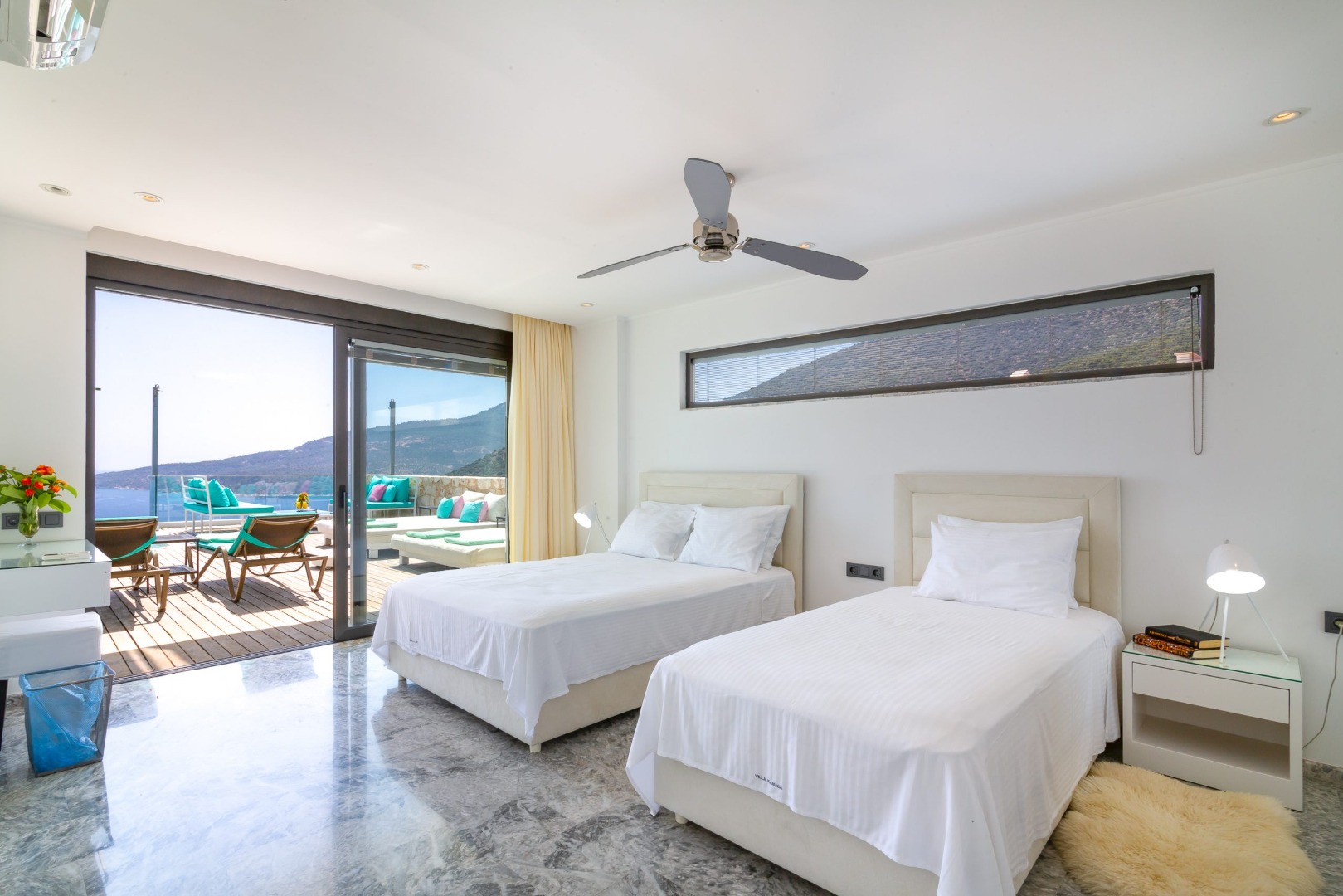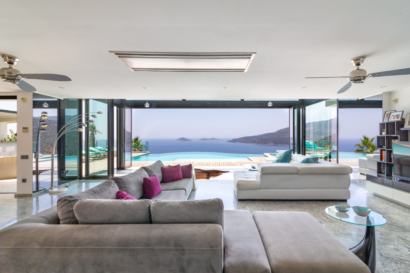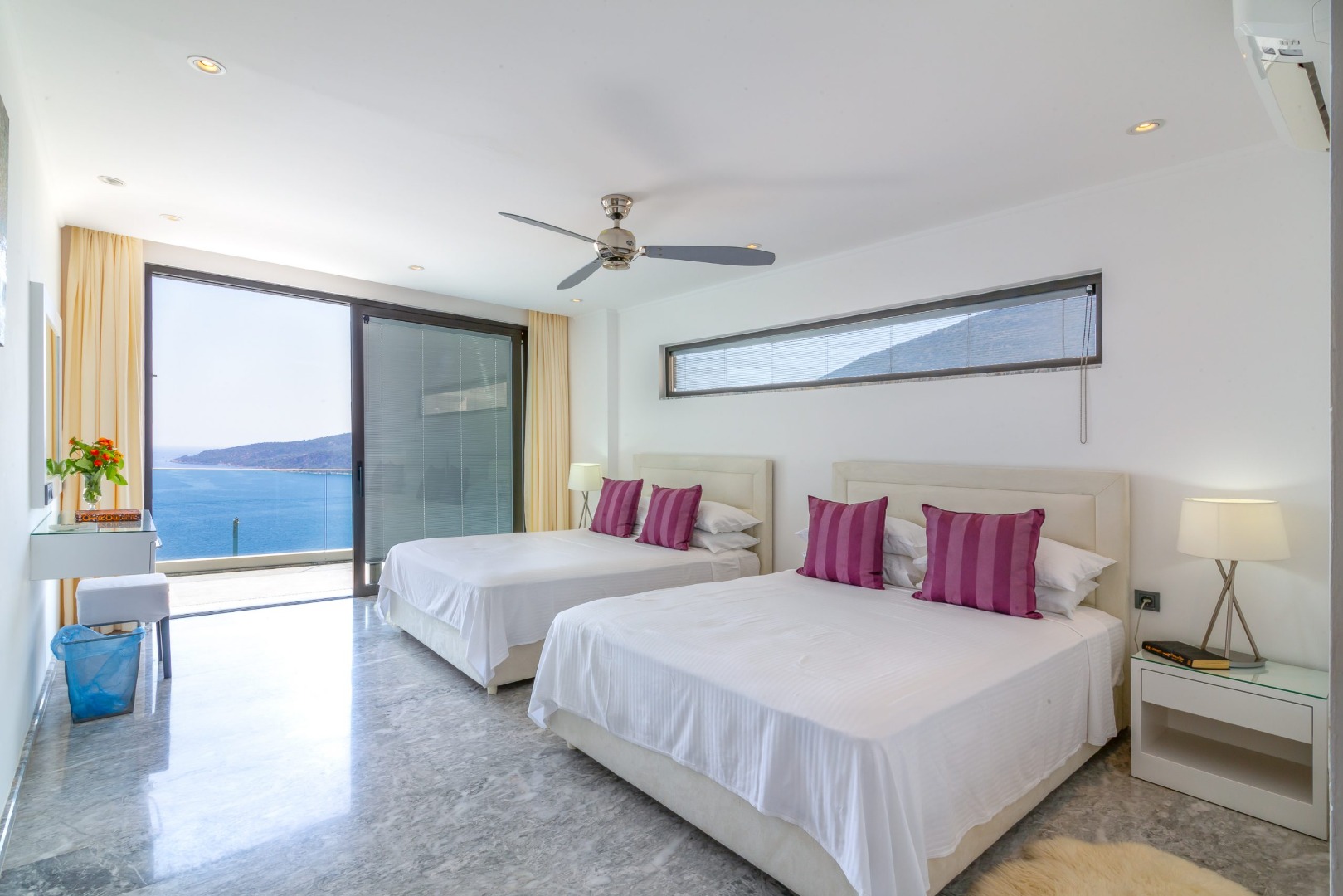 A breathtakingly beautiful contemporary style house positioned on the hillside overlooking Kalamar bay. This fabulous 5 bedroom, 5 bathroom house enjoys breath-taking views across the bay to the islands. The villa is approximately a 20 minute walk from the centre of town and just a 10 minute downhill walk to the sea and the nearest beach club.