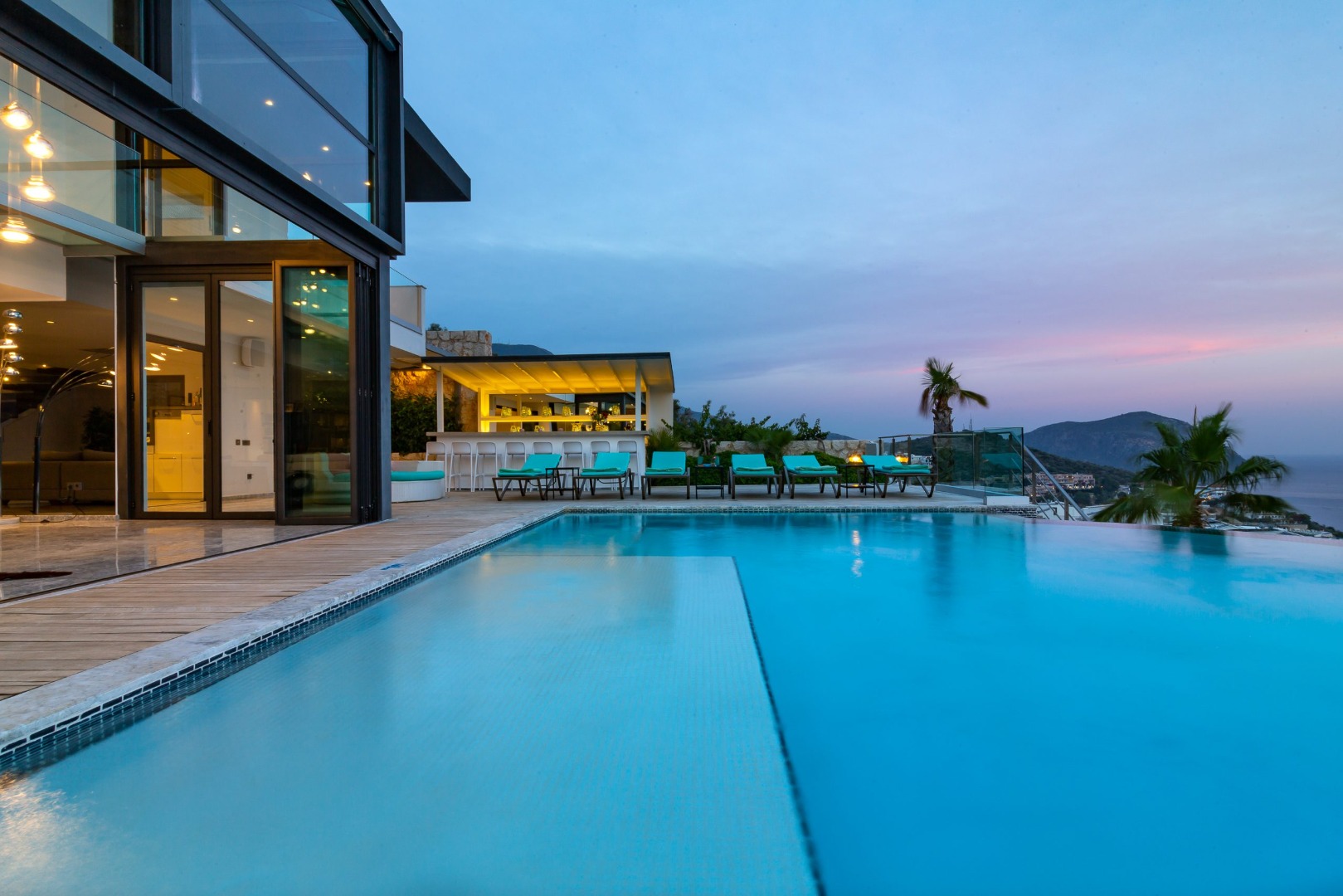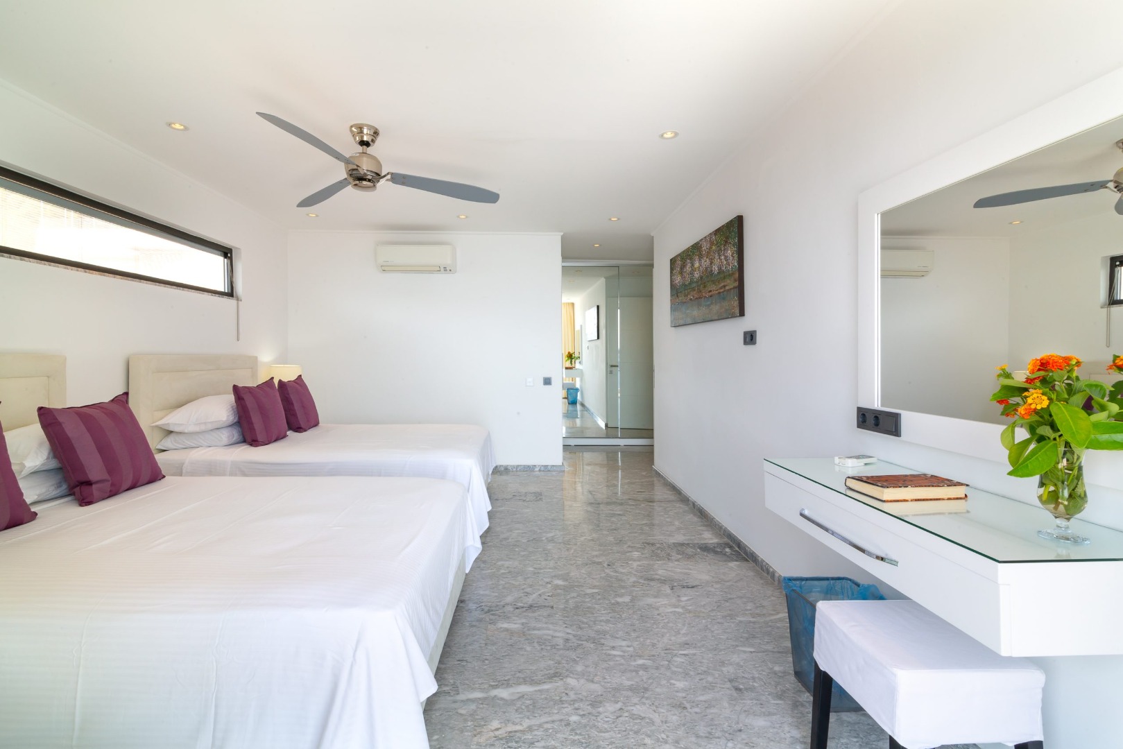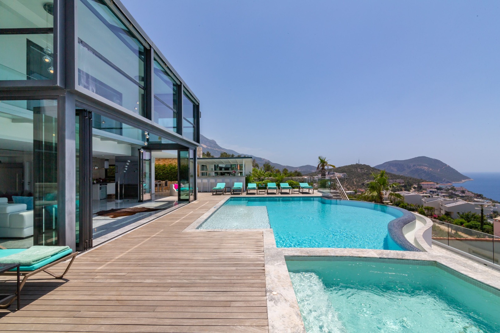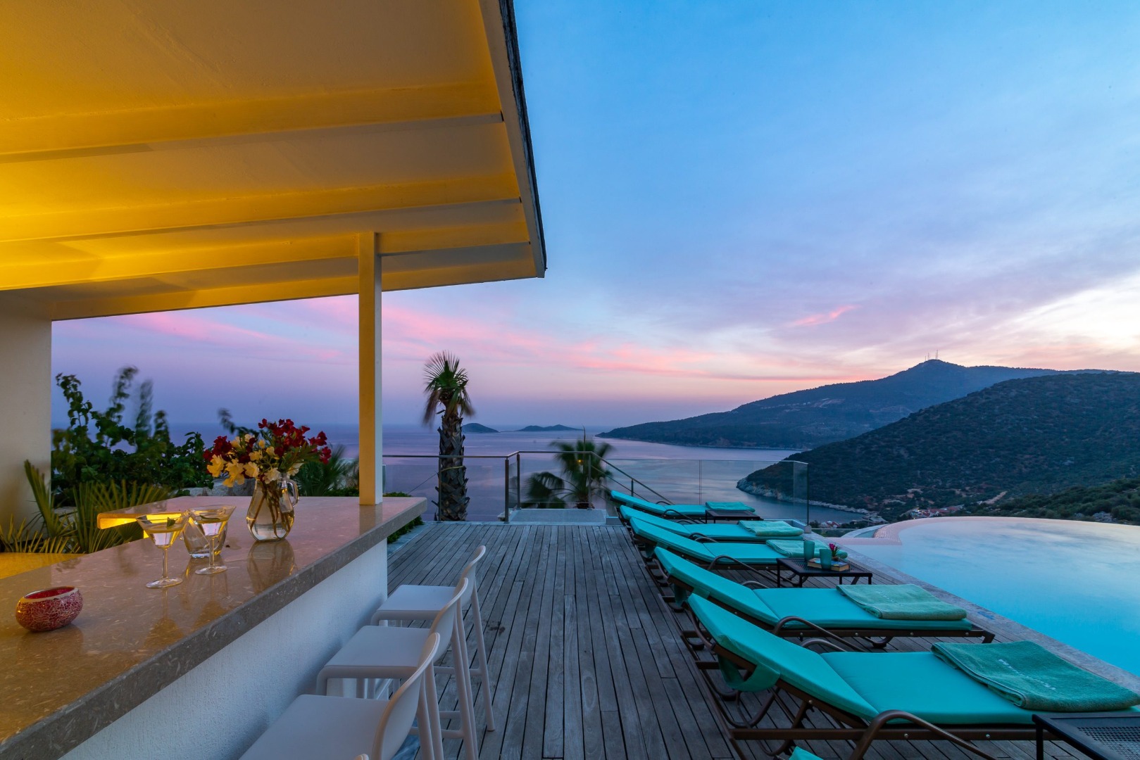 A breathtakingly beautiful contemporary style house positioned on the hillside overlooking Kalamar bay. This fabulous 5 bedroom, 5 bathroom house enjoys breath-taking views across the bay to the islands. The villa is approximately a 20 minute walk from the centre of town and just a 10 minute downhill walk to the sea and the nearest beach club.
