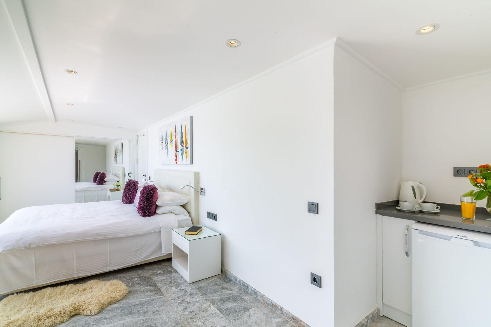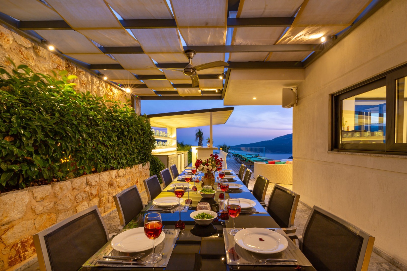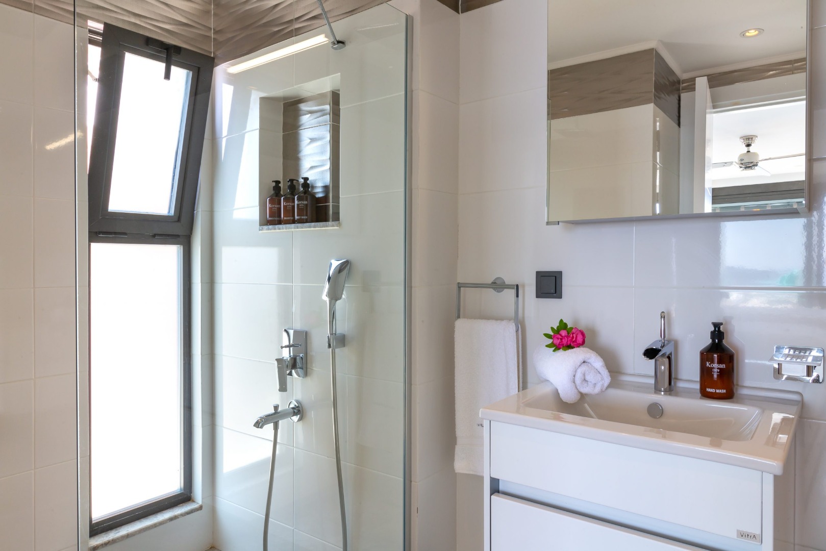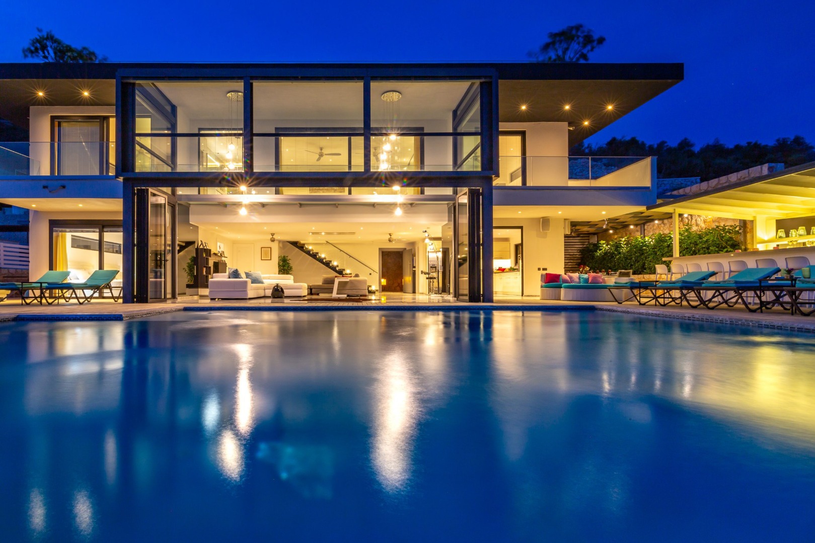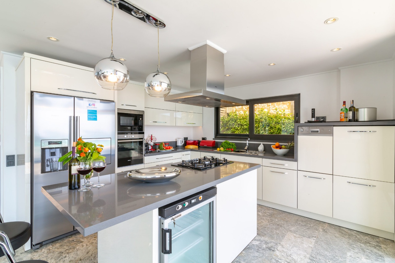 A breathtakingly beautiful contemporary style house positioned on the hillside overlooking Kalamar bay. This fabulous 5 bedroom, 5 bathroom house enjoys breath-taking views across the bay to the islands. The villa is approximately a 20 minute walk from the centre of town and just a 10 minute downhill walk to the sea and the nearest beach club.