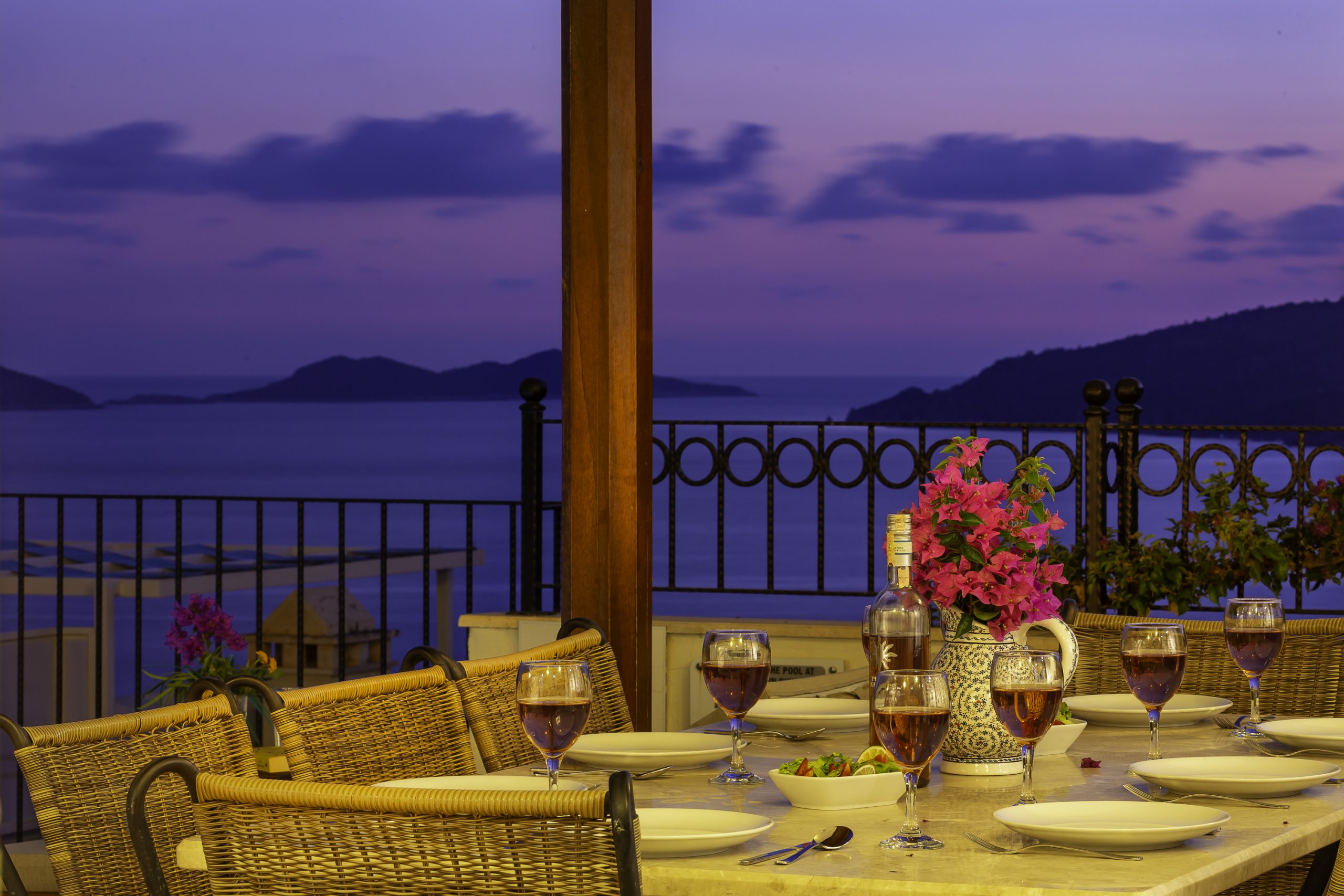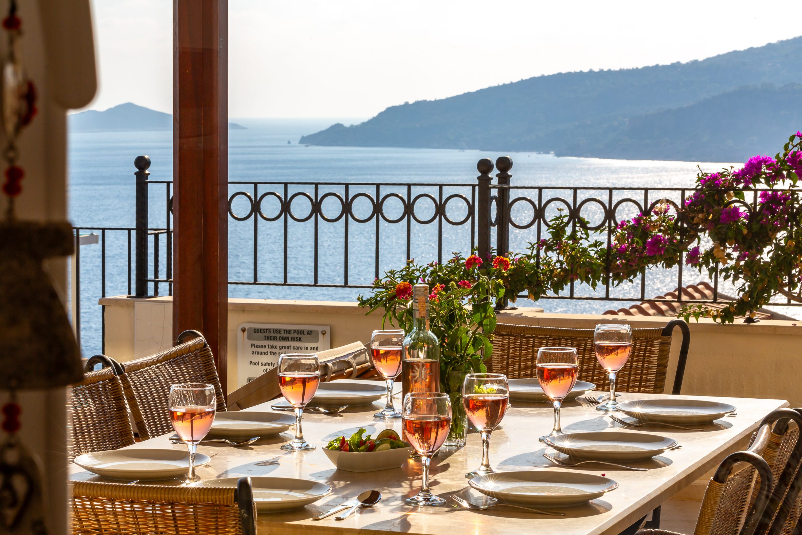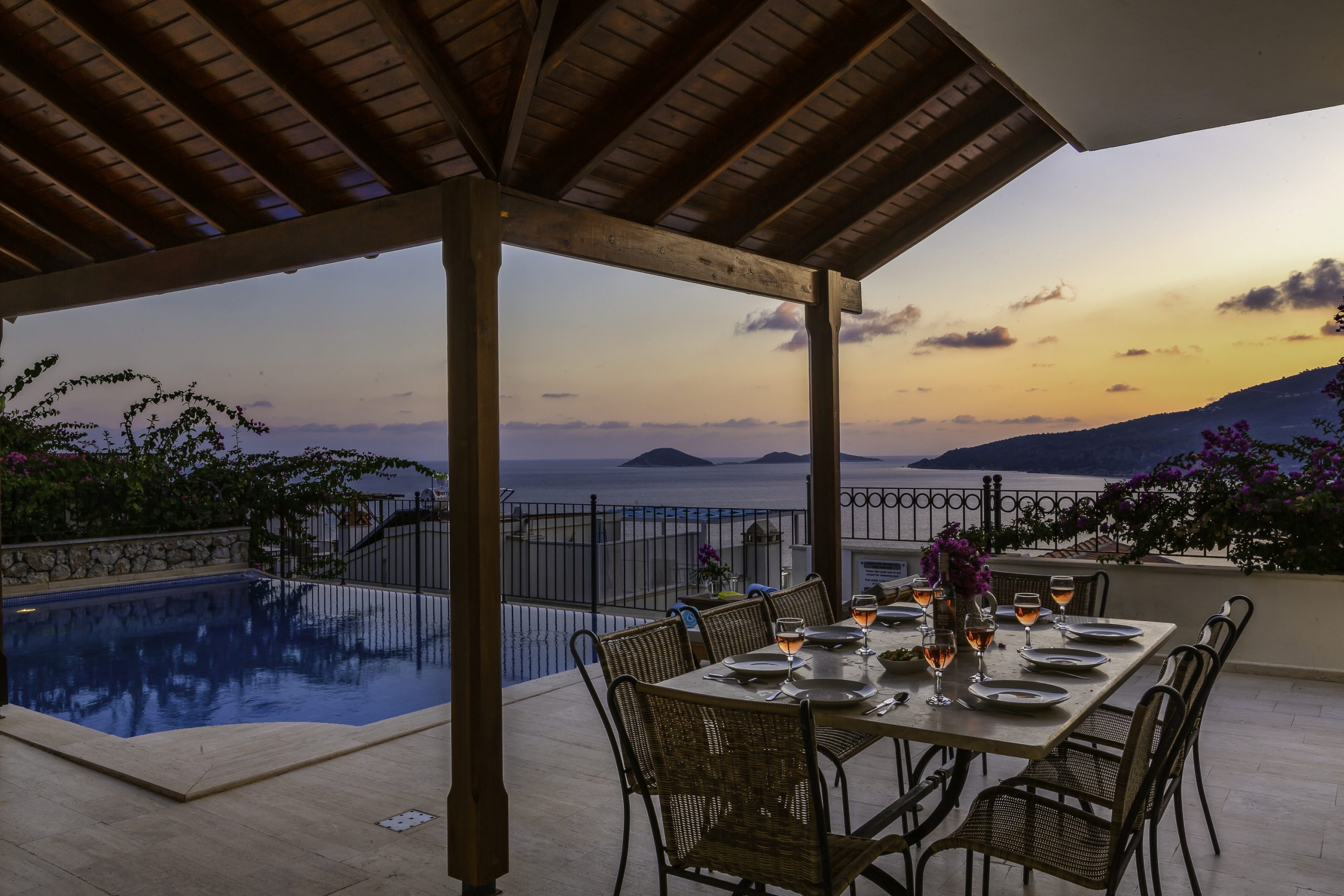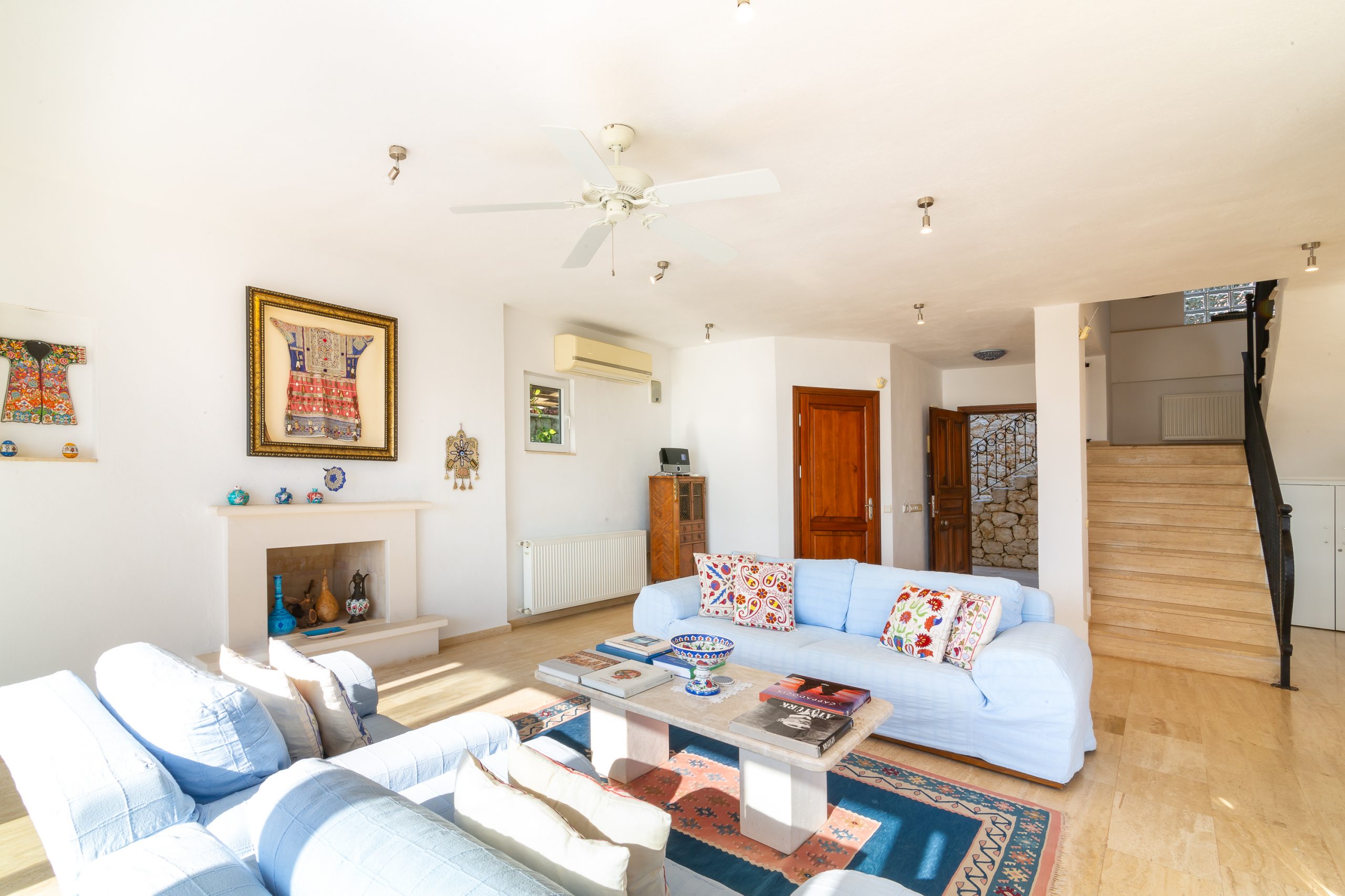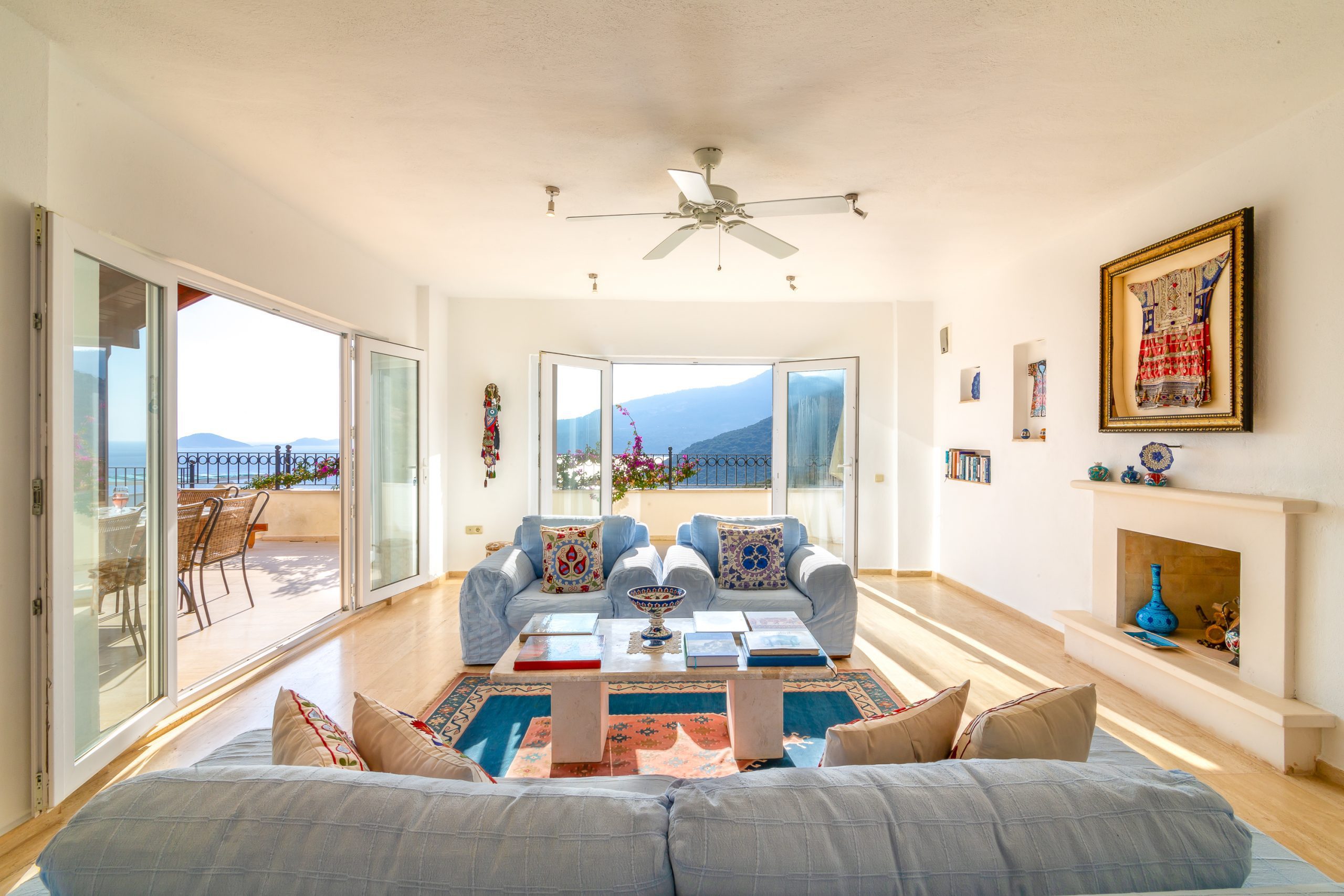 It is a charming 5 bedroom luxury villa overlooking Kalamar Bay. It is situated 1 km (20 minute walk) away from the centre of Kalkan and just a 5 minute walk to the sea.
