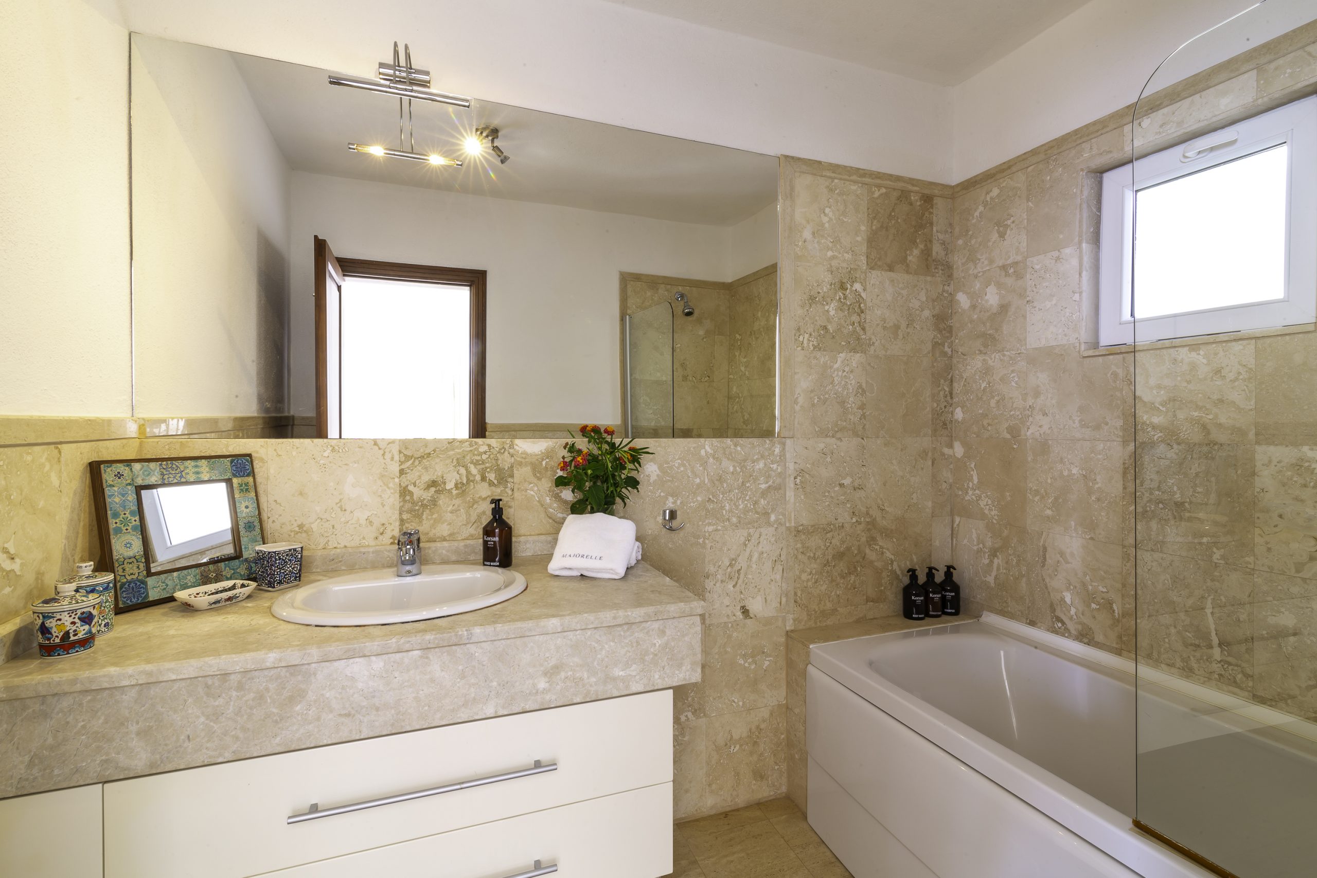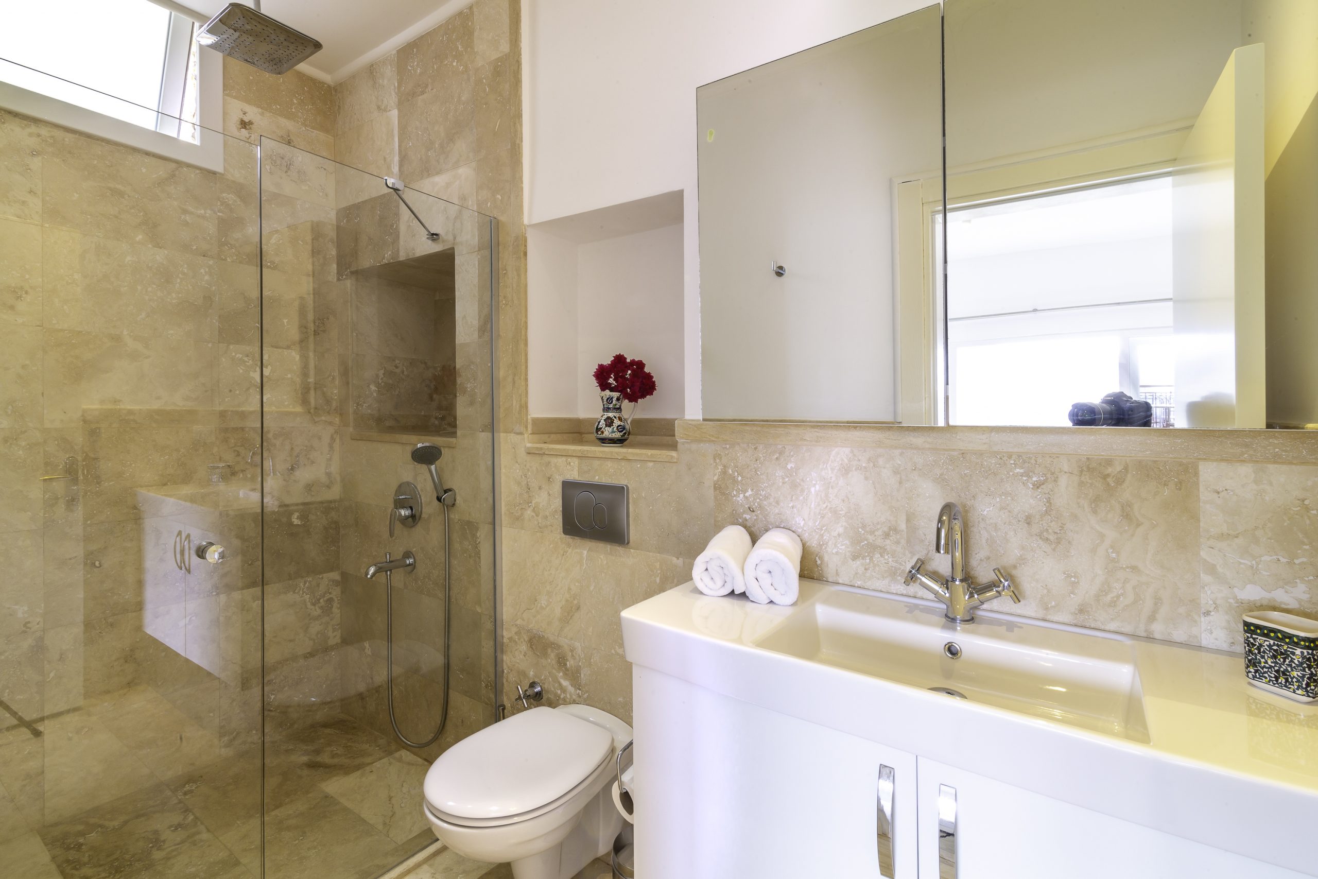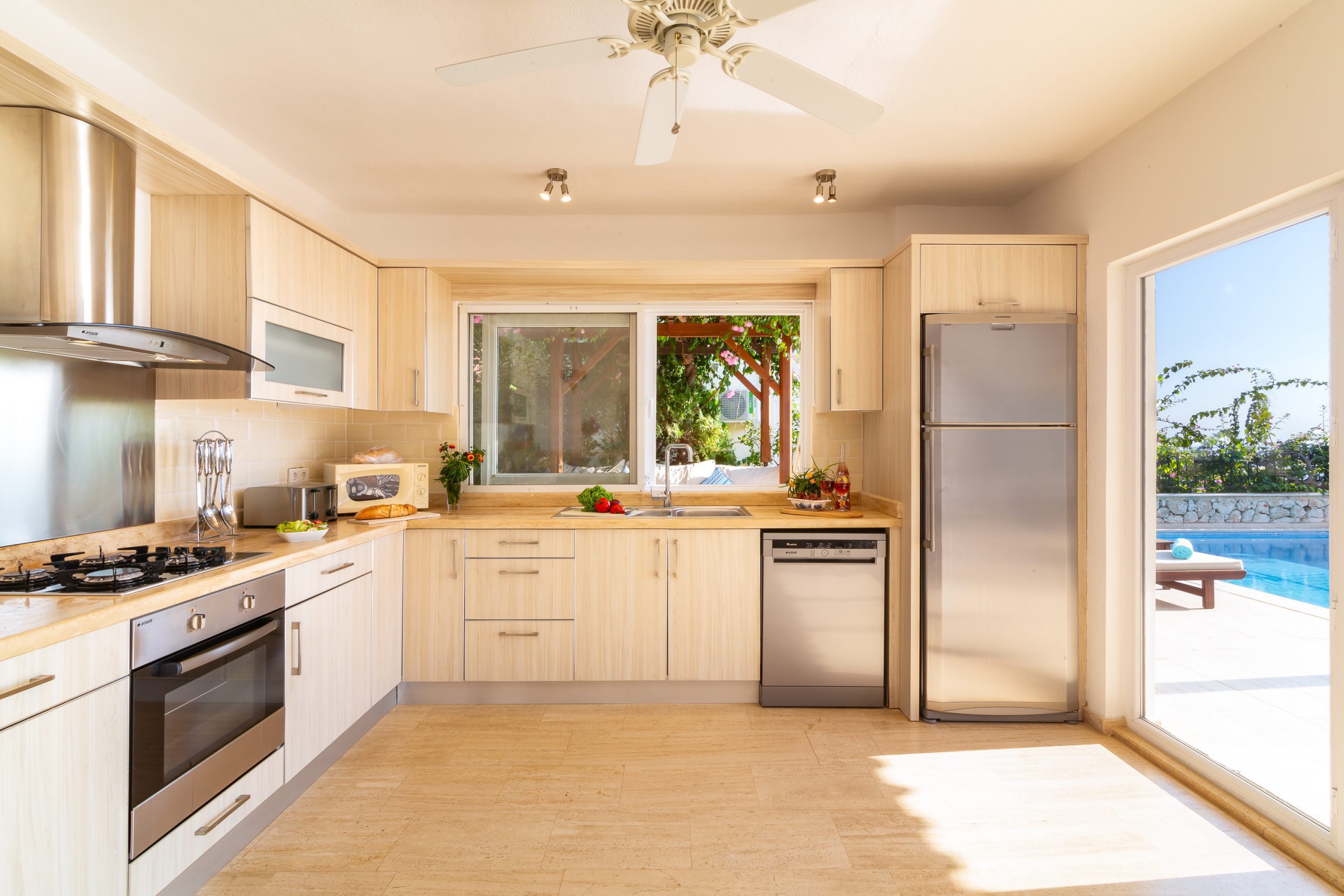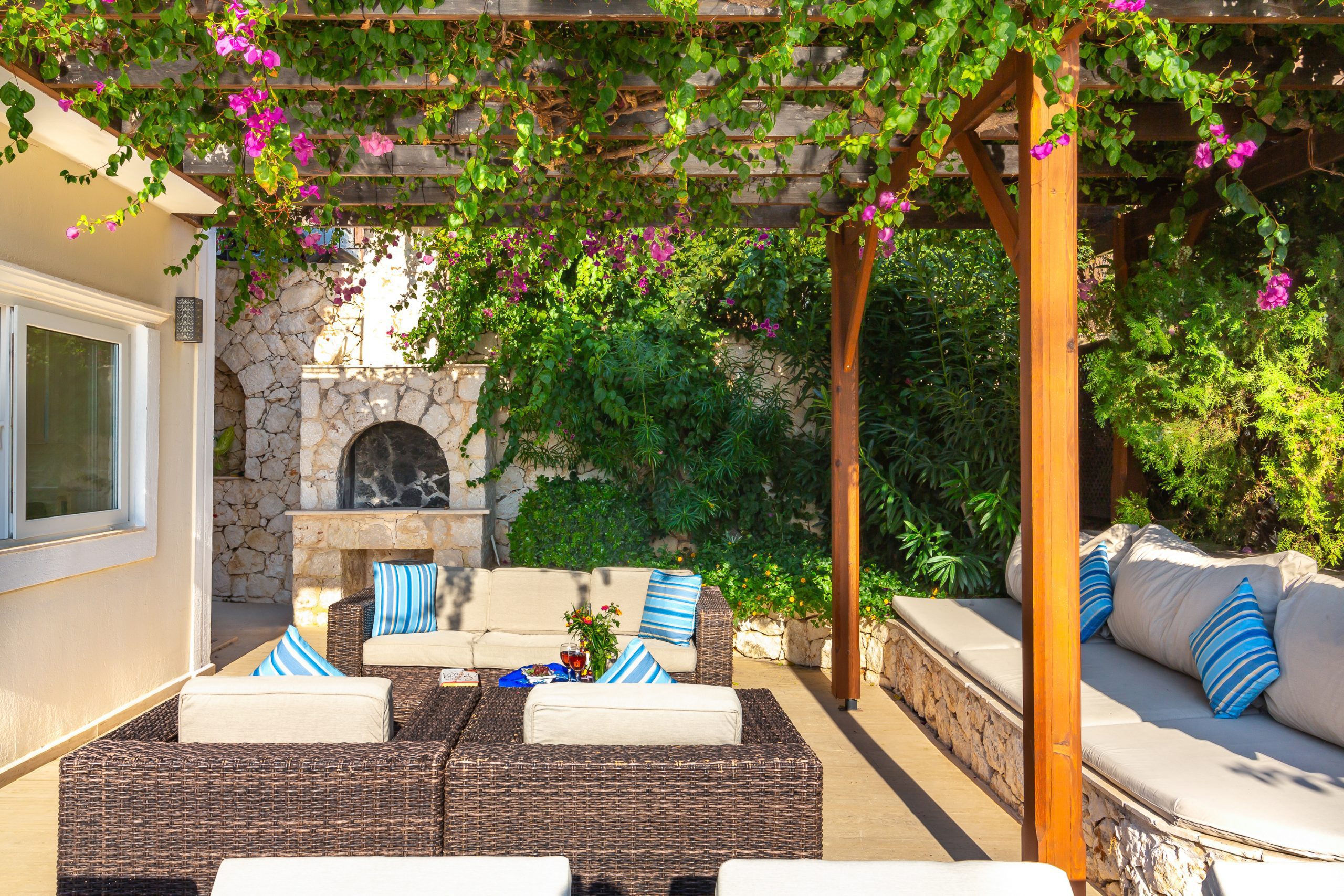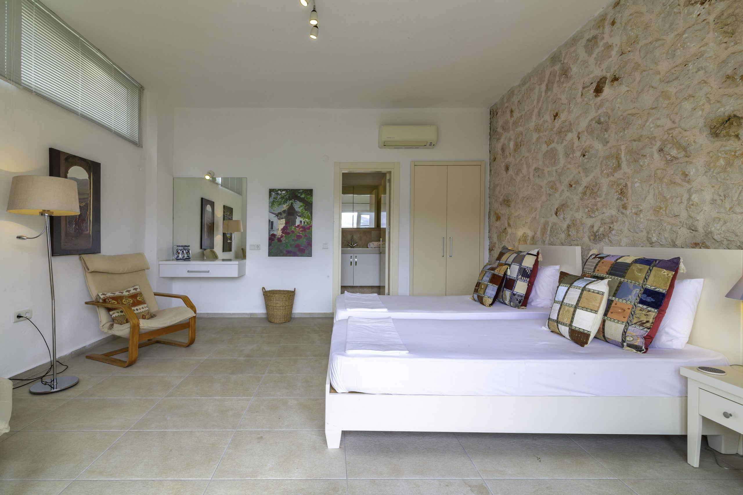 It is a charming 5 bedroom luxury villa overlooking Kalamar Bay. It is situated 1 km (20 minute walk) away from the centre of Kalkan and just a 5 minute walk to the sea.