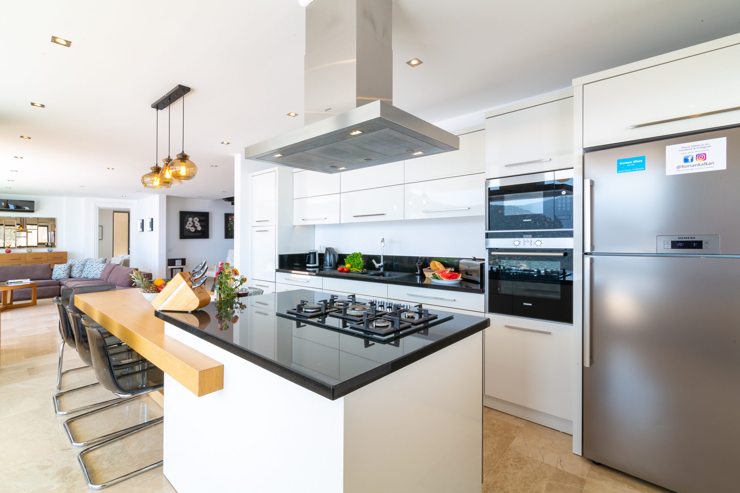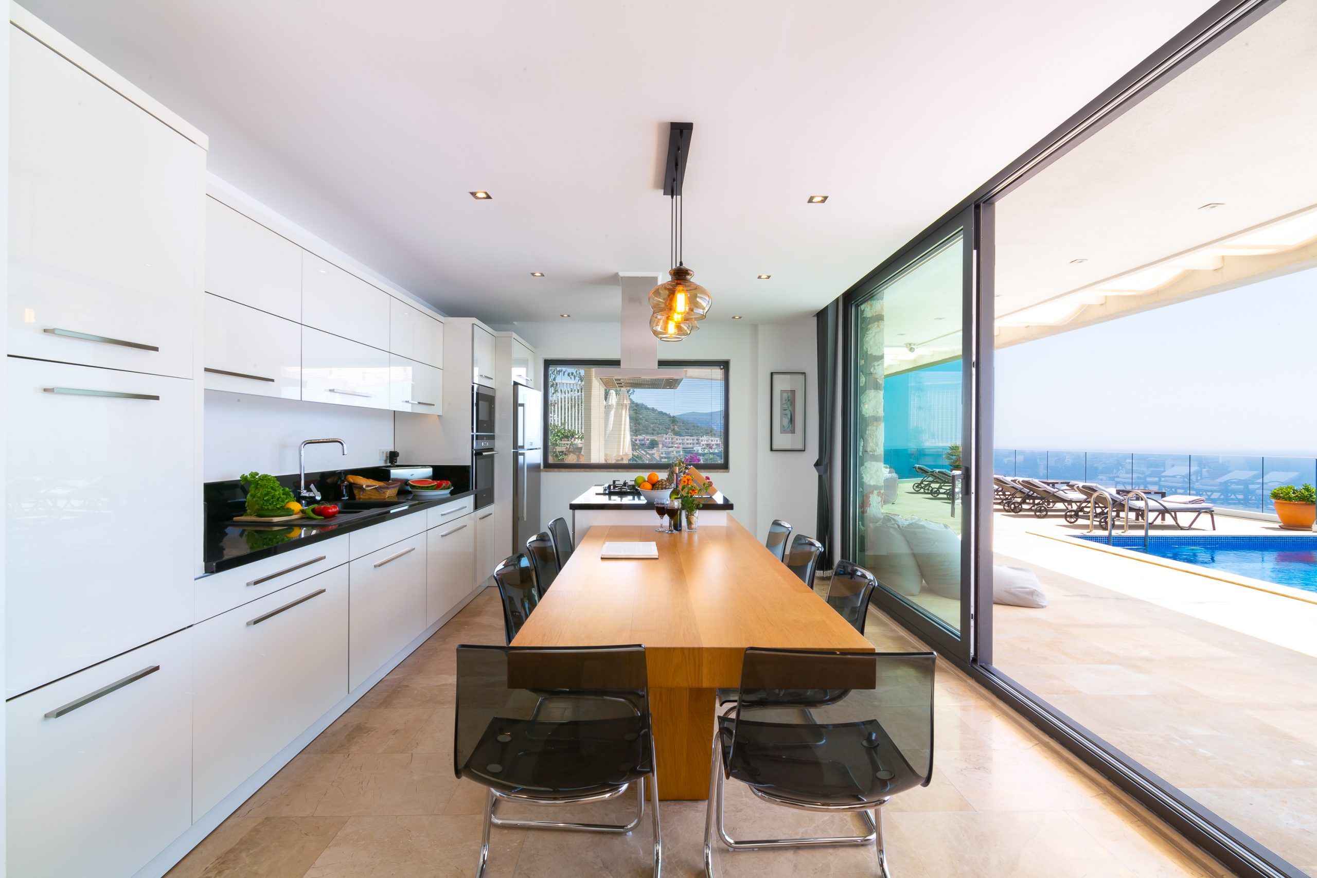 is a stunning 5-bedroom holiday home designed in a modern, contemporary style. Set above the sparkling waters of Kalamar Bay, this villa combines breathtaking sea views, elegant interiors, and outstanding amenities, making it the perfect retreat for families or groups seeking a relaxing escape in Turkey’s Mediterranean coast.