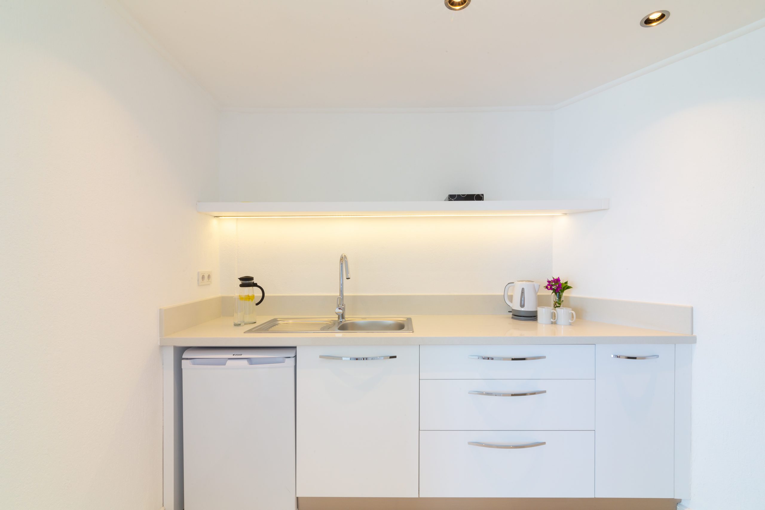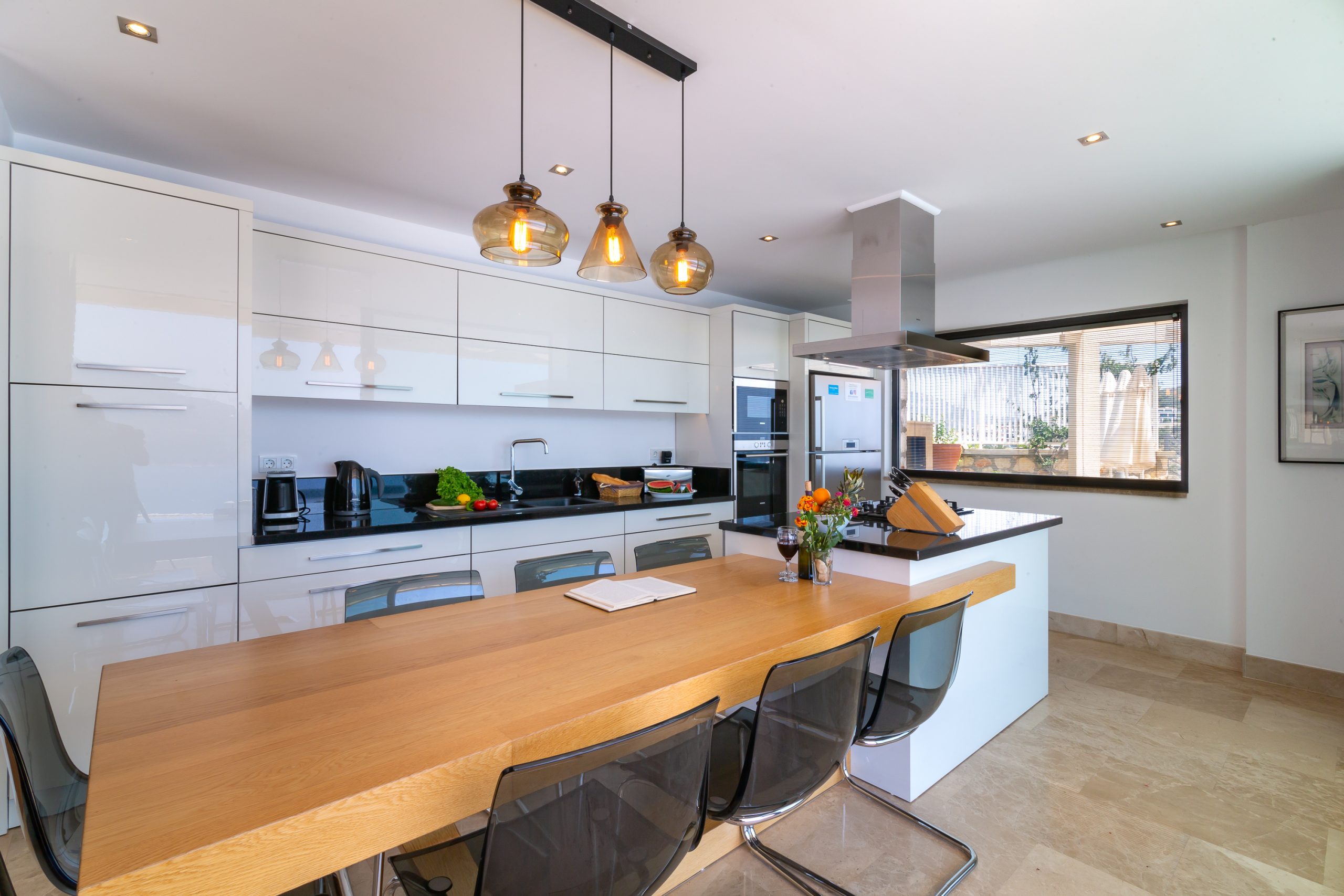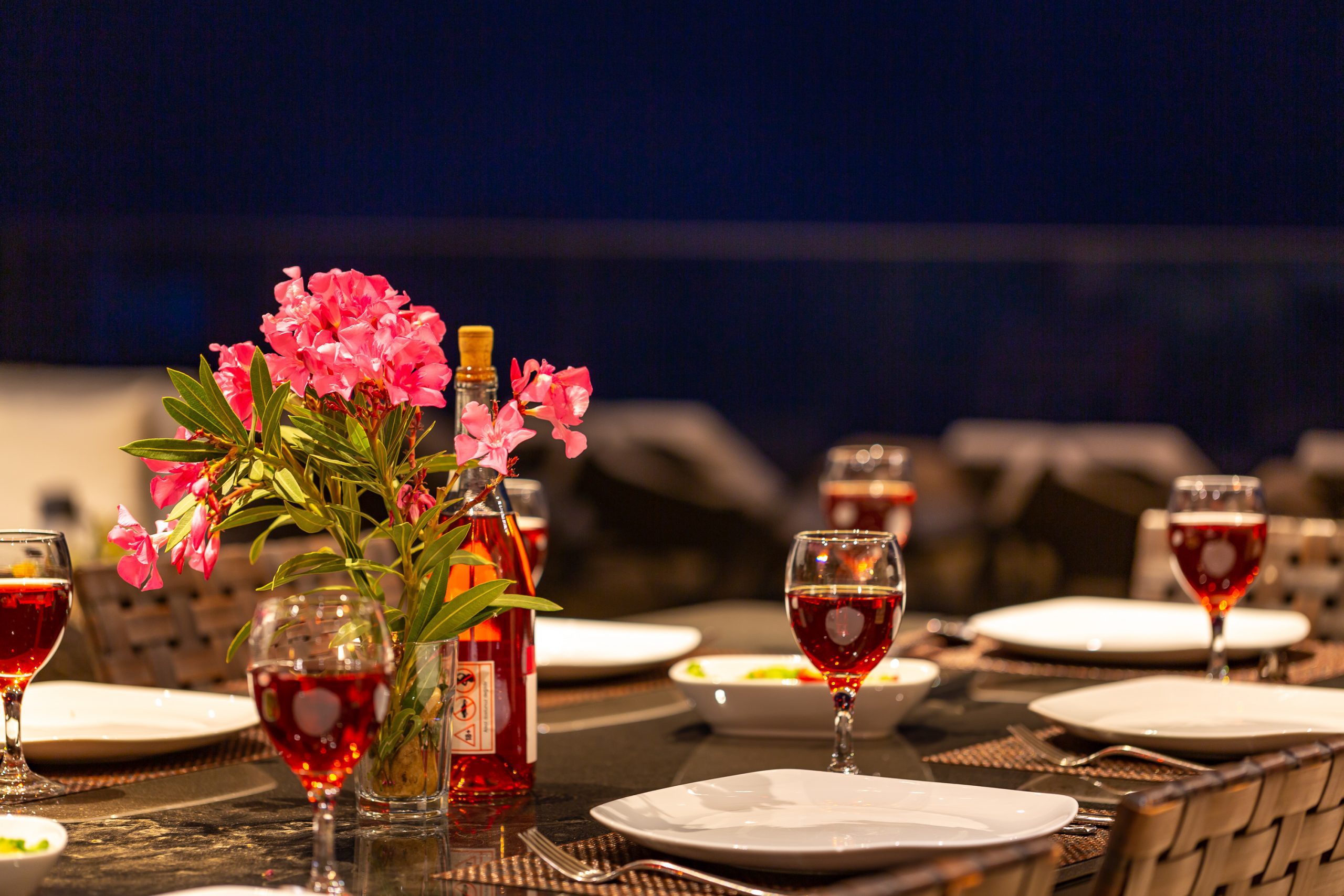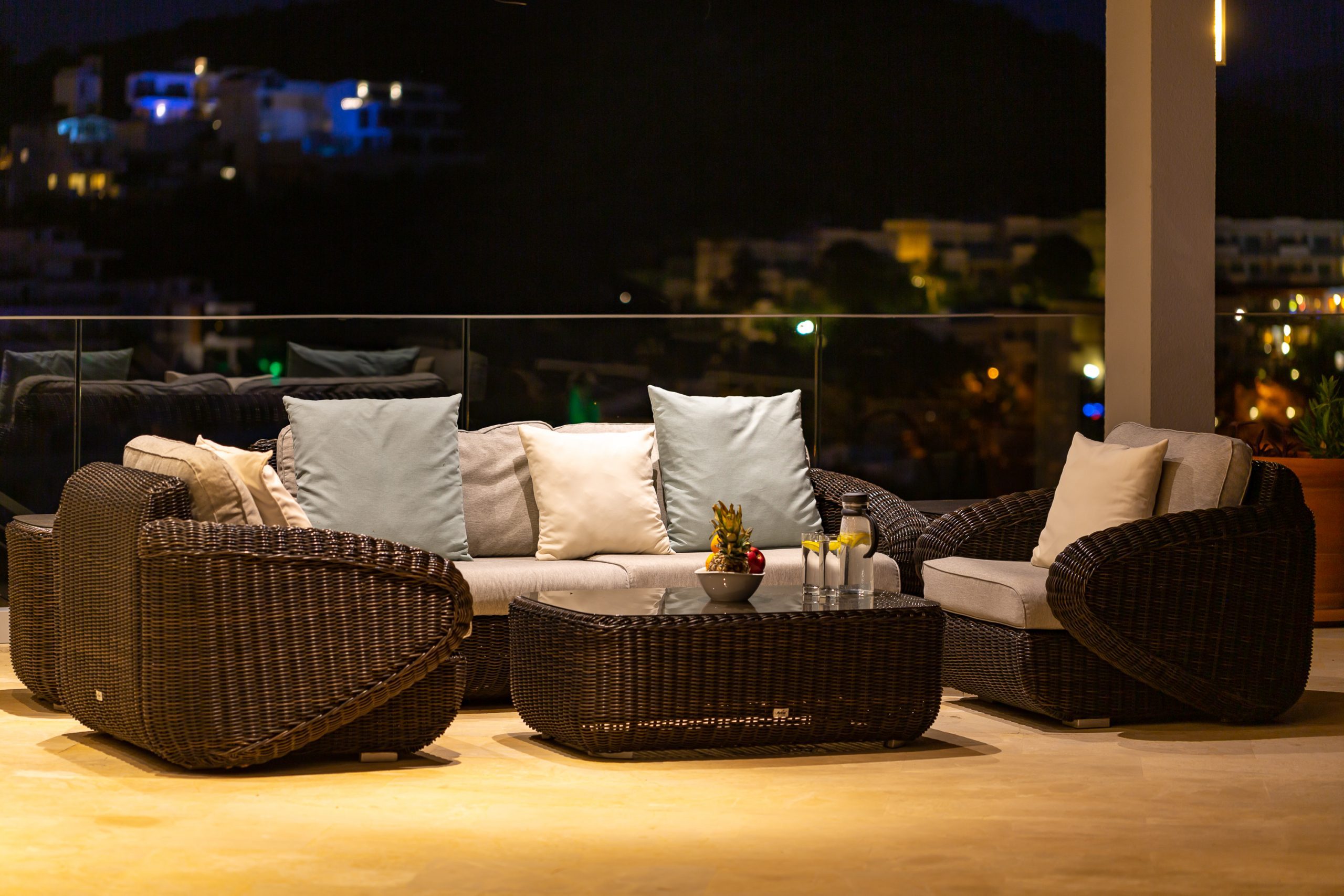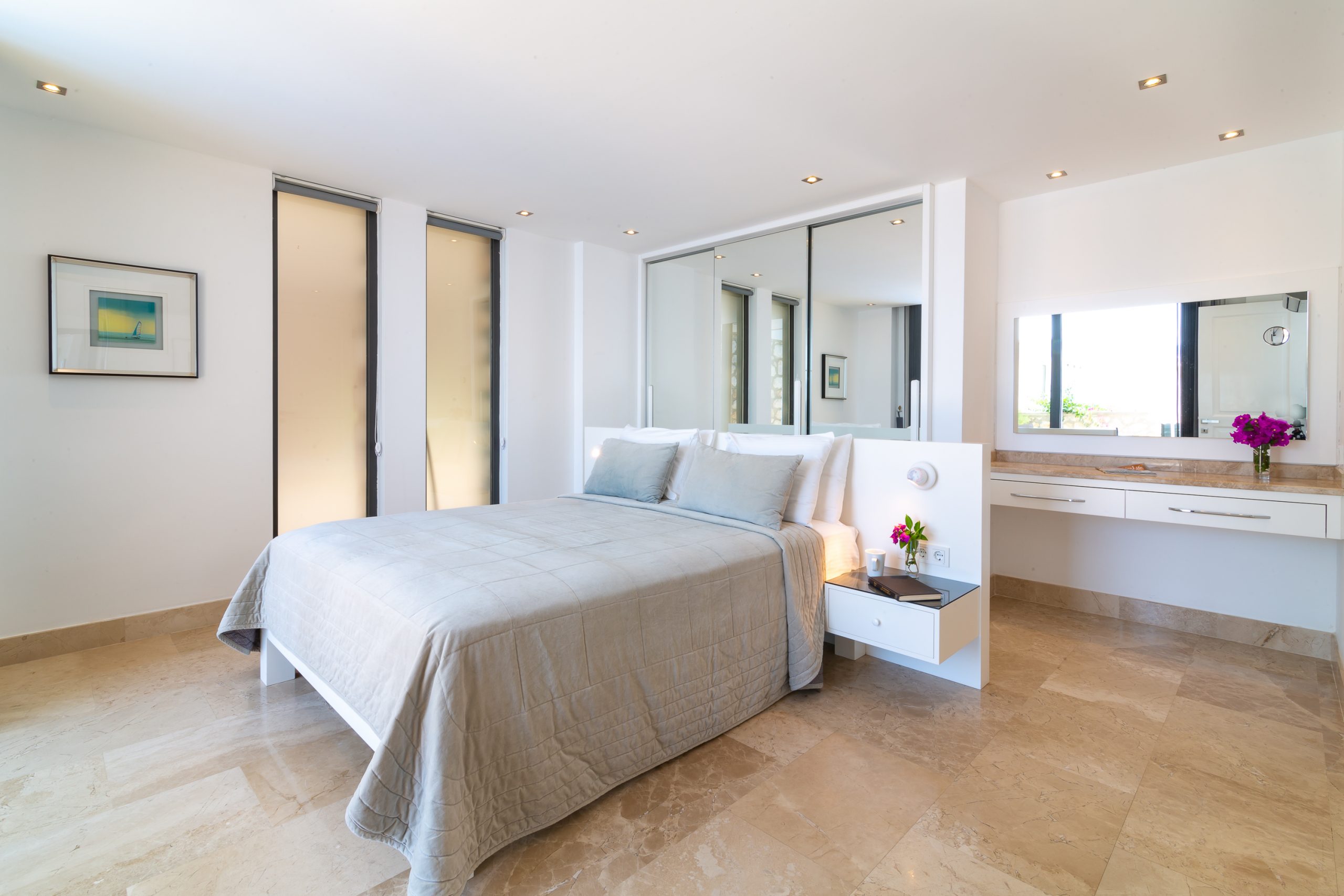 On the top floor, an additional double en-suite bedroom opens onto a private balcony and connects to a roof terrace with comfortable seating. From here, guests can relax in the evening, take in sweeping sea views, and enjoy stargazing under the Mediterranean night sky.