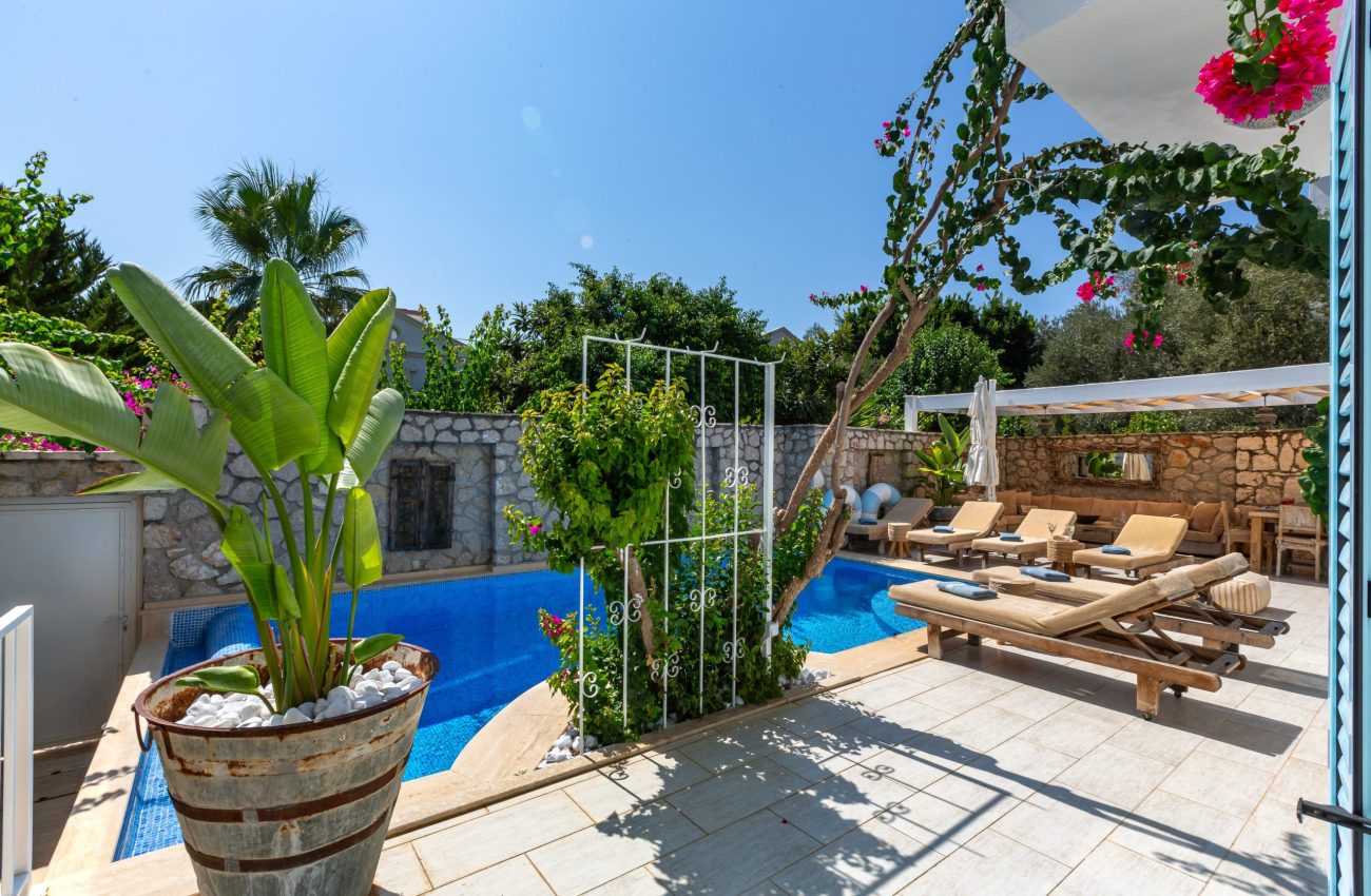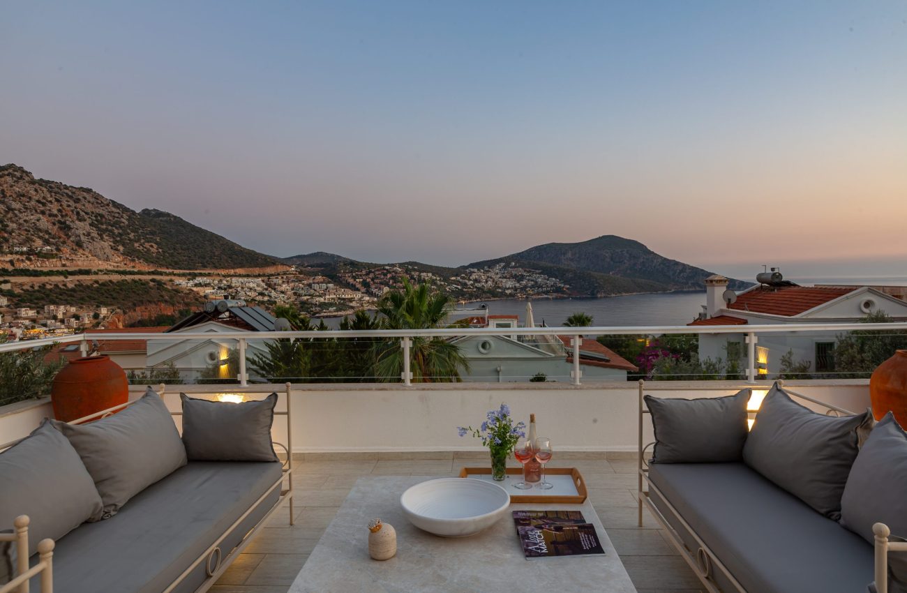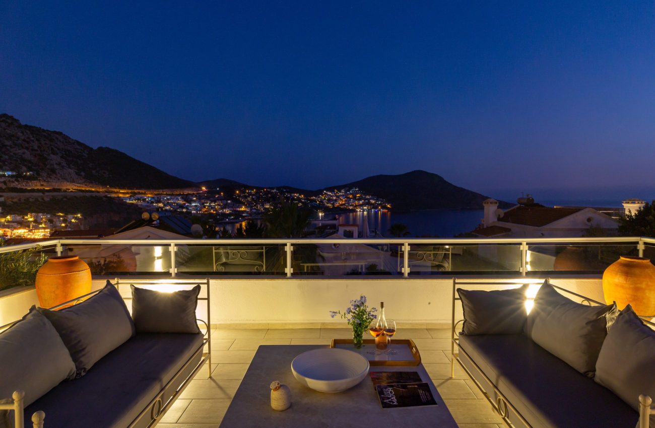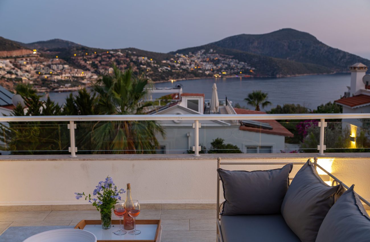 This exclusive well established private residential estate was developed in the mid 1980s and is one of Kalkans best loved neighbourhoods with its beautifully mature and well kept gardens. The property is perfectly located just 3 minutes walk from the town centre with its shops, restaurants and bars and just a short walk from the town beach and harbour where you can pick up water taxis to the numerous beach clubs. It has its own private pool and lovely views of the bay and mountains from the roof terrace.