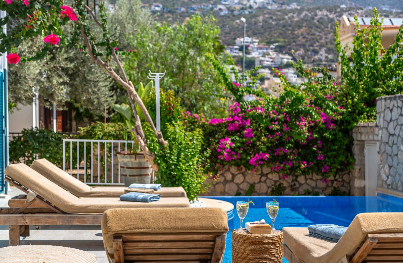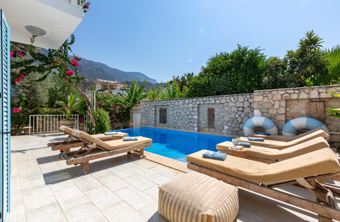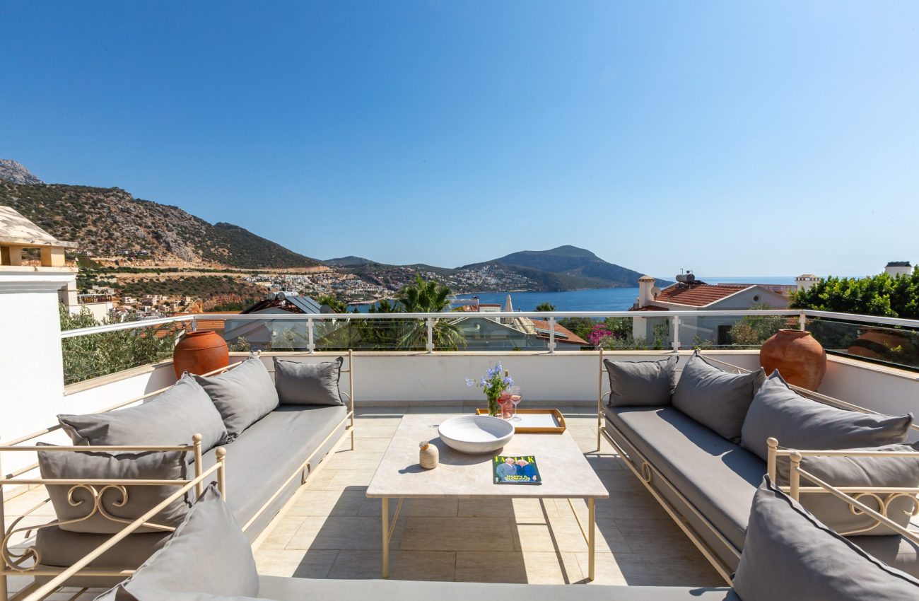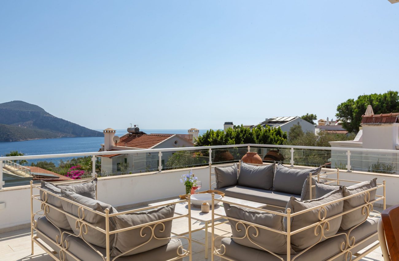 This exclusive well established private residential estate was developed in the mid 1980s and is one of Kalkans best loved neighbourhoods with its beautifully mature and well kept gardens. The property is perfectly located just 3 minutes walk from the town centre with its shops, restaurants and bars and just a short walk from the town beach and harbour where you can pick up water taxis to the numerous beach clubs. It has its own private pool and lovely views of the bay and mountains from the roof terrace.