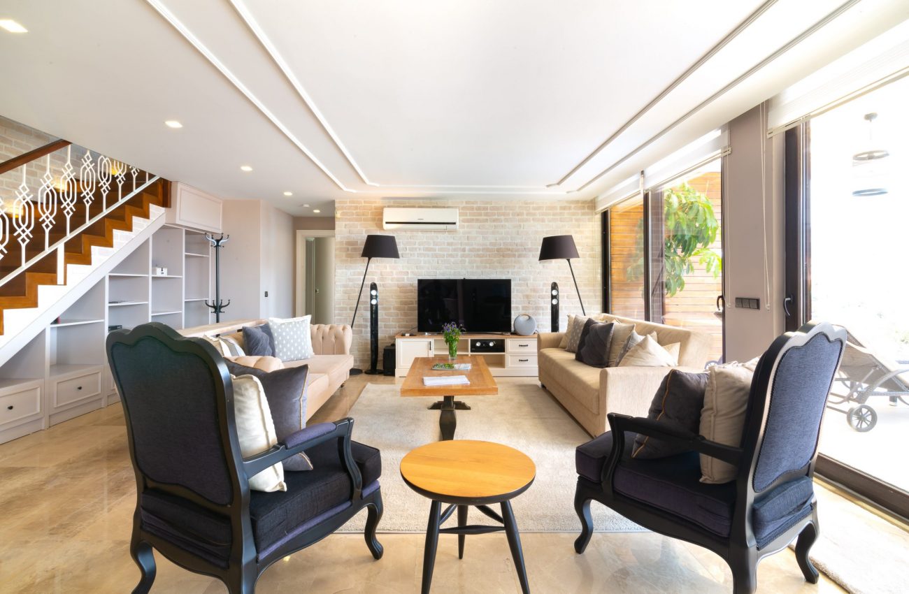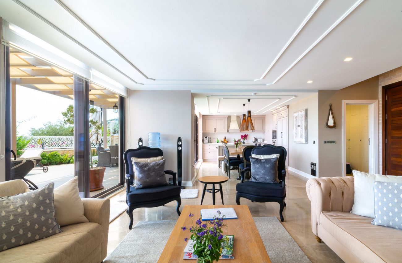 This modern spacious property is stylishly furnished and enjoys wonderful panoramic sea views.
