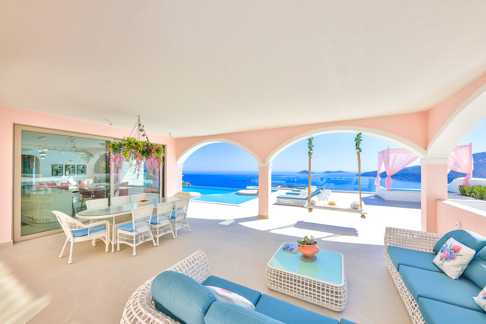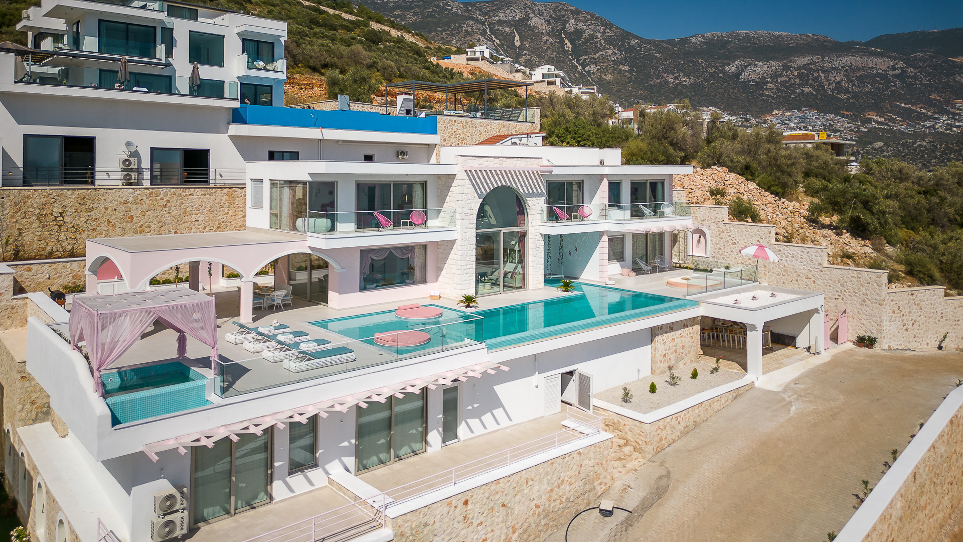 Villa Rosy, located in the heart of Kalkan with a stunning sea view, offers a perfect holiday experience for up to 8 guests. This modern and stylish villa combines comfort and luxury with its private pool, spacious terraces, and jacuzzi. Thanks to its proximity to popular destinations such as Kalkan, Kaş, and Fethiye, Villa Rosy provides both a peaceful retreat and the opportunity to explore the beauties of the region.