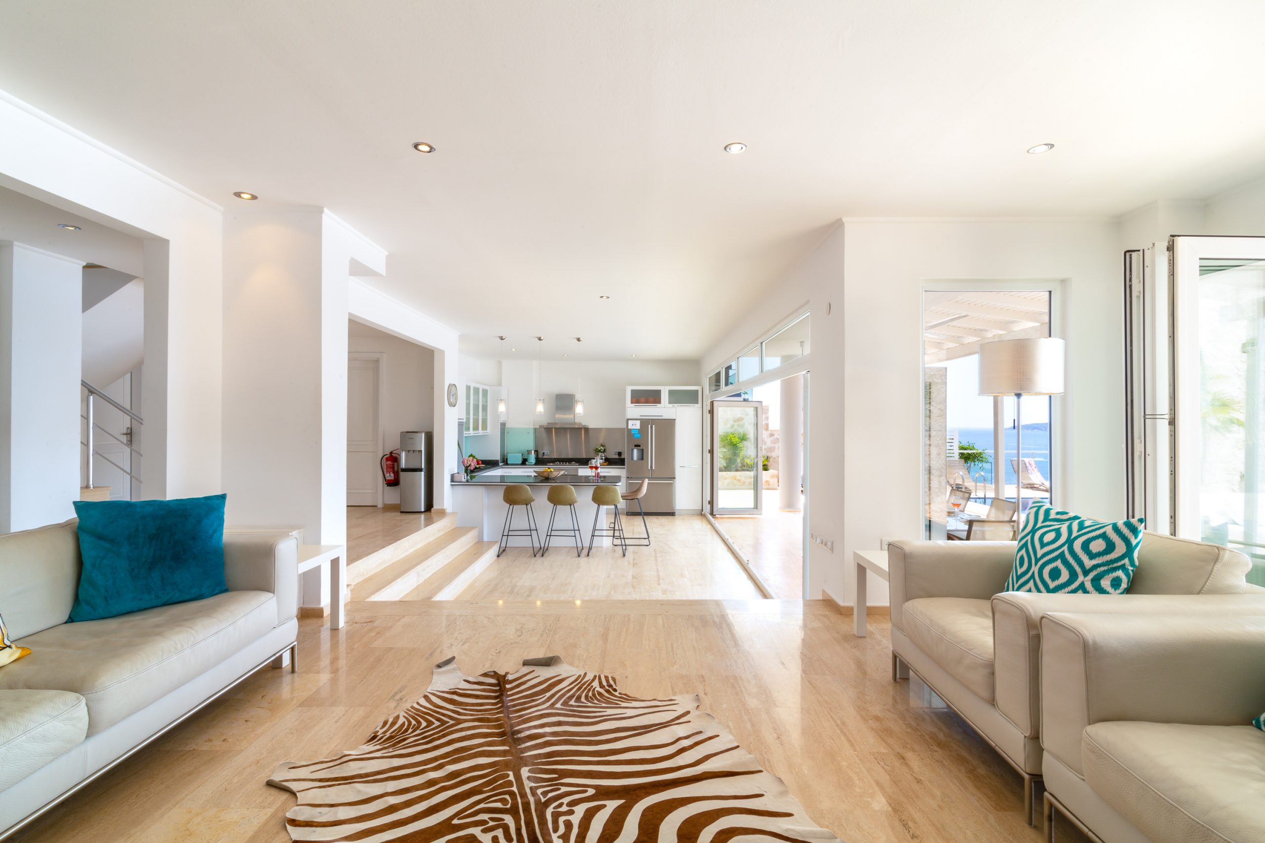 This exquisite contemporary style house fully exploits its stunning position and views with floor to ceiling windows and doors which open back fully to let the outside in and create a magnificent atmosphere of light, air and space.
