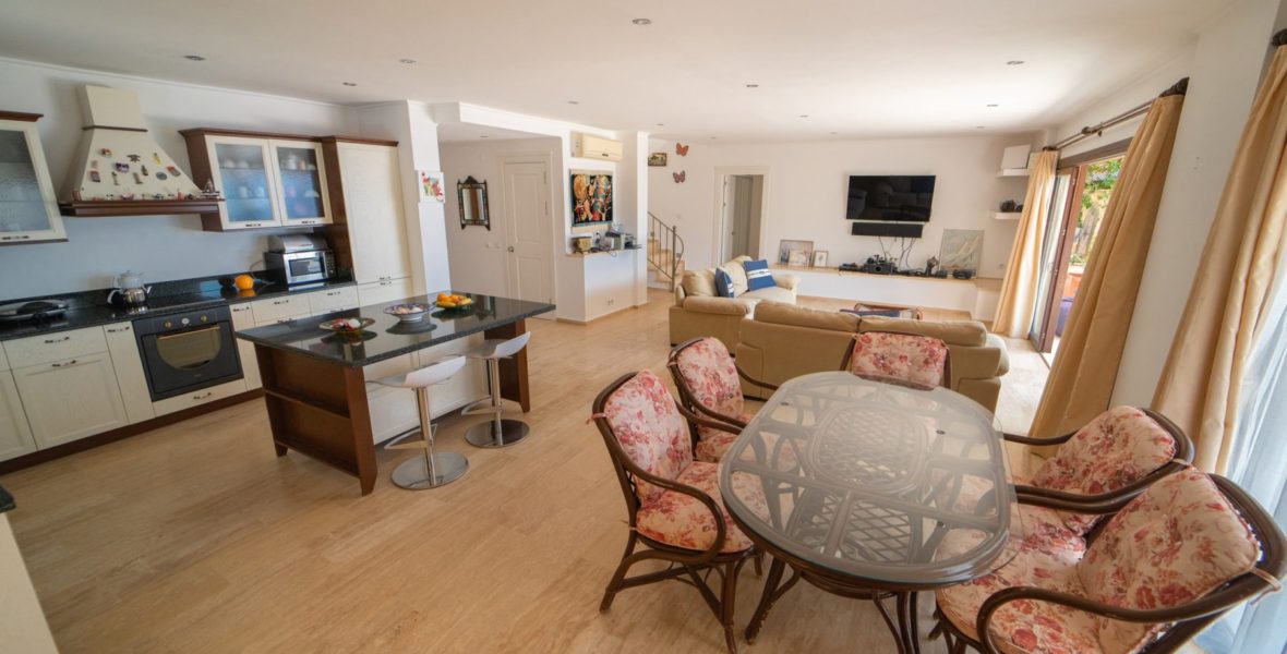 The villa has been carefully designed to maximize the stunning sea views. Open-plan living areas create a bright and airy atmosphere, while large windows and doors allow natural light to flood the interior. The decor combines modern comfort with subtle Mediterranean touches, giving the villa a warm yet stylish character. From every corner of the property, guests can enjoy uninterrupted turquoise sea views.