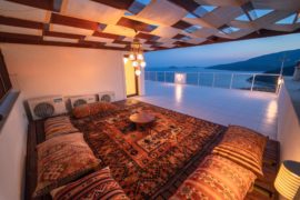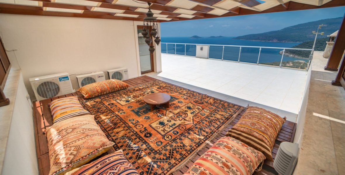 One of the greatest advantages of Villa Summer Breeze is its location. The villa is just a 15–20 minute walk from Kalkan’s charming town center, offering boutique shops, rooftop restaurants, and lively bars. At the same time, it is only a short five-minute downhill walk to the sea and the nearest beach club, where guests can enjoy crystal-clear waters, sunbathing platforms, and a variety of water sports. This balance of peace and accessibility makes Villa Summer Breeze a highly sought-after rental in Kalkan.