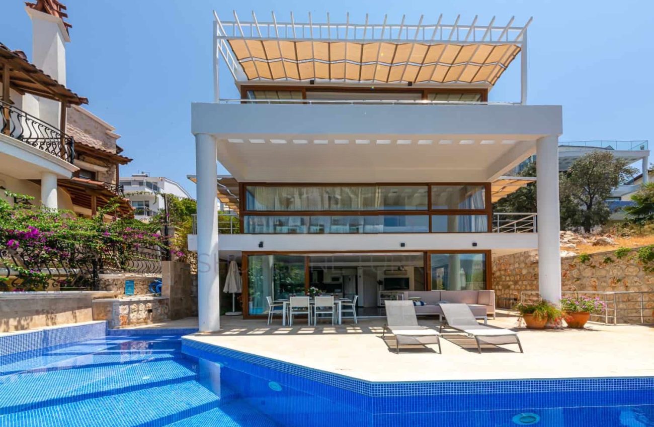 Experience the ultimate in luxury villa rental in Kalkan at Villa White Dream, perfectly positioned just 20 metres from the pristine waters of Kalamar Bay. This beautiful waterfront villa has uninterrupted sea views and a large open-plan layout. It also offers direct access to exclusive beach clubs. This makes it perfect for families or groups of up to 8 guests.